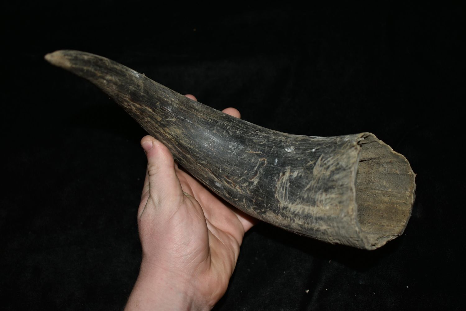 10" Buffalo Horn, Musselshell, MT, Creel Poore was born and raised in Musselshell, Montana where he found his first arrowhead at a very early age. This led Creel on a lifetime search for Montana’s prehistoric past. Creel owned a ranch in Musselshell and collected from sites and in and around the Musselshell River and tributaries. Every piece in Creel’s collection is personally found. He did not purchase pieces, nor did he accept pieces as gifts. He took pride in the fact he found every piece. He also made the cedar frames from cedar trees that were cut on his ranch. Many of the pieces were collected from the buffalo jumps which were plentiful nearby