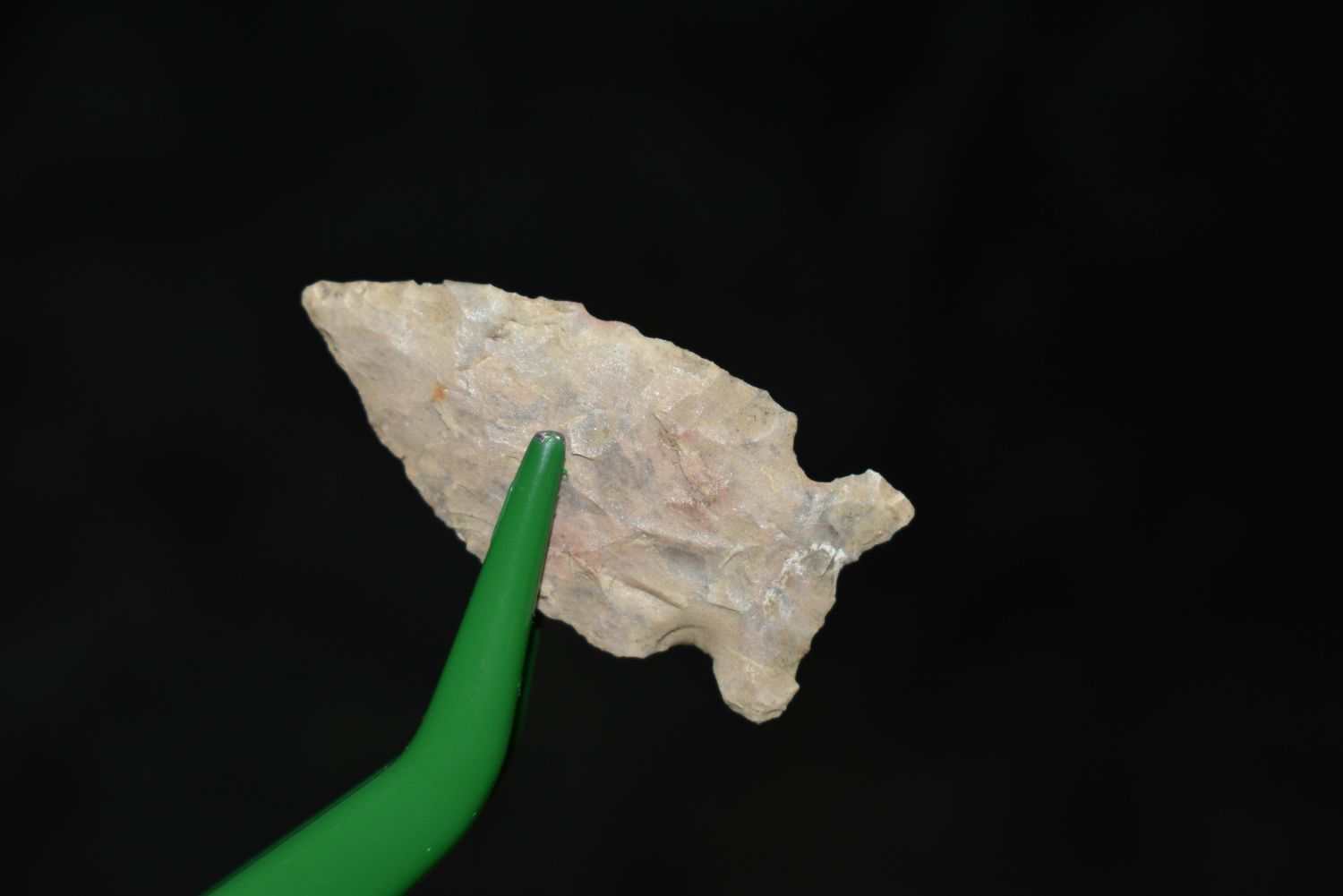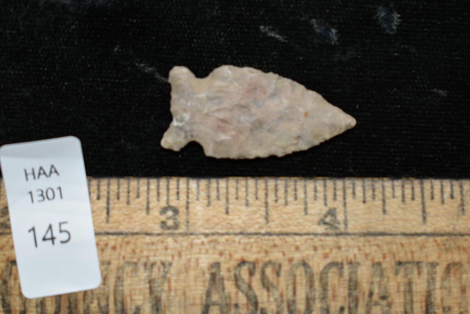 1 1/4" Avonlea, Musselshell, MT, Creel Poore was born and raised in Musselshell, Montana where he found his first arrowhead at a very early age. This led Creel on a lifetime search for Montana’s prehistoric past. Creel owned a ranch in Musselshell and collected from sites and in and around the Musselshell River and tributaries. Every piece in Creel’s collection is personally found. He did not purchase pieces, nor did he accept pieces as gifts. He took pride in the fact he found every piece. He also made the cedar frames from cedar trees that were cut on his ranch. Many of the pieces were collected from the buffalo jumps which were plentiful nearby