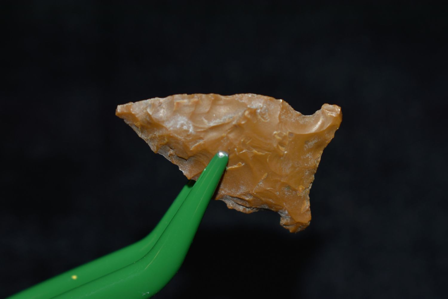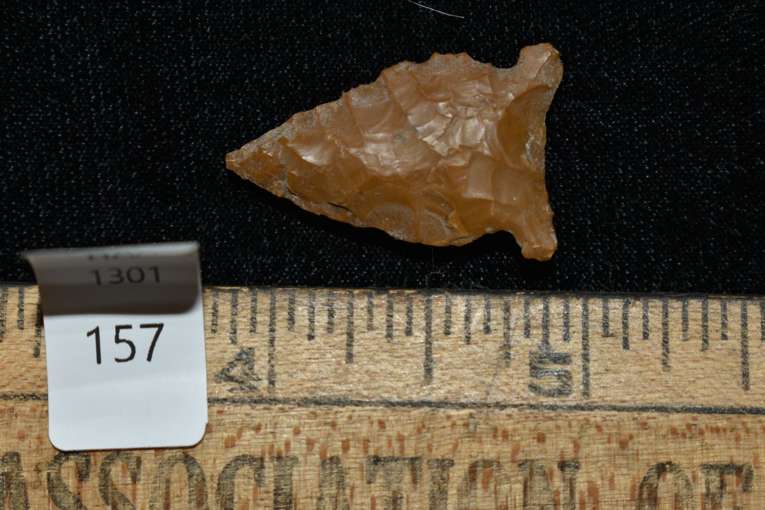 1 1/8" Avonlea, Musselshell, MT, Creel Poore was born and raised in Musselshell, Montana where he found his first arrowhead at a very early age. This led Creel on a lifetime search for Montana’s prehistoric past. Creel owned a ranch in Musselshell and collected from sites and in and around the Musselshell River and tributaries. Every piece in Creel’s collection is personally found. He did not purchase pieces, nor did he accept pieces as gifts. He took pride in the fact he found every piece. He also made the cedar frames from cedar trees that were cut on his ranch. Many of the pieces were collected from the buffalo jumps which were plentiful nearby