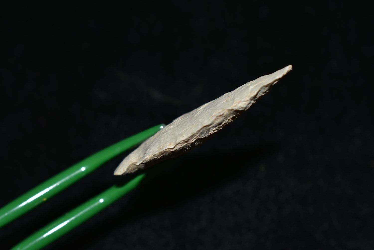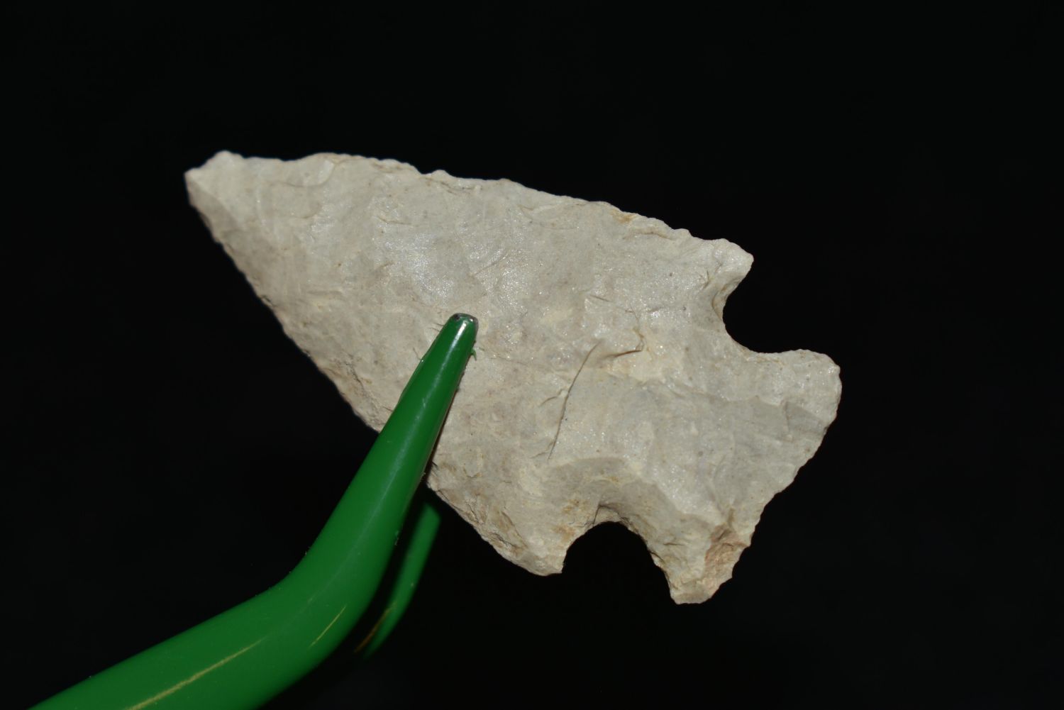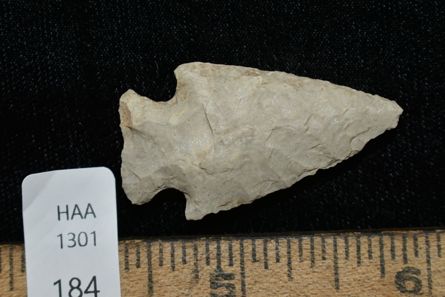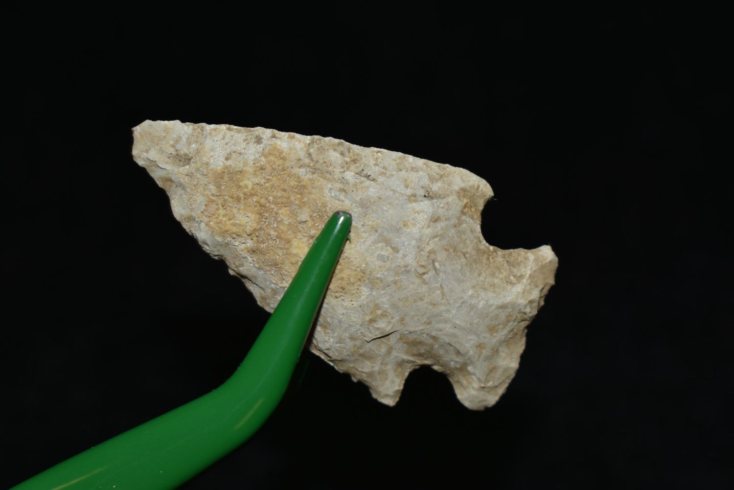 1 1/2" Besant, Musselshell, MT, Creel Poore was born and raised in Musselshell, Montana where he found his first arrowhead at a very early age. This led Creel on a lifetime search for Montana’s prehistoric past. Creel owned a ranch in Musselshell and collected from sites and in and around the Musselshell River and tributaries. Every piece in Creel’s collection is personally found. He did not purchase pieces, nor did he accept pieces as gifts. He took pride in the fact he found every piece. He also made the cedar frames from cedar trees that were cut on his ranch. Many of the pieces were collected from the buffalo jumps which were plentiful nearby