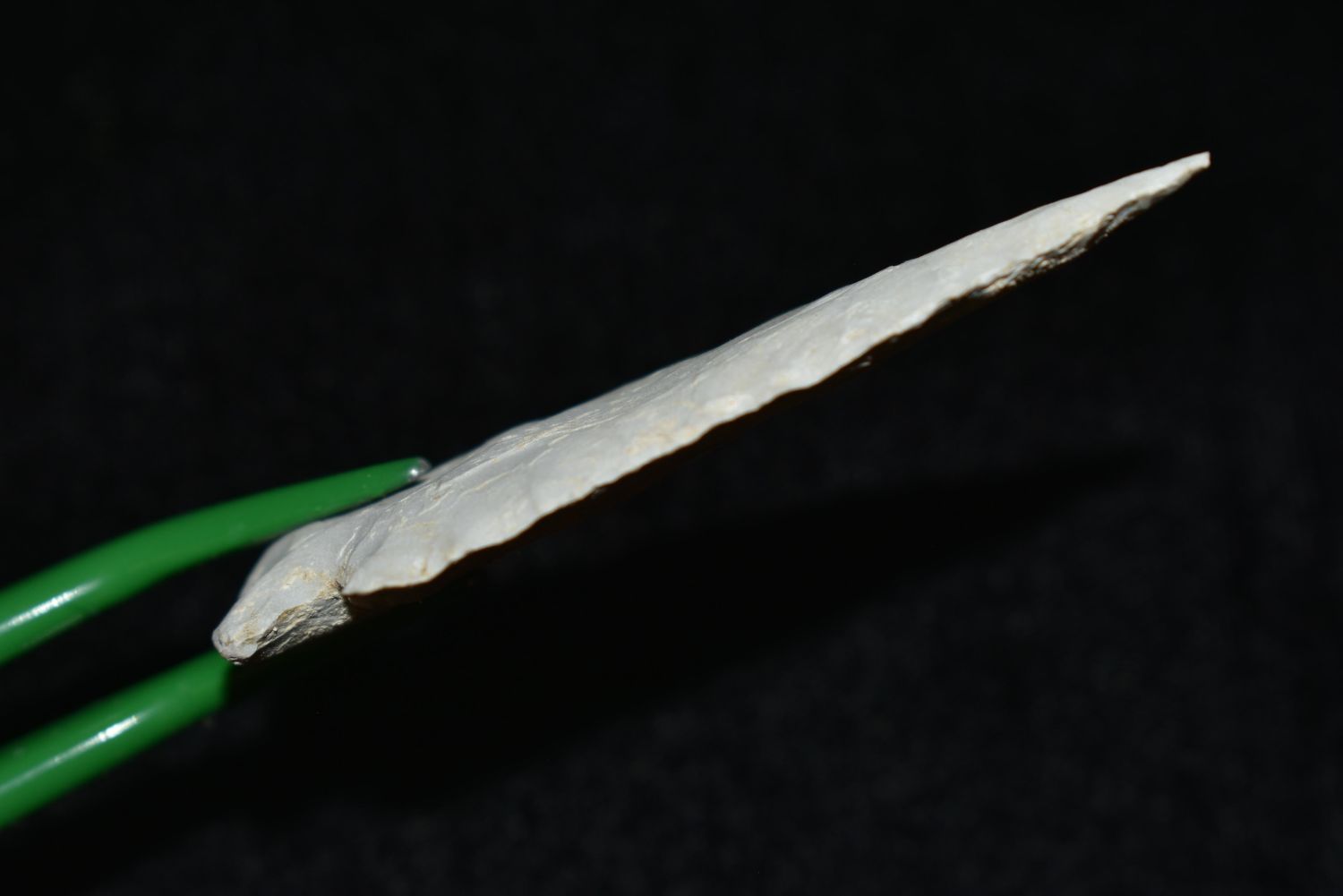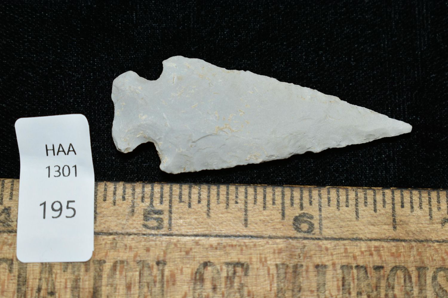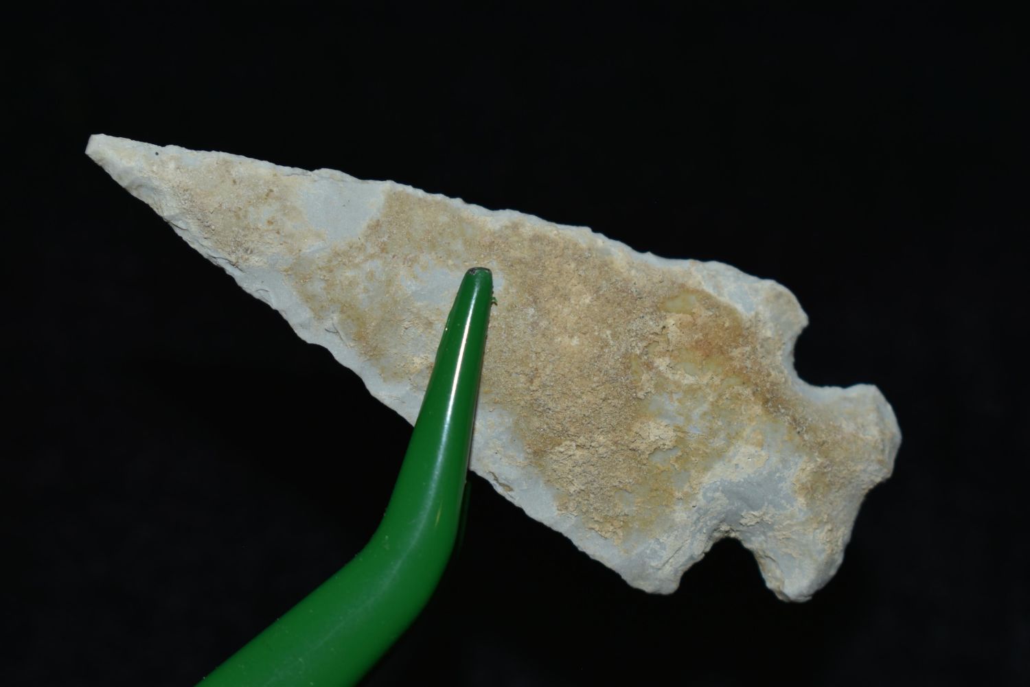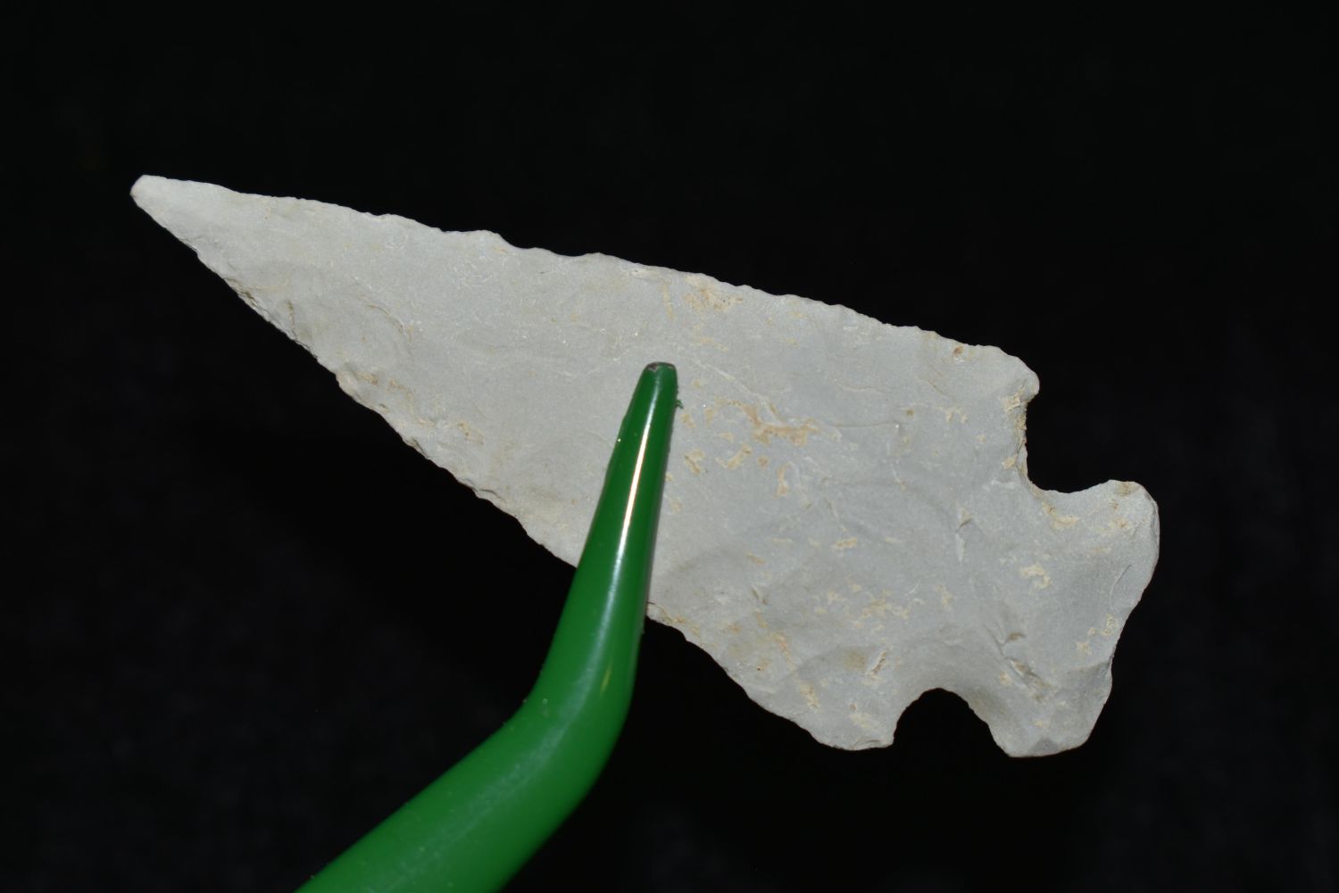 2 1/8" Besant, Great Patination, Musselshell, MT, Creel Poore was born and raised in Musselshell, Montana where he found his first arrowhead at a very early age. This led Creel on a lifetime search for Montana’s prehistoric past. Creel owned a ranch in Musselshell and collected from sites and in and around the Musselshell River and tributaries. Every piece in Creel’s collection is personally found. He did not purchase pieces, nor did he accept pieces as gifts. He took pride in the fact he found every piece. He also made the cedar frames from cedar trees that were cut on his ranch. Many of the pieces were collected from the buffalo jumps which were plentiful nearby