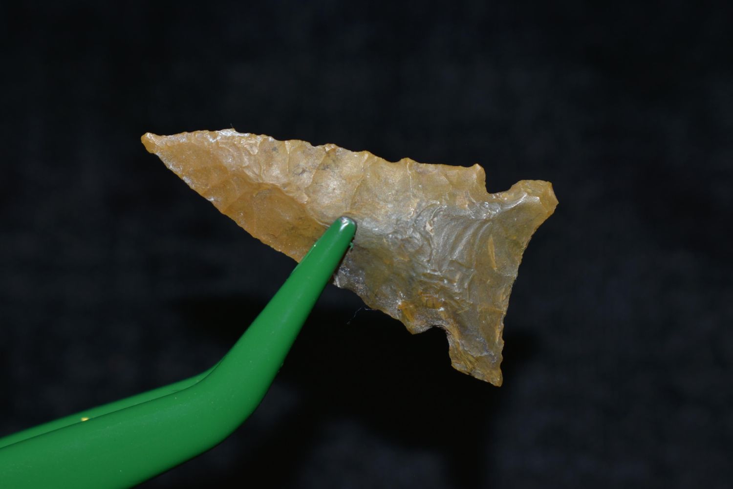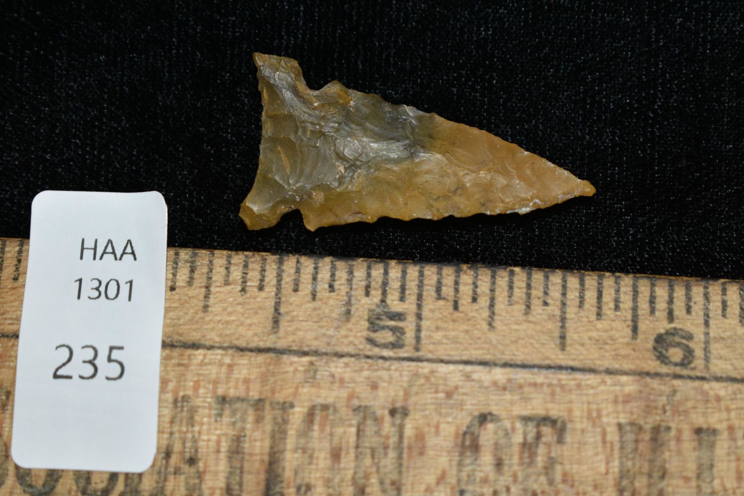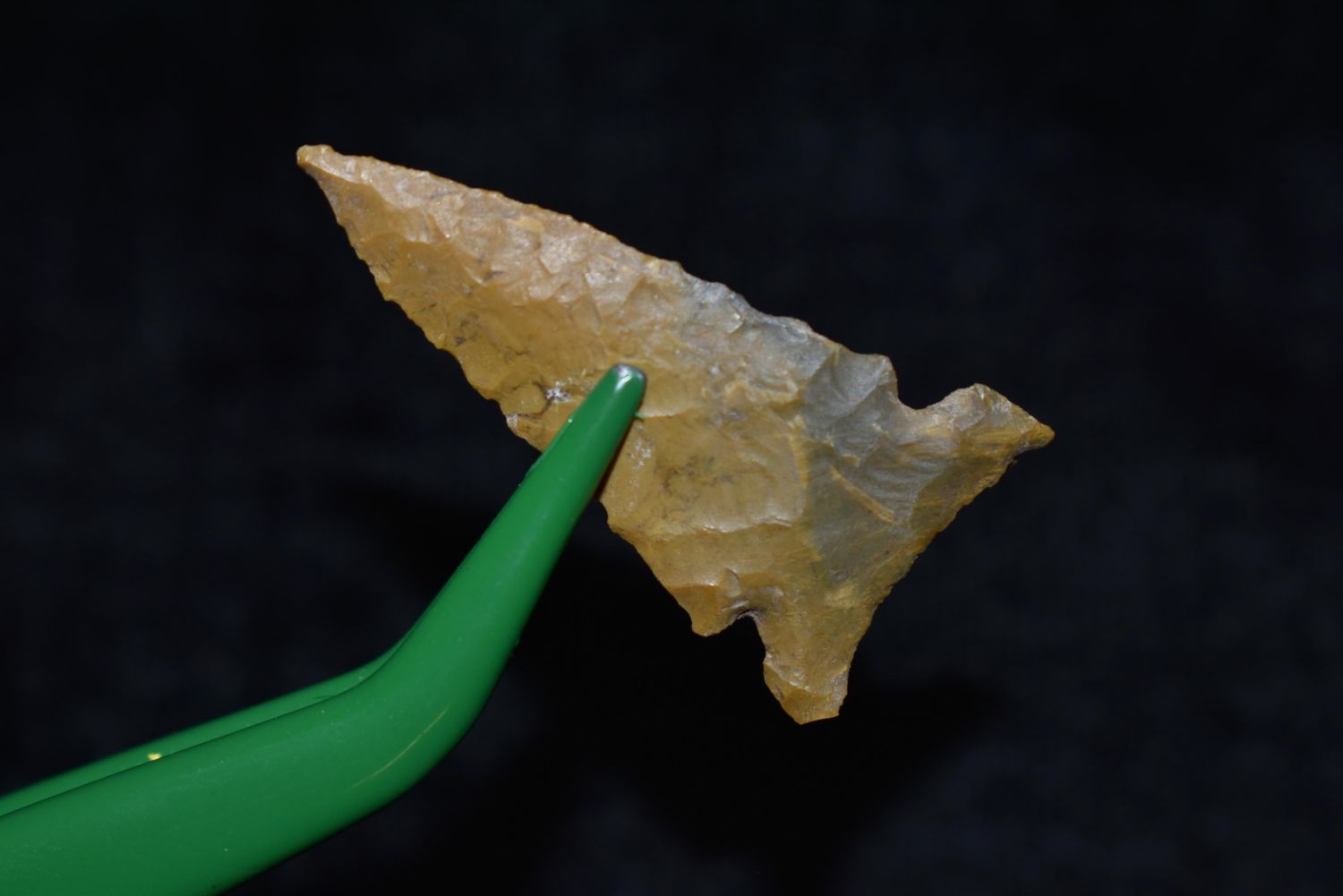 1 1/4" Avonlea, Musselshell, MT, Creel Poore was born and raised in Musselshell, Montana where he found his first arrowhead at a very early age. This led Creel on a lifetime search for Montana’s prehistoric past. Creel owned a ranch in Musselshell and collected from sites and in and around the Musselshell River and tributaries. Every piece in Creel’s collection is personally found. He did not purchase pieces, nor did he accept pieces as gifts. He took pride in the fact he found every piece. He also made the cedar frames from cedar trees that were cut on his ranch. Many of the pieces were collected from the buffalo jumps which were plentiful nearby