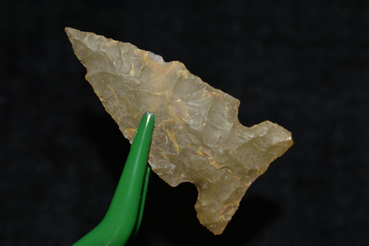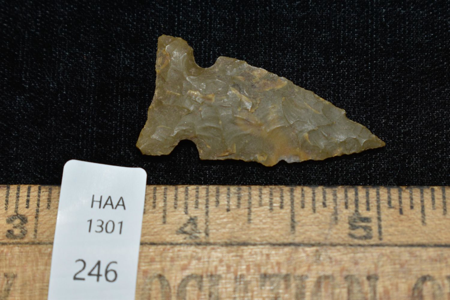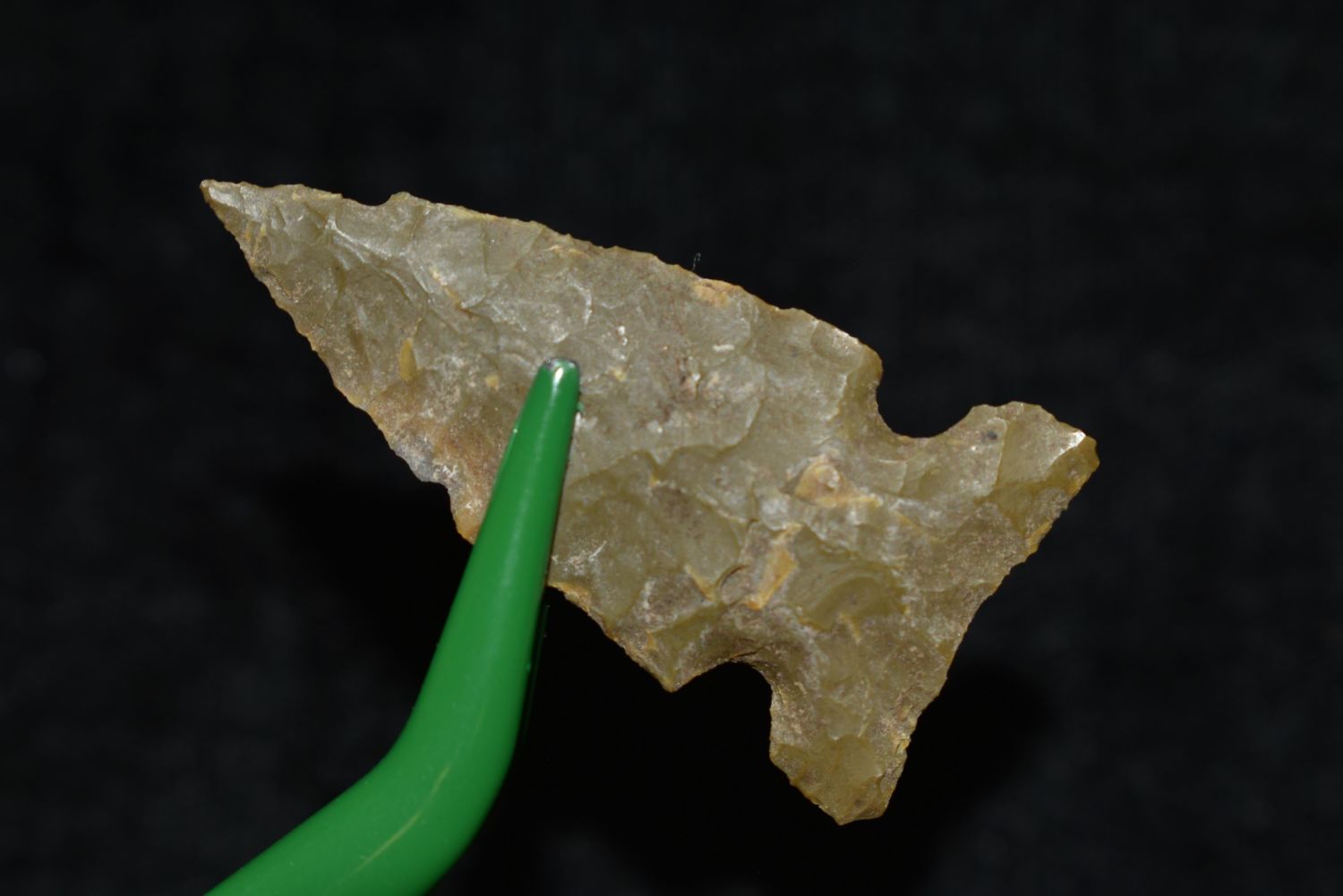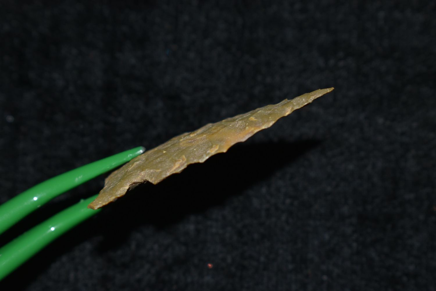 1 1/4" Looking Bill, Musselshell, MT, Creel Poore was born and raised in Musselshell, Montana where he found his first arrowhead at a very early age. This led Creel on a lifetime search for Montana’s prehistoric past. Creel owned a ranch in Musselshell and collected from sites and in and around the Musselshell River and tributaries. Every piece in Creel’s collection is personally found. He did not purchase pieces, nor did he accept pieces as gifts. He took pride in the fact he found every piece. He also made the cedar frames from cedar trees that were cut on his ranch. Many of the pieces were collected from the buffalo jumps which were plentiful nearby