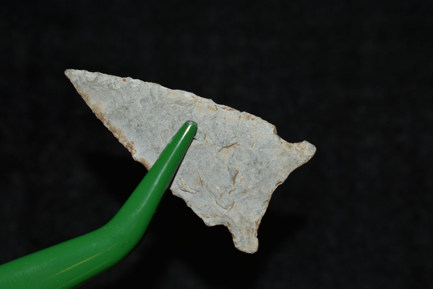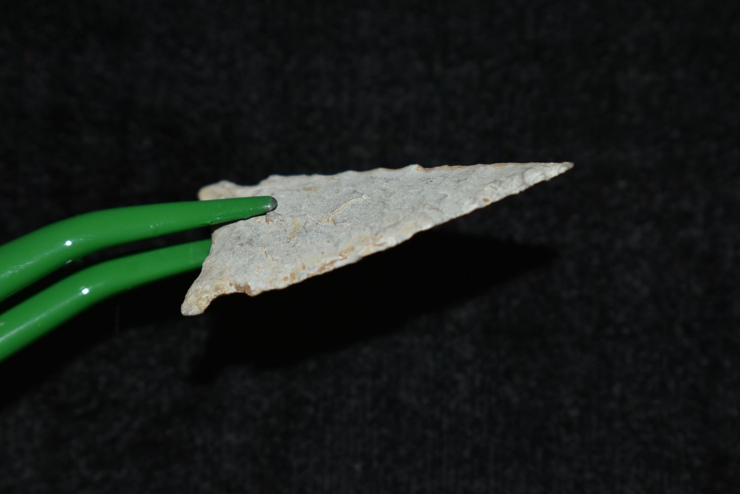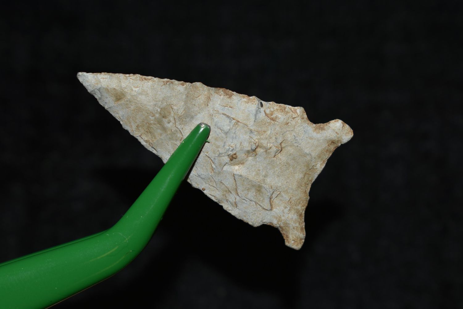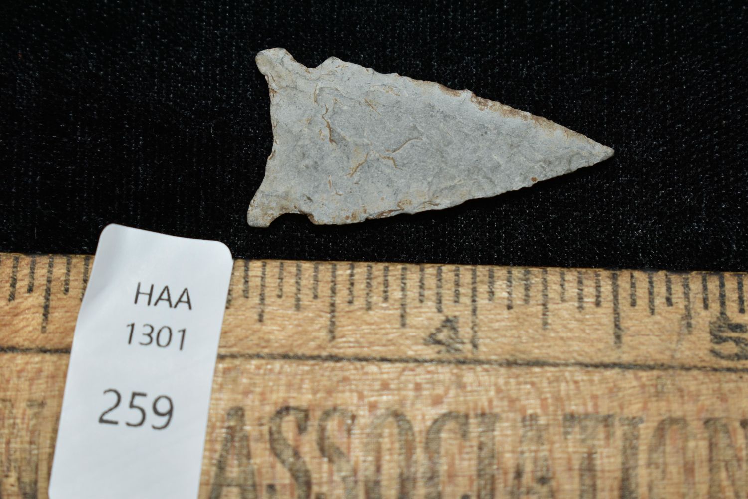1 3/8" Avonlea, Musselshell, MT, Creel Poore was born and raised in Musselshell, Montana where he found his first arrowhead at a very early age. This led Creel on a lifetime search for Montana’s prehistoric past. Creel owned a ranch in Musselshell and collected from sites and in and around the Musselshell River and tributaries. Every piece in Creel’s collection is personally found. He did not purchase pieces, nor did he accept pieces as gifts. He took pride in the fact he found every piece. He also made the cedar frames from cedar trees that were cut on his ranch. Many of the pieces were collected from the buffalo jumps which were plentiful nearby