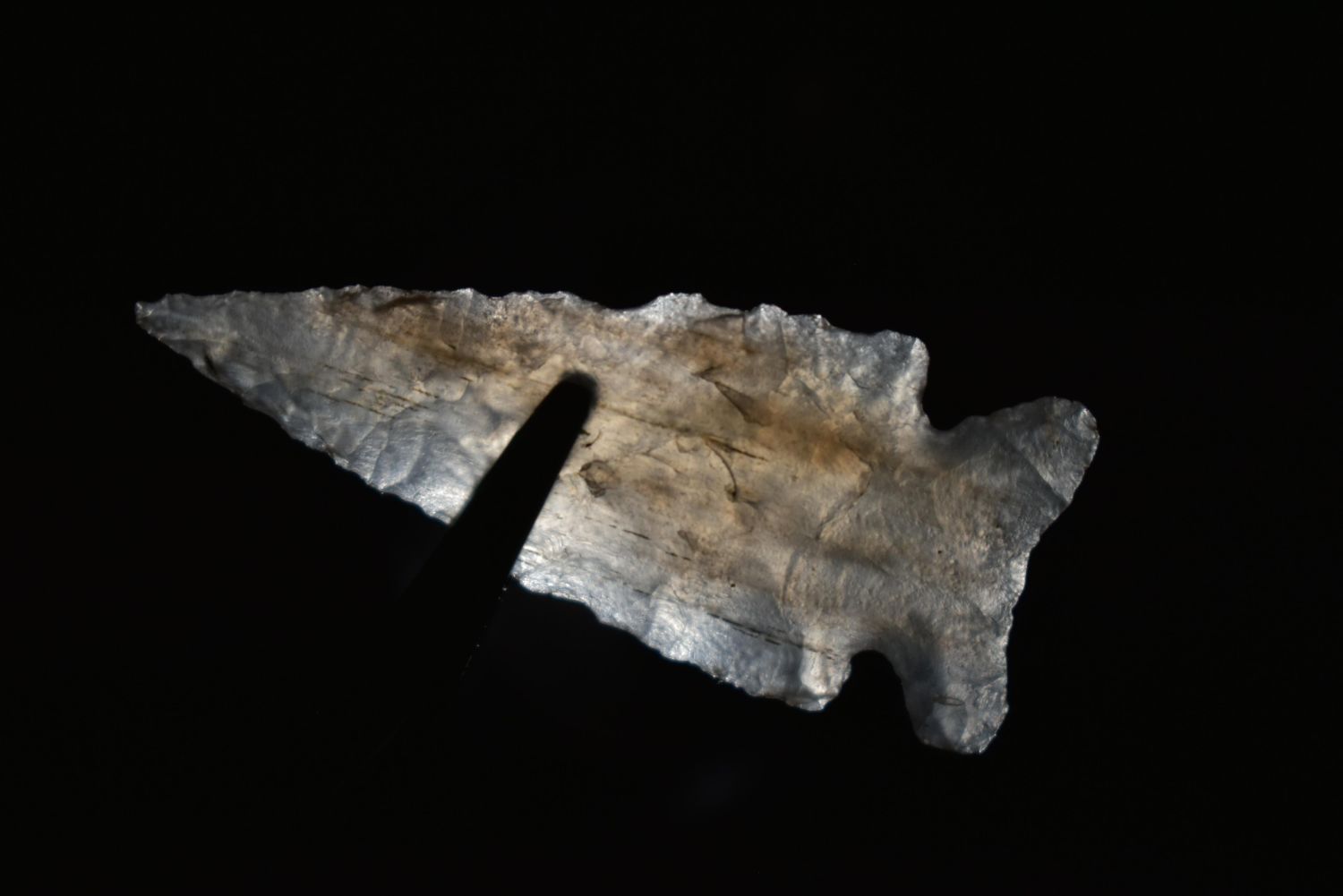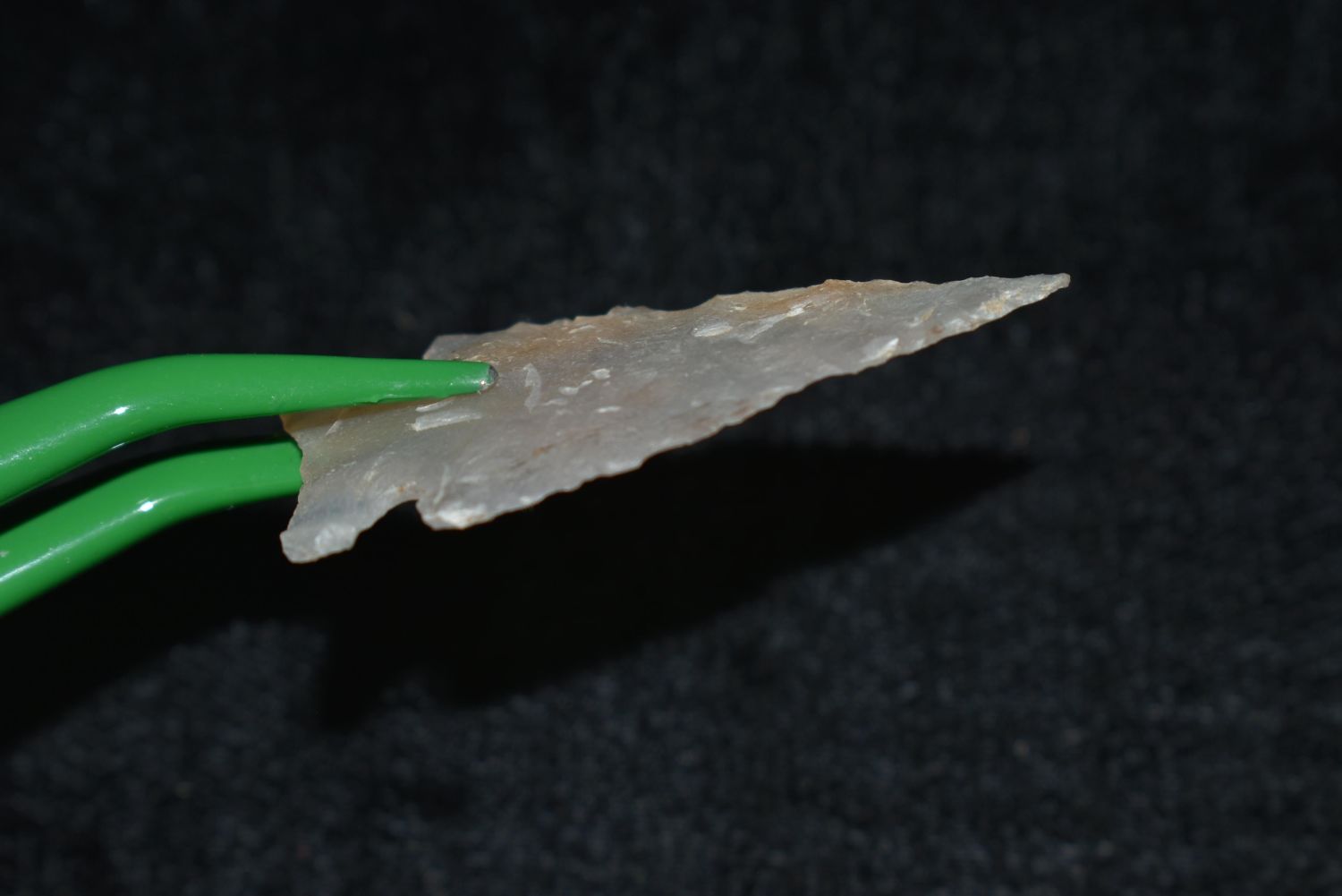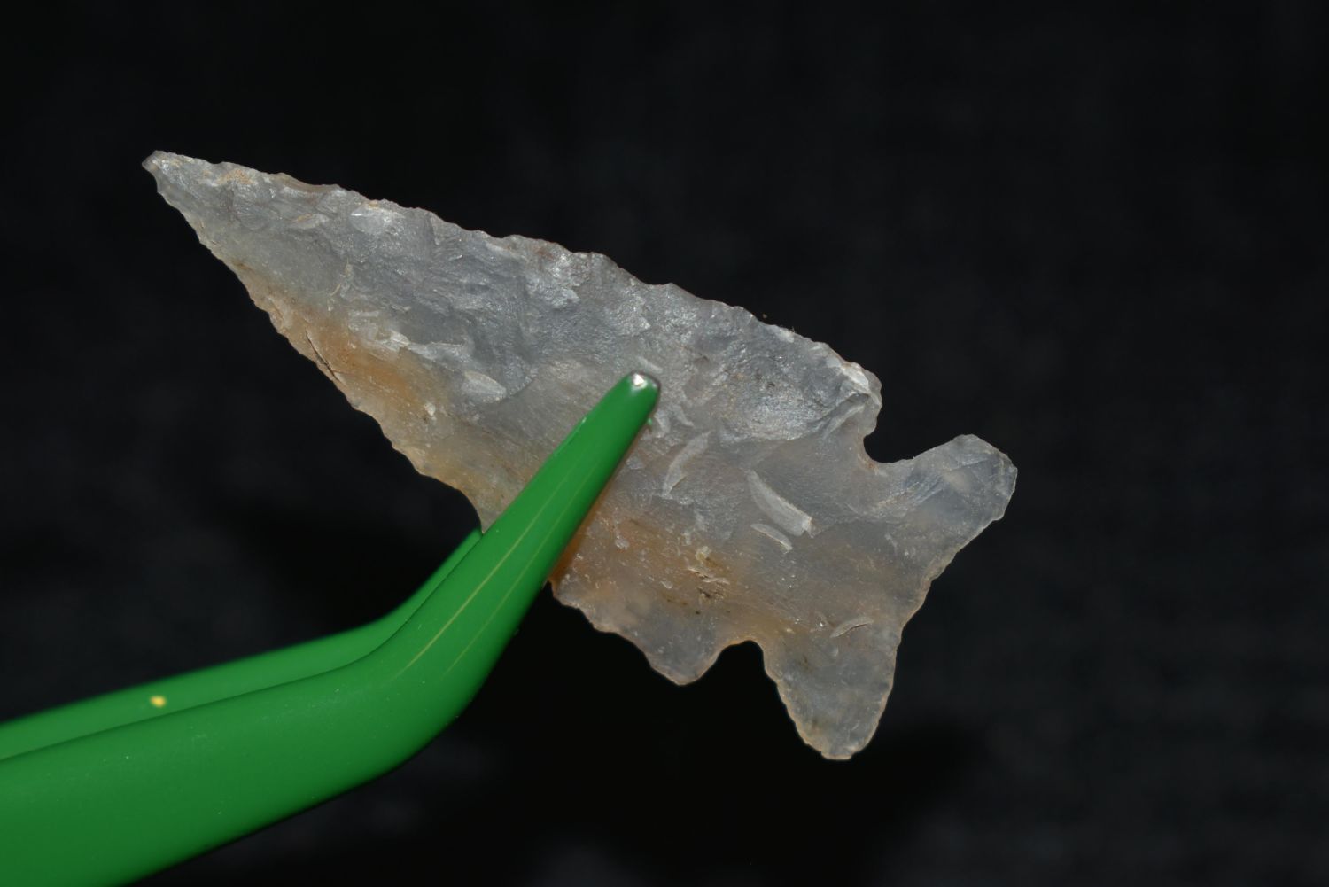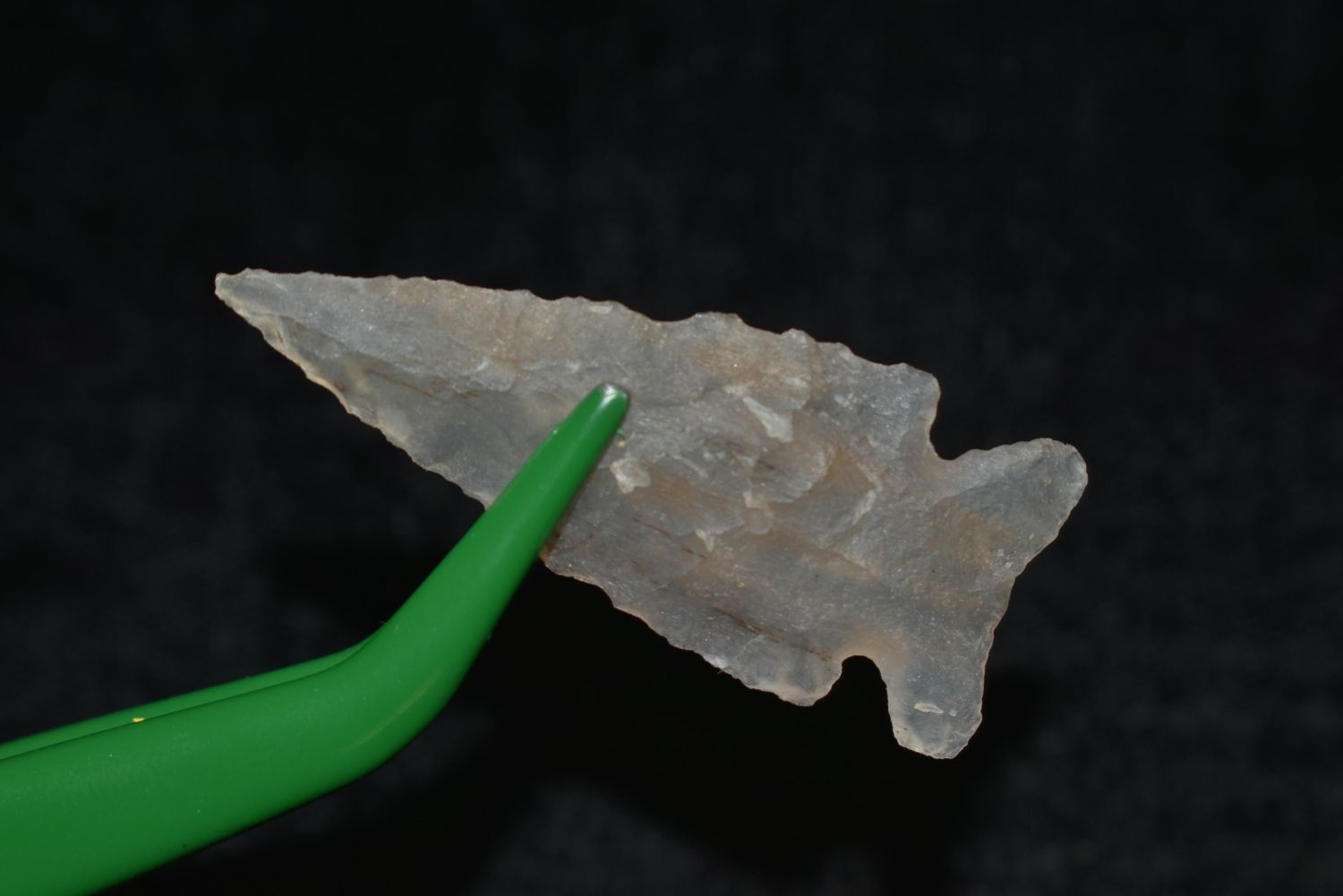 1 5/8" Highly Translucent, Looking Bill, Musselshell, MT, Creel Poore was born and raised in Musselshell, Montana where he found his first arrowhead at a very early age. This led Creel on a lifetime search for Montana’s prehistoric past. Creel owned a ran