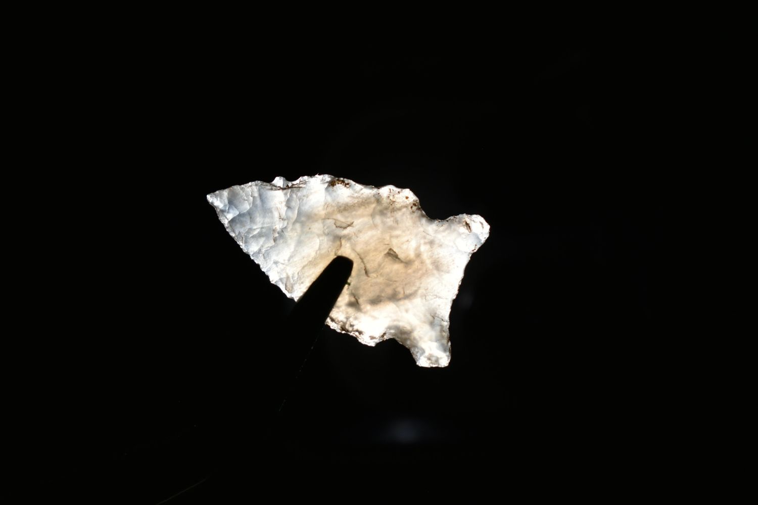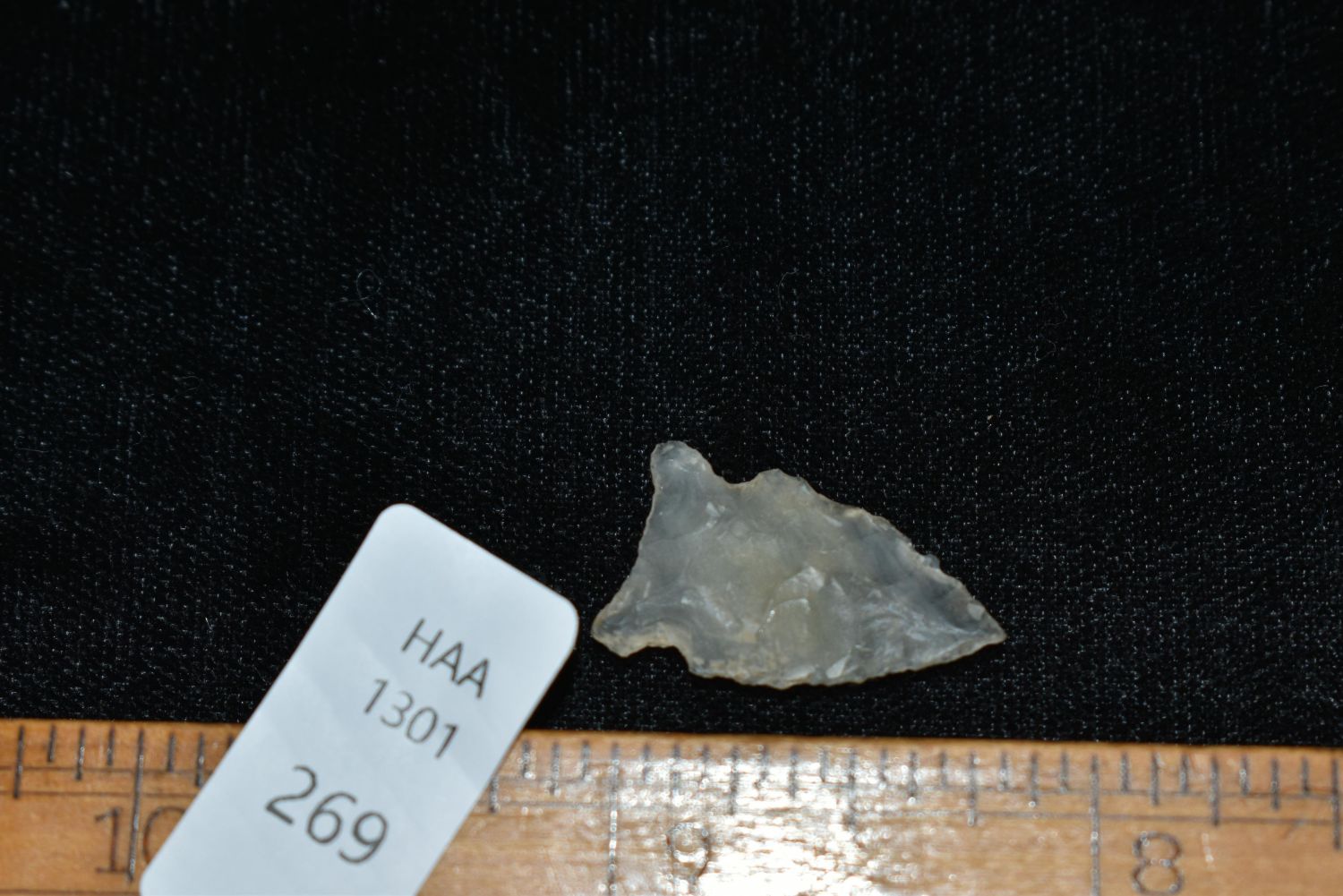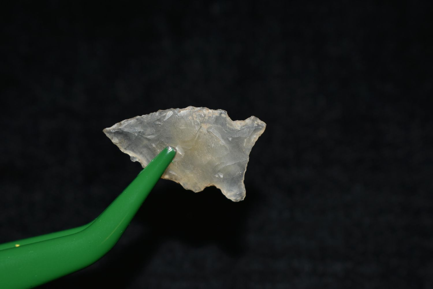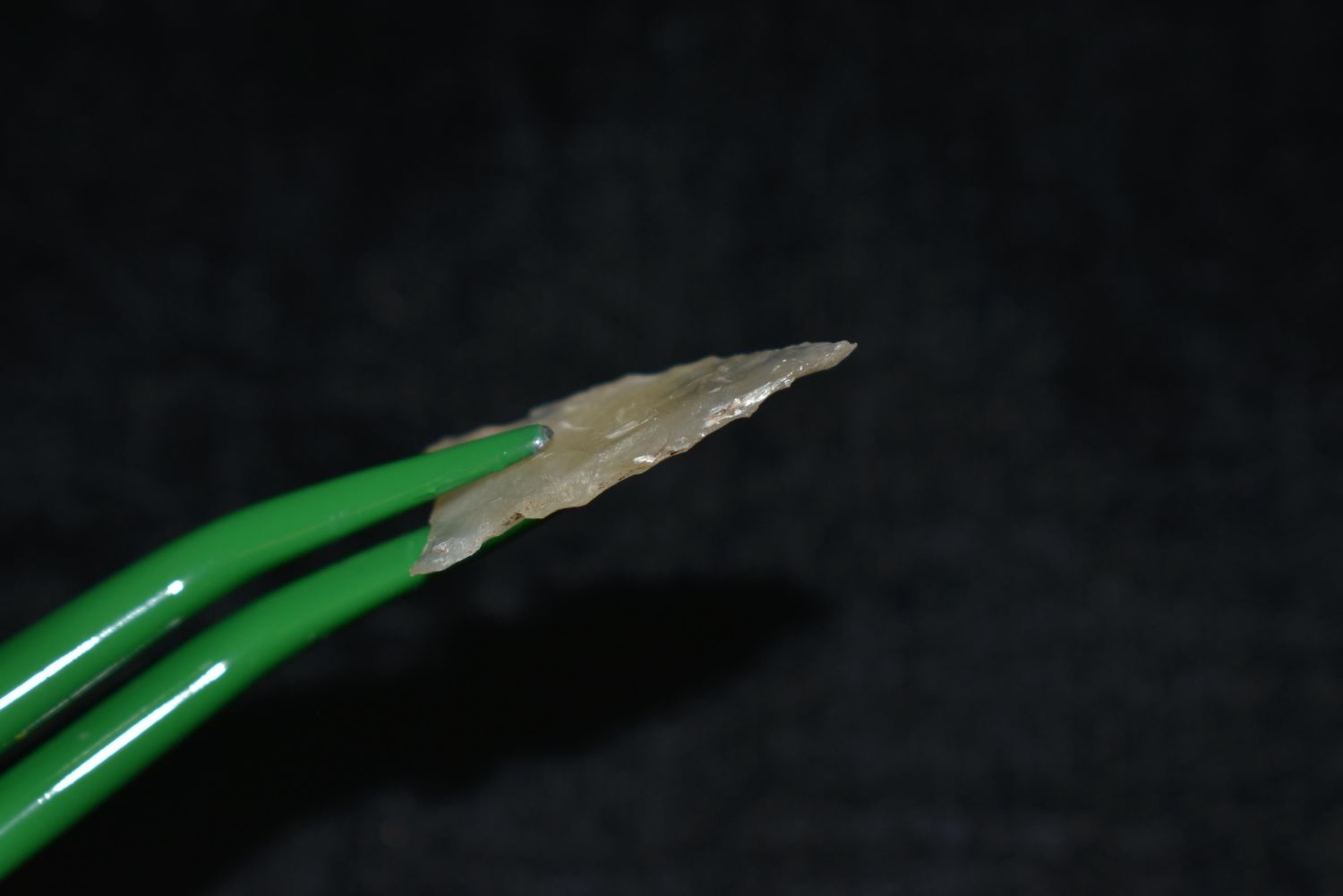 7/8" Translucent Avonlea, Musselshell, MT, Creel Poore was born and raised in Musselshell, Montana where he found his first arrowhead at a very early age. This led Creel on a lifetime search for Montana’s prehistoric past. Creel owned a ranch in Musselshell and collected from sites and in and around the Musselshell River and tributaries. Every piece in Creel’s collection is personally found. He did not purchase pieces, nor did he accept pieces as gifts. He took pride in the fact he found every piece. He also made the cedar frames from cedar trees that were cut on his ranch. Many of the pieces were collected from the buffalo jumps which were plentiful nearby
