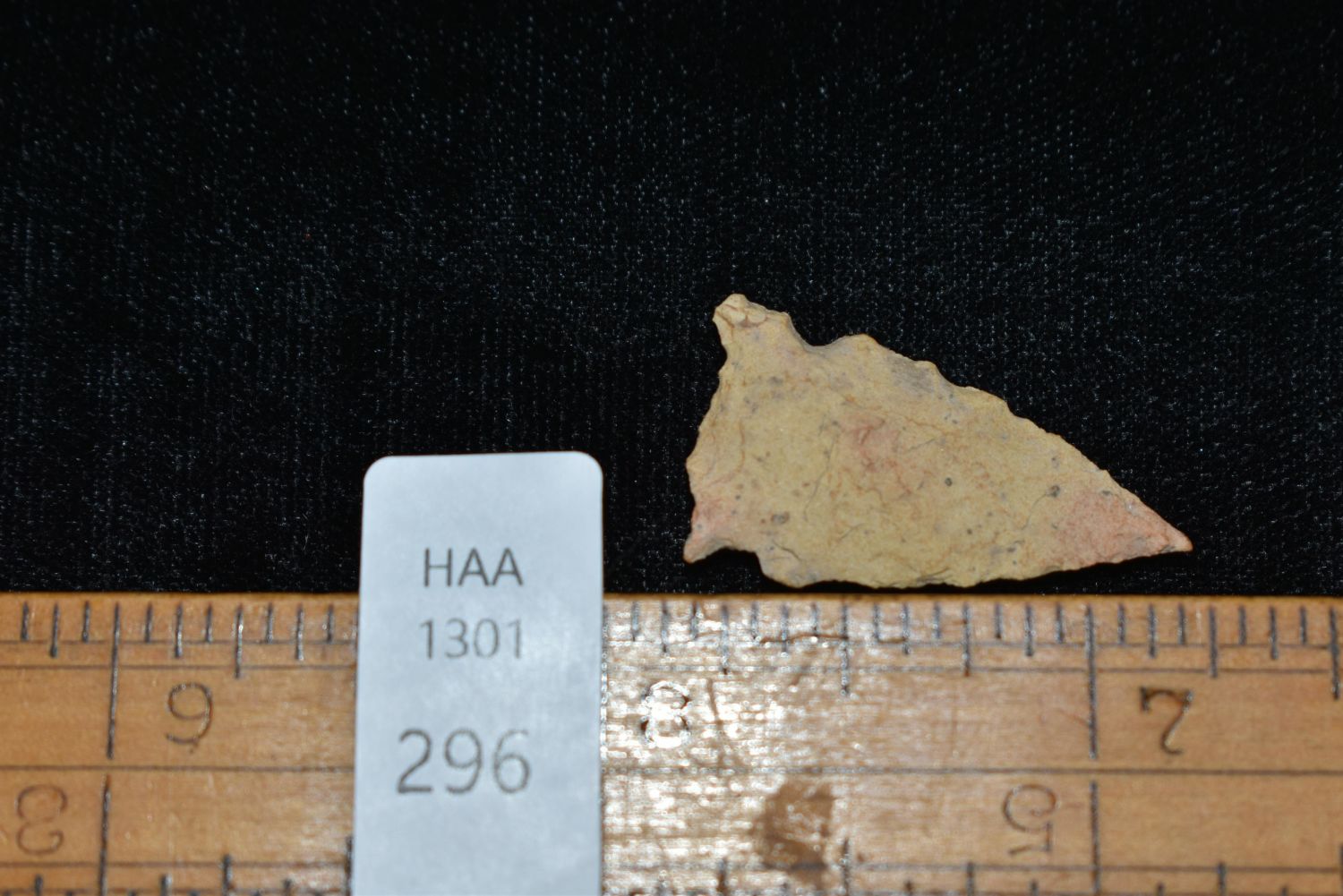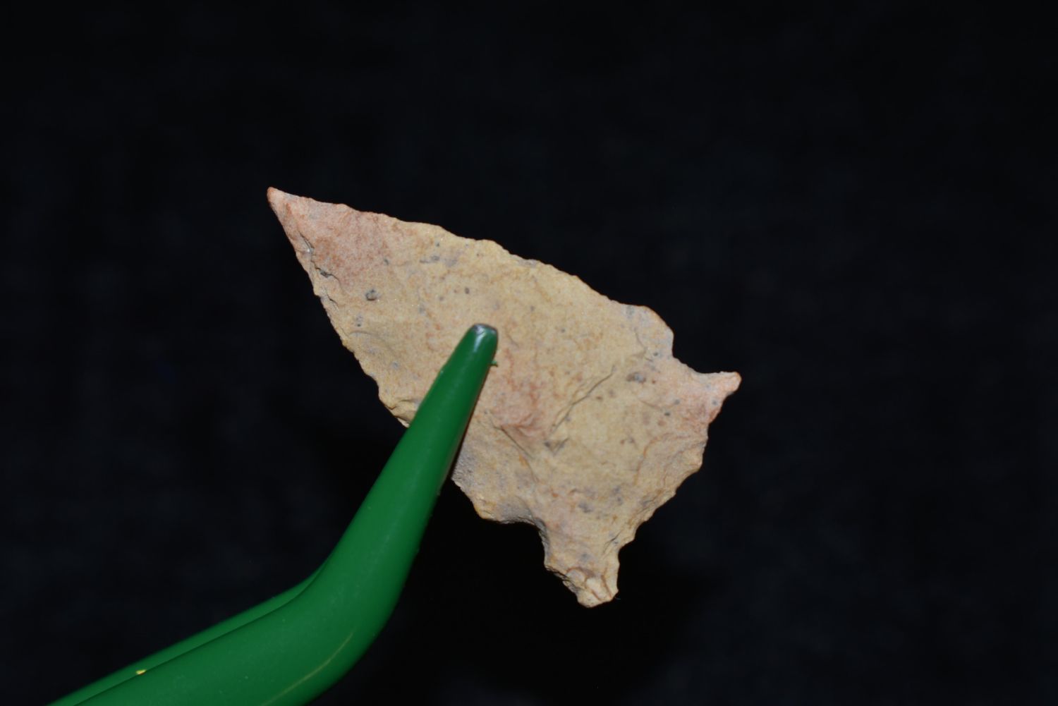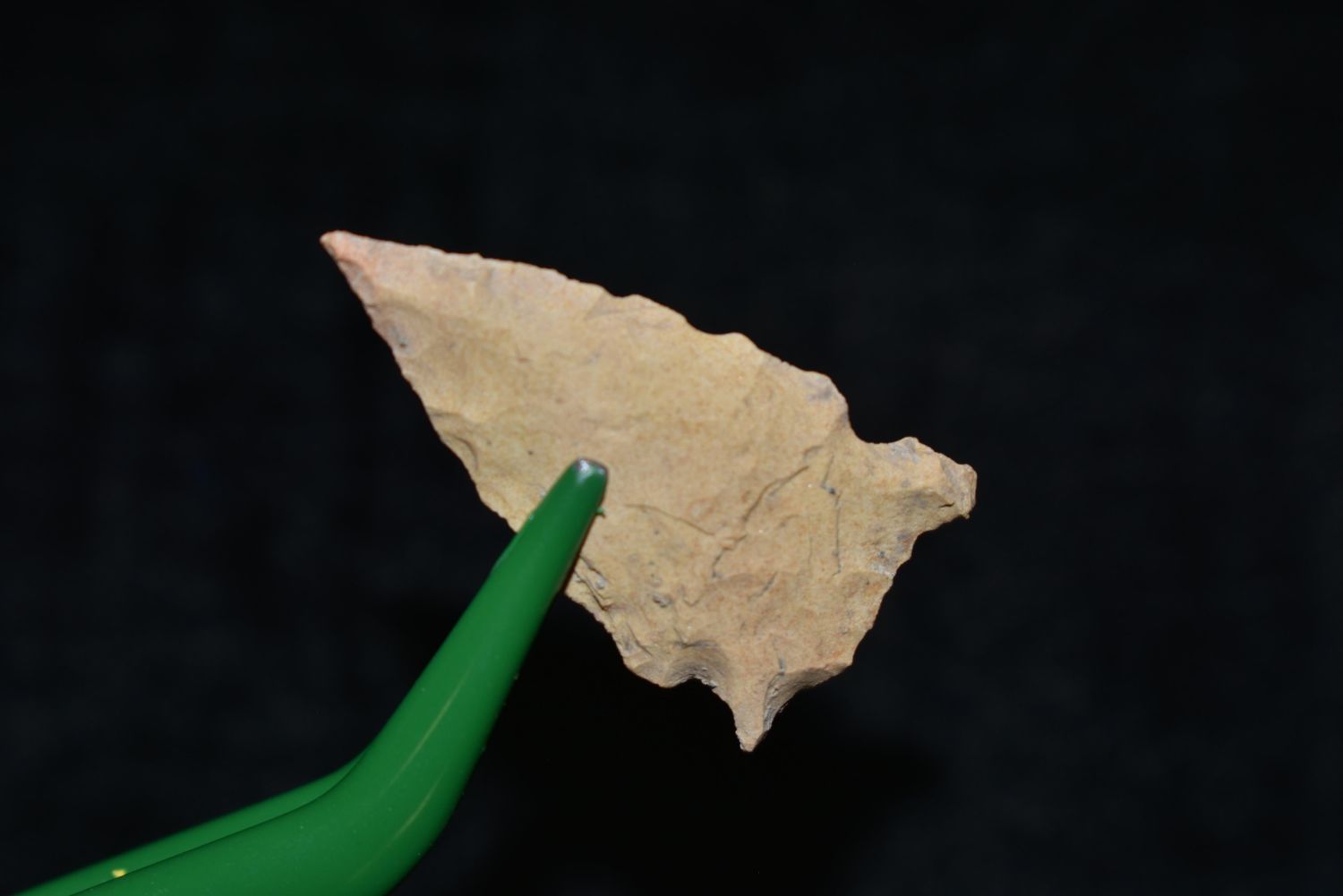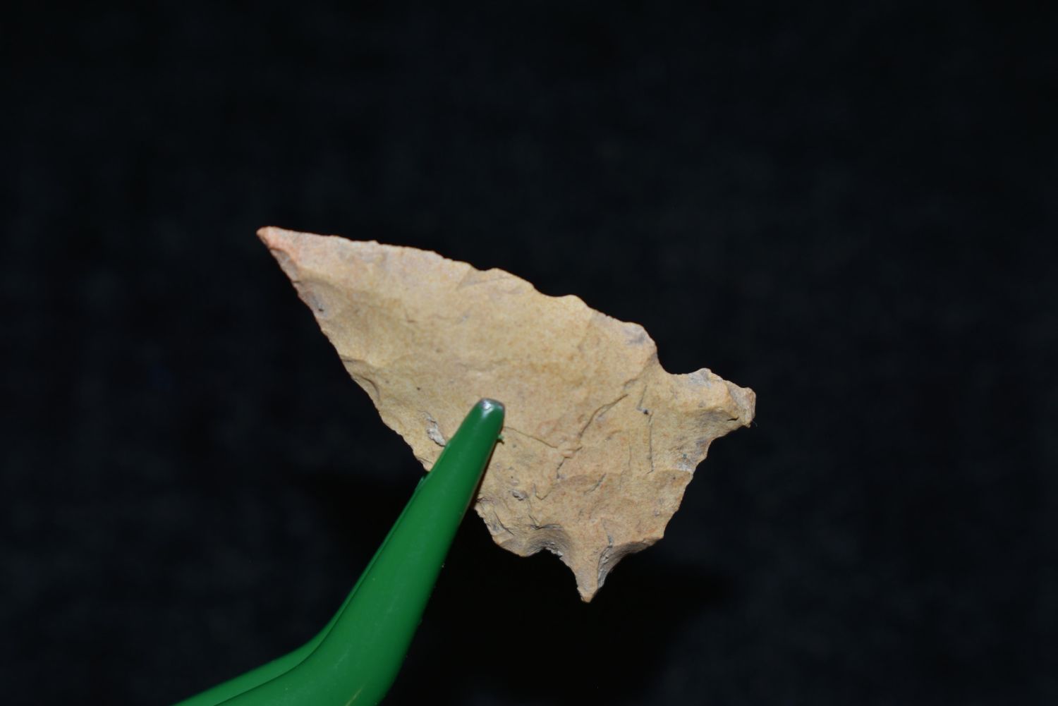 1 1/8" Avonlea, Musselshell, MT, Creel Poore was born and raised in Musselshell, Montana where he found his first arrowhead at a very early age. This led Creel on a lifetime search for Montana’s prehistoric past. Creel owned a ranch in Musselshell and collected from sites and in and around the Musselshell River and tributaries. Every piece in Creel’s collection is personally found. He did not purchase pieces, nor did he accept pieces as gifts. He took pride in the fact he found every piece. He also made the cedar frames from cedar trees that were cut on his ranch. Many of the pieces were collected from the buffalo jumps which were plentiful nearby