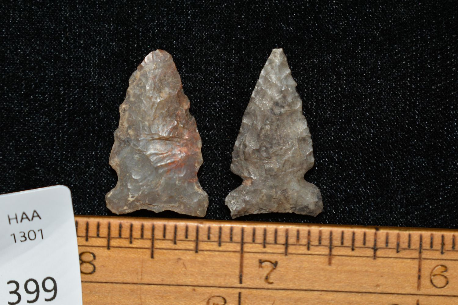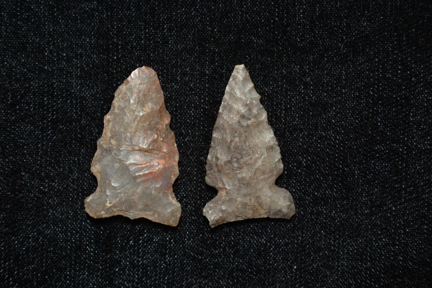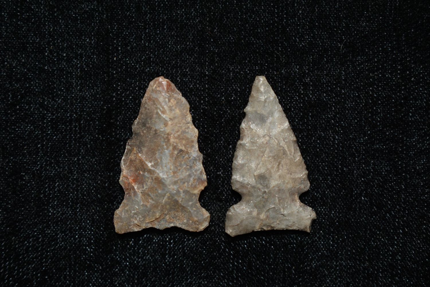 Lot of 2 Birdpoints, Musselshell, Montana where he found his first arrowhead at a very early age. This led Creel on a lifetime search for Montana’s prehistoric past. Creel owned a ranch in Musselshell and collected from sites and in and around the Musselshell River and tributaries. Every piece in Creel’s collection is personally found. He did not purchase pieces, nor did he accept pieces as gifts. He took pride in the fact he found every piece. He also made the cedar frames from cedar trees that were cut on his ranch. Many of the pieces were collected from the buffalo jumps which were plentiful nearby