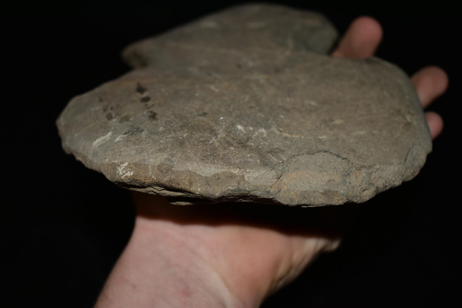 8" Chipped Axe, Musselshell, MT, Creel Poore was born and raised in Musselshell, Montana where he found his first arrowhead at a very early age. This led Creel on a lifetime search for Montana’s prehistoric past. Creel owned a ranch in Musselshell and collected from sites and in and around the Musselshell River and tributaries. Every piece in Creel’s collection is personally found. He did not purchase pieces, nor did he accept pieces as gifts. He took pride in the fact he found every piece. He also made the cedar frames from cedar trees that were cut on his ranch. Many of the pieces were collected from the buffalo jumps which were plentiful nearby