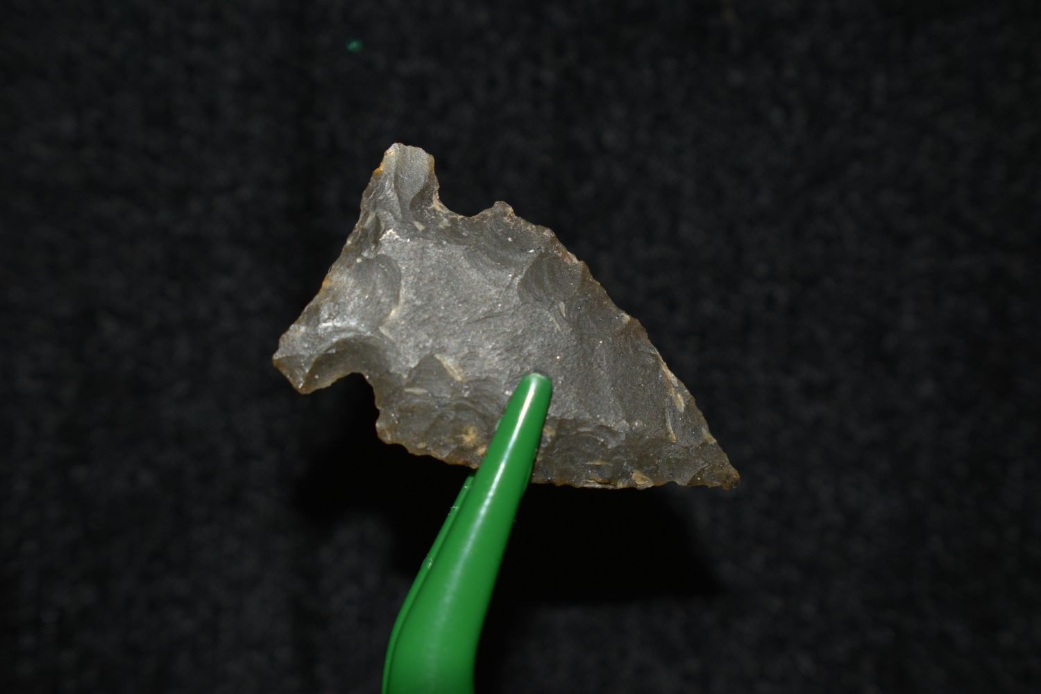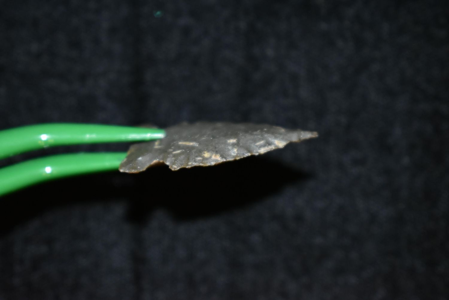 1" Irvine, Musselshell, Montana where he found his first arrowhead at a very early age. This led Creel on a lifetime search for Montana’s prehistoric past. Creel owned a ranch in Musselshell and collected from sites and in and around the Musselshell River and tributaries. Every piece in Creel’s collection is personally found. He did not purchase pieces, nor did he accept pieces as gifts. He took pride in the fact he found every piece. He also made the cedar frames from cedar trees that were cut on his ranch. Many of the pieces were collected from the buffalo jumps which were plentiful nearby