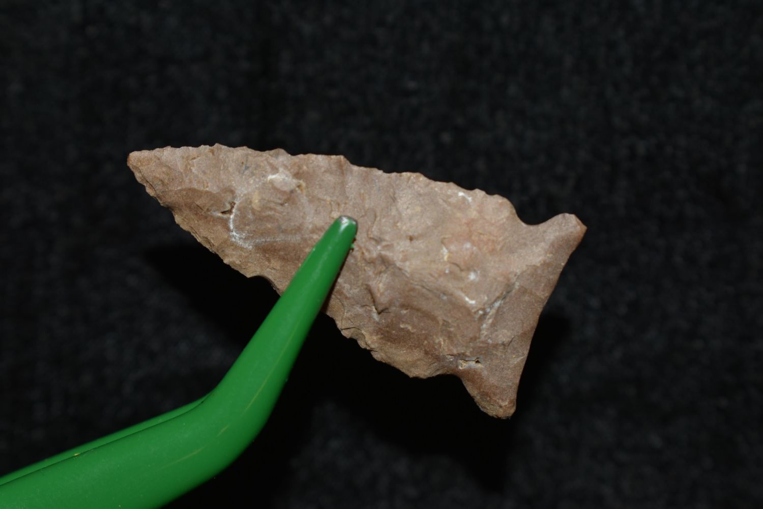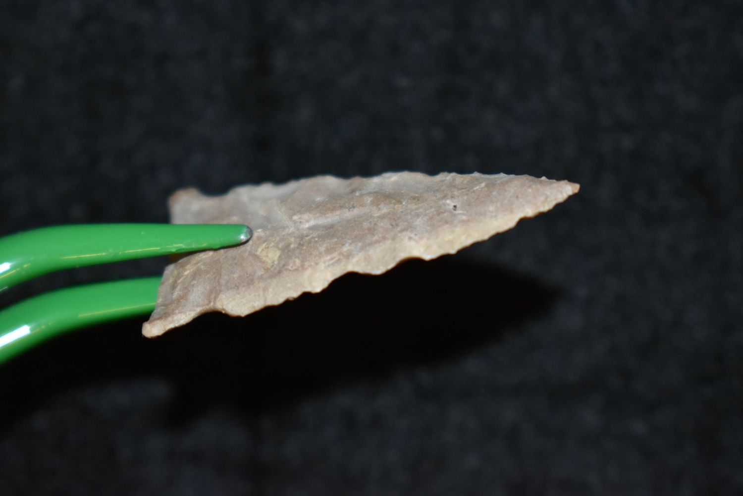 1 1/4 Avonlea, Musselshell, Montana where he found his first arrowhead at a very early age. This led Creel on a lifetime search for Montana’s prehistoric past. Creel owned a ranch in Musselshell and collected from sites and in and around the Musselshell River and tributaries. Every piece in Creel’s collection is personally found. He did not purchase pieces, nor did he accept pieces as gifts. He took pride in the fact he found every piece. He also made the cedar frames from cedar trees that were cut on his ranch. Many of the pieces were collected from the buffalo jumps which were plentiful nearby