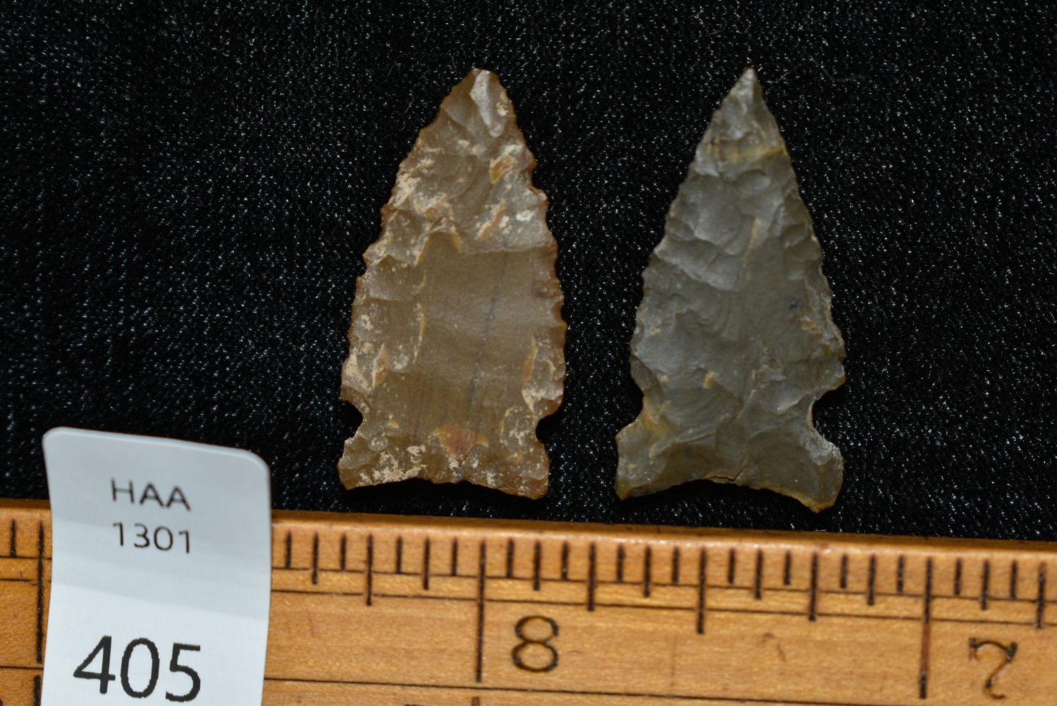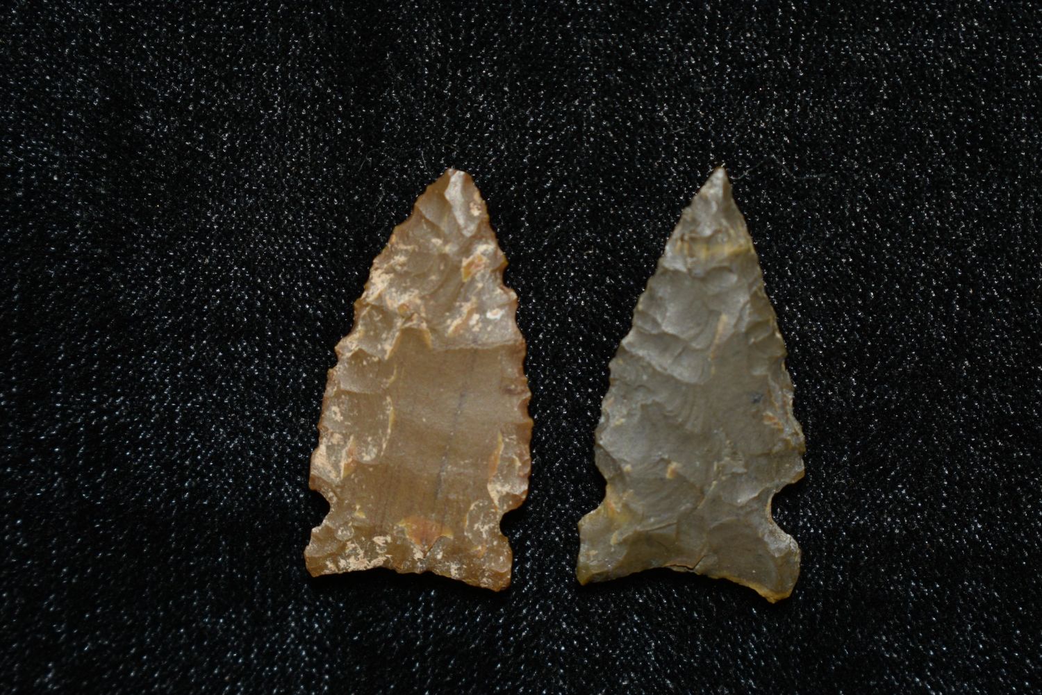 Lot of 2 Birdpoints, Musselshell, Montana where he found his first arrowhead at a very early age. This led Creel on a lifetime search for Montana’s prehistoric past. Creel owned a ranch in Musselshell and collected from sites and in and around the Musselshell River and tributaries. Every piece in Creel’s collection is personally found. He did not purchase pieces, nor did he accept pieces as gifts. He took pride in the fact he found every piece. He also made the cedar frames from cedar trees that were cut on his ranch. Many of the pieces were collected from the buffalo jumps which were plentiful nearby