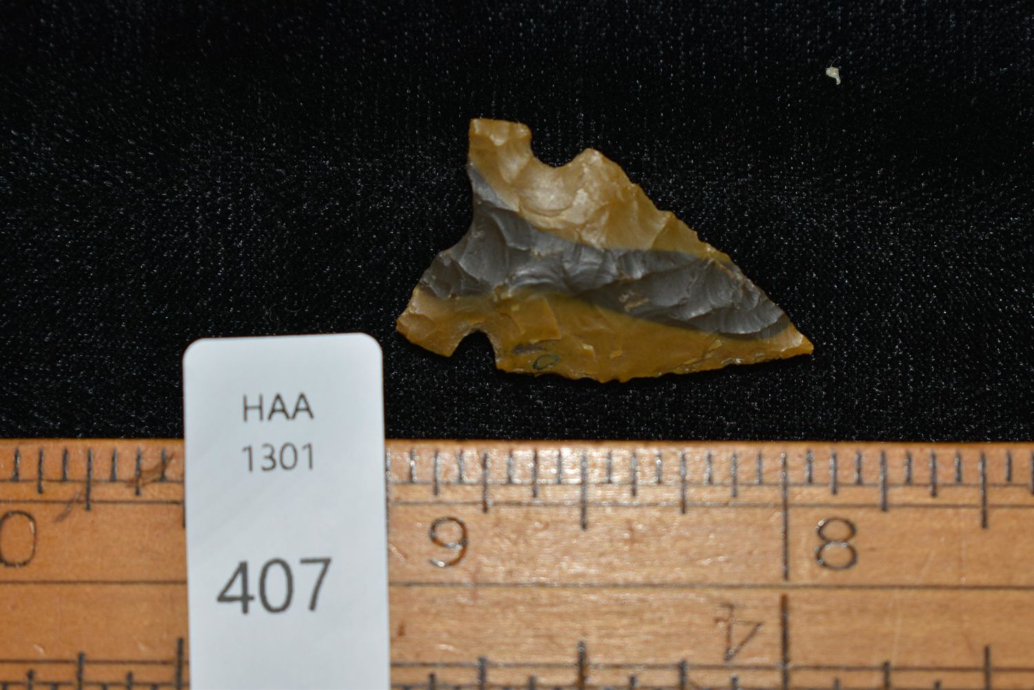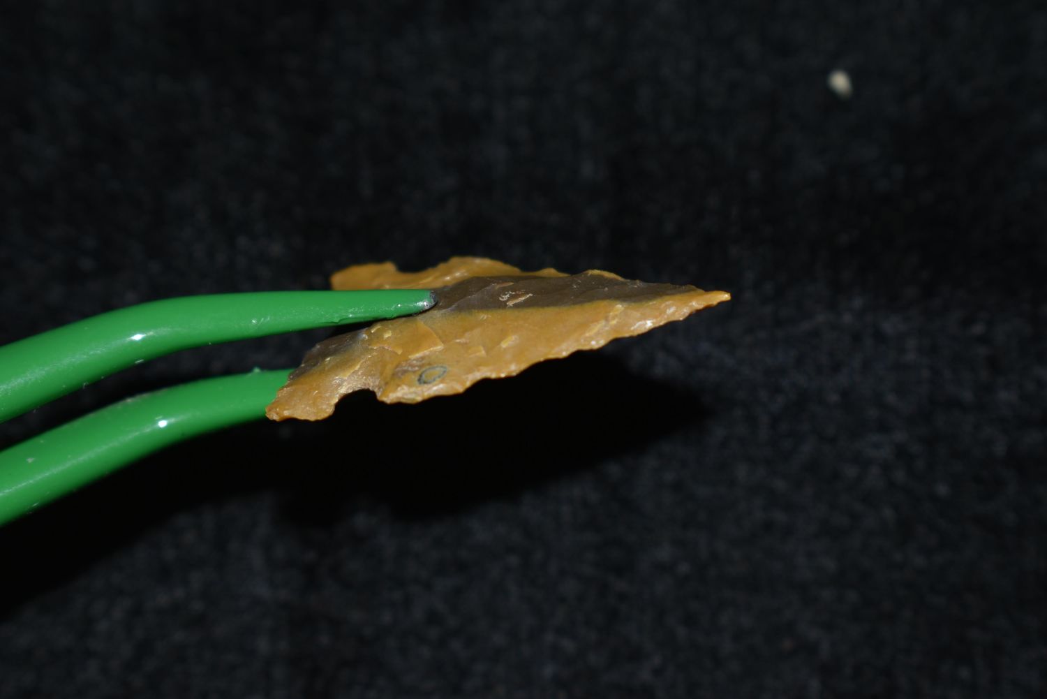 1" Immagrant Point, Musselshell, Montana where he found his first arrowhead at a very early age. This led Creel on a lifetime search for Montana’s prehistoric past. Creel owned a ranch in Musselshell and collected from sites and in and around the Musselshell River and tributaries. Every piece in Creel’s collection is personally found. He did not purchase pieces, nor did he accept pieces as gifts. He took pride in the fact he found every piece. He also made the cedar frames from cedar trees that were cut on his ranch. Many of the pieces were collected from the buffalo jumps which were plentiful nearby
