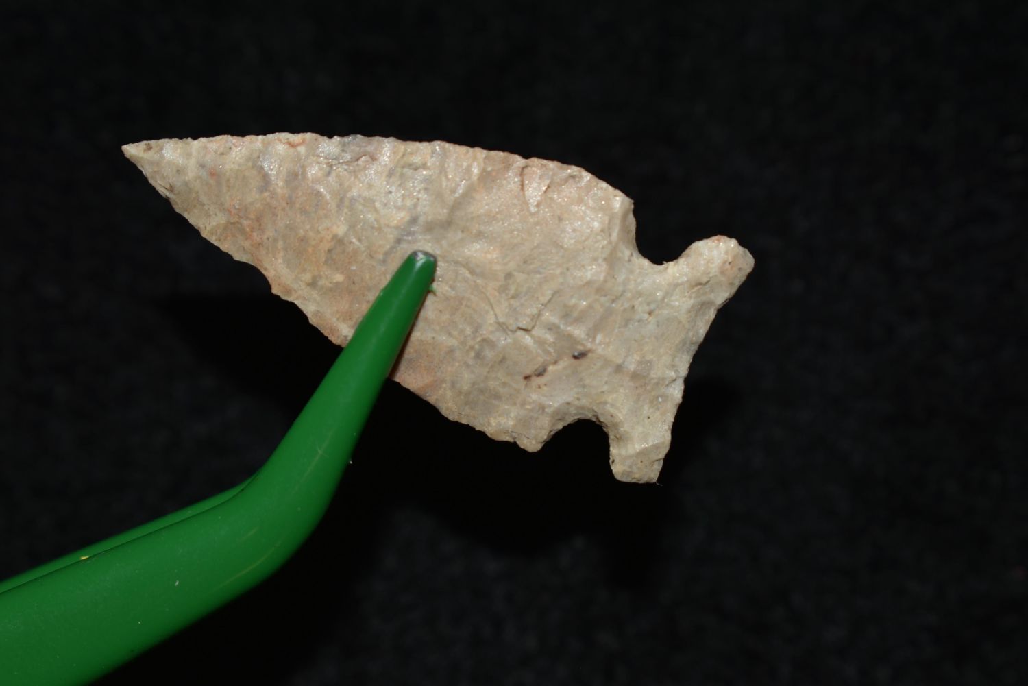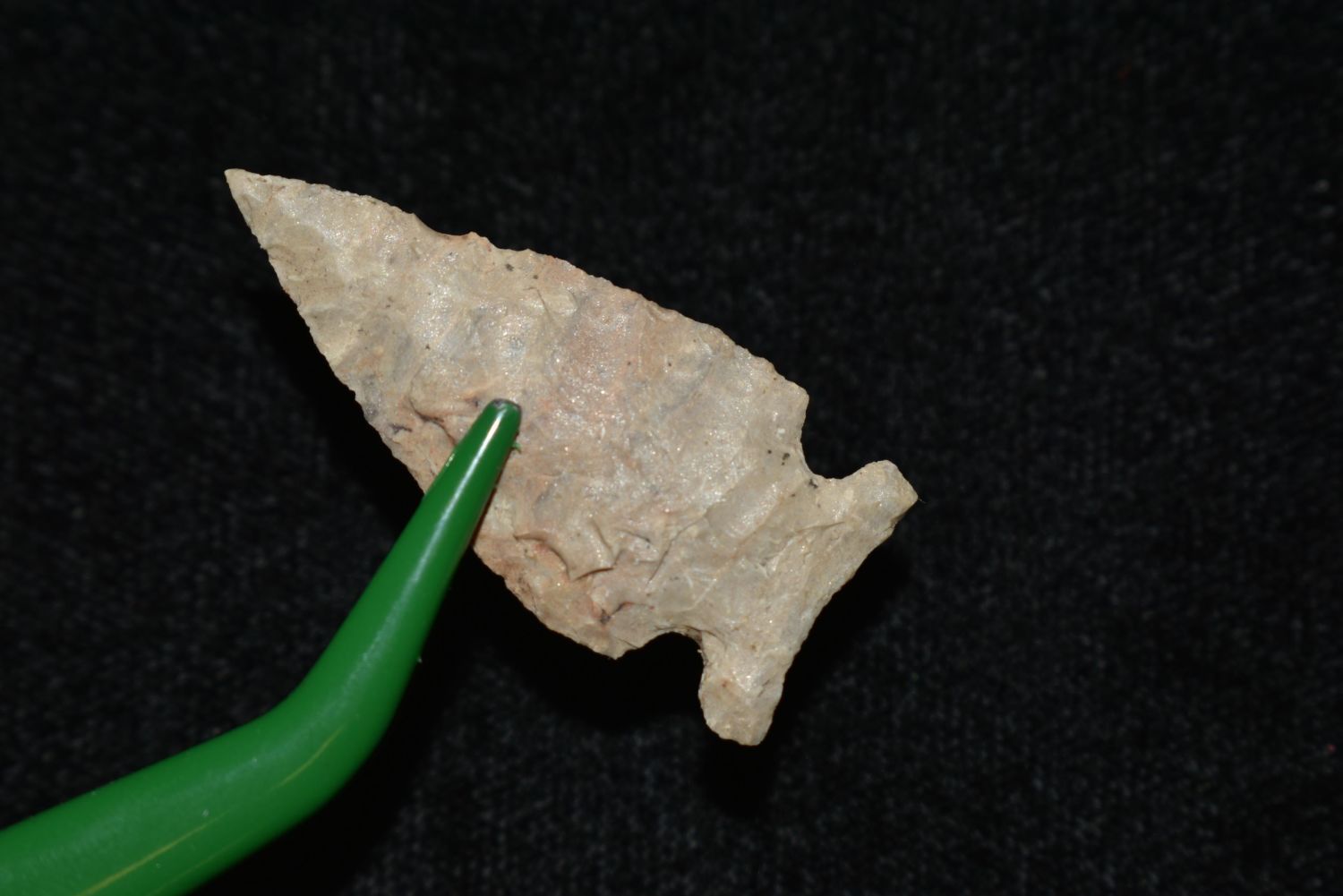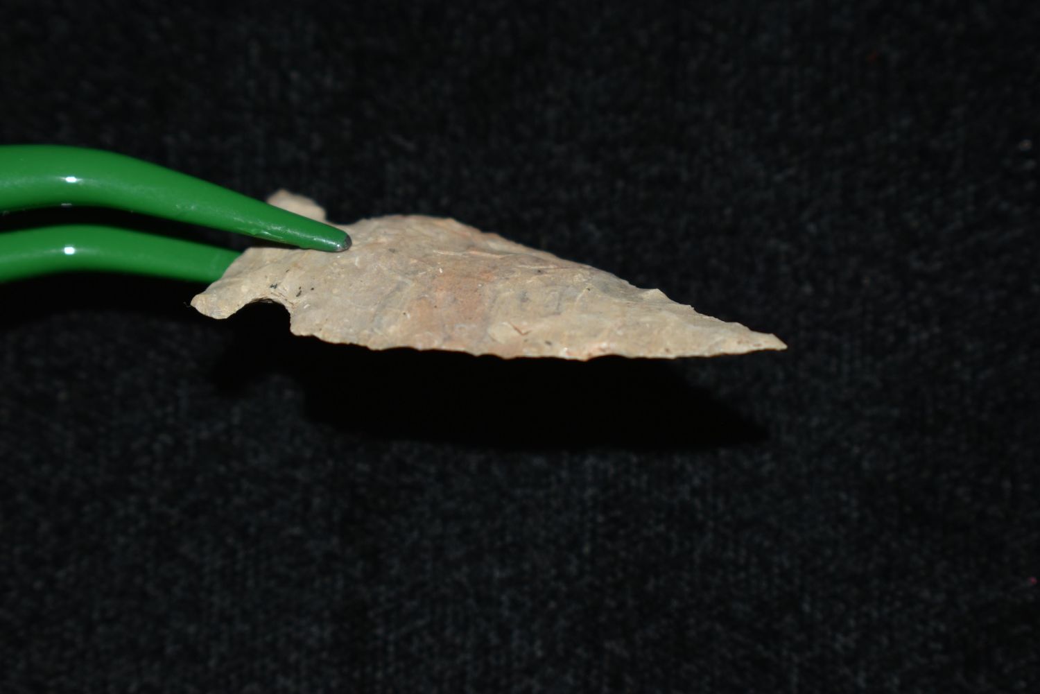 1 3/8" Looking Bill, Musselshell, Montana where he found his first arrowhead at a very early age. This led Creel on a lifetime search for Montana’s prehistoric past. Creel owned a ranch in Musselshell and collected from sites and in and around the Musselshell River and tributaries. Every piece in Creel’s collection is personally found. He did not purchase pieces, nor did he accept pieces as gifts. He took pride in the fact he found every piece. He also made the cedar frames from cedar trees that were cut on his ranch. Many of the pieces were collected from the buffalo jumps which were plentiful nearby
