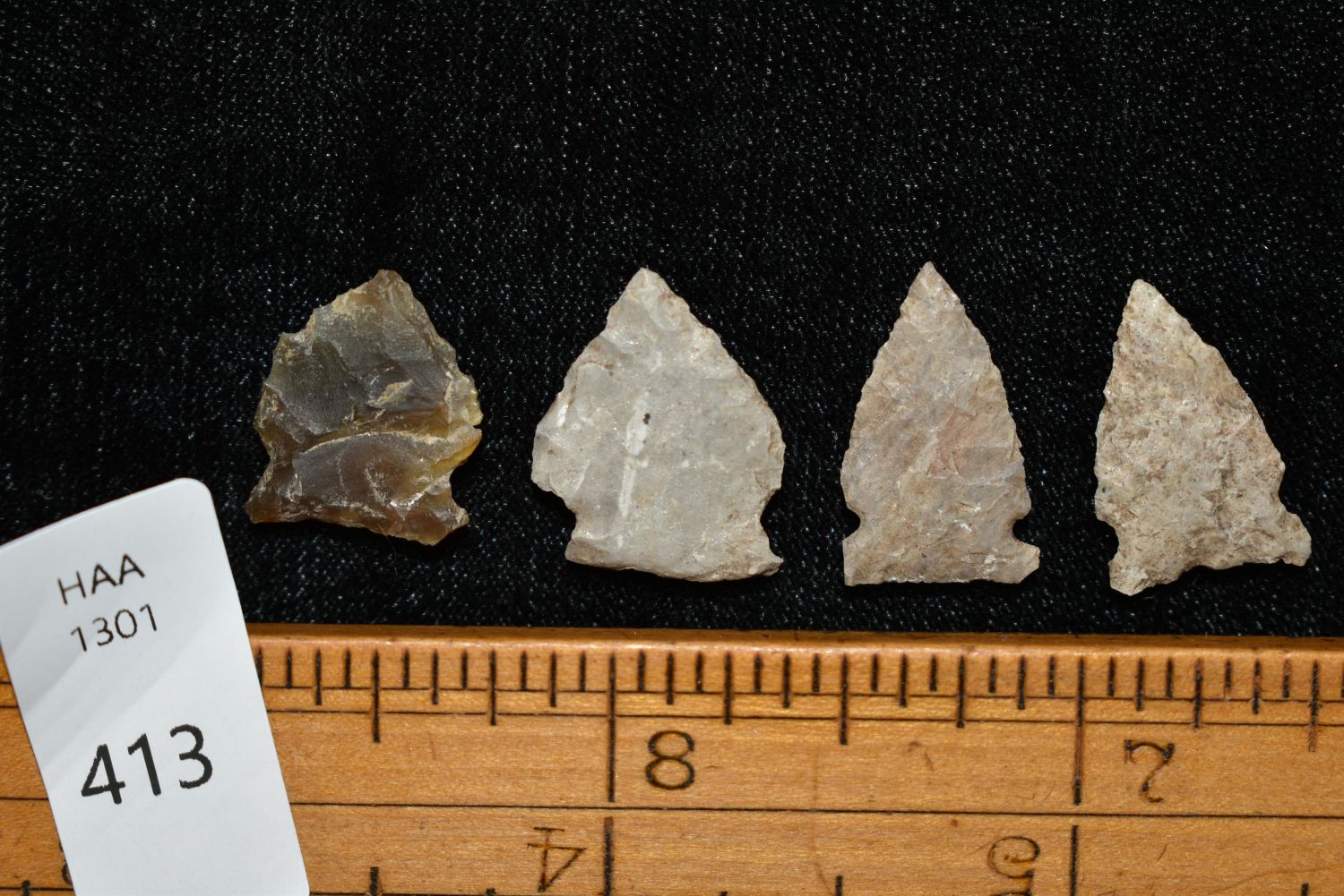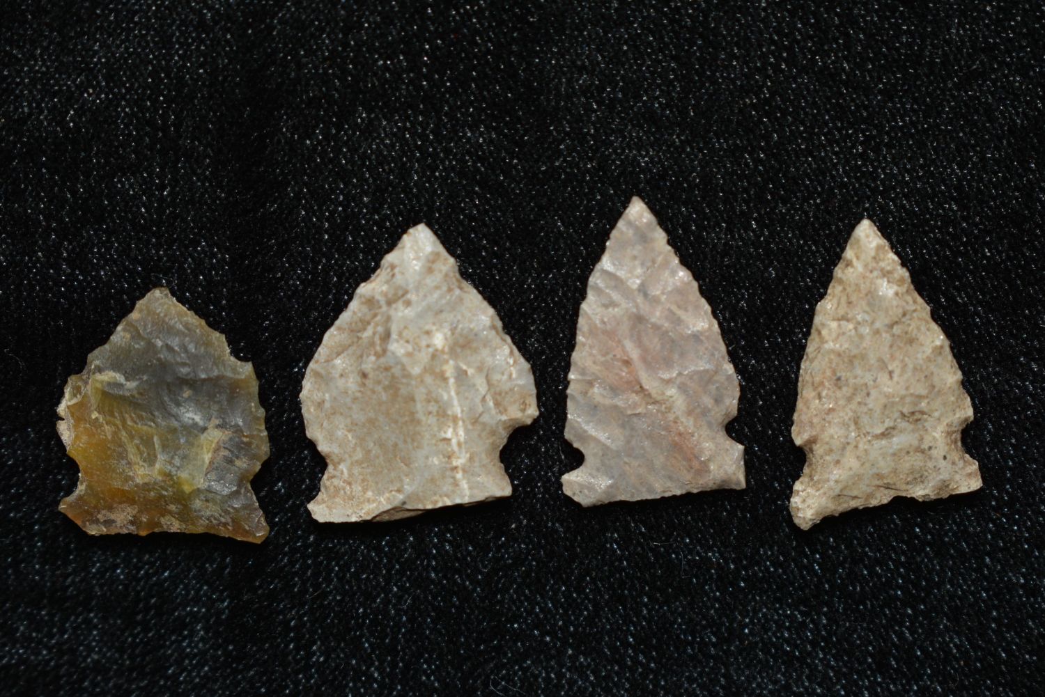 Lot of 4 Birdpoints, Musselshell, Montana where he found his first arrowhead at a very early age. This led Creel on a lifetime search for Montana’s prehistoric past. Creel owned a ranch in Musselshell and collected from sites and in and around the Musselshell River and tributaries. Every piece in Creel’s collection is personally found. He did not purchase pieces, nor did he accept pieces as gifts. He took pride in the fact he found every piece. He also made the cedar frames from cedar trees that were cut on his ranch. Many of the pieces were collected from the buffalo jumps which were plentiful nearby