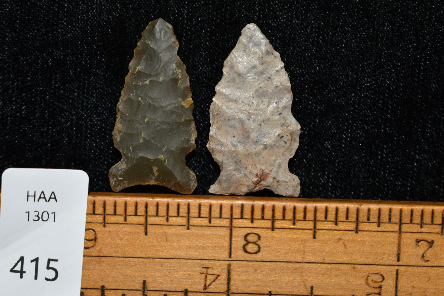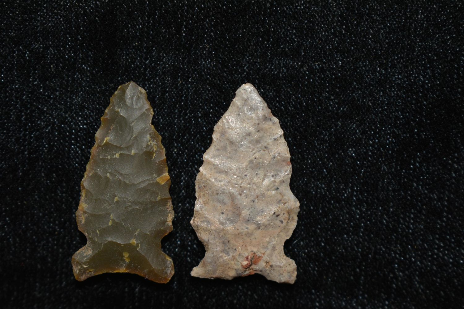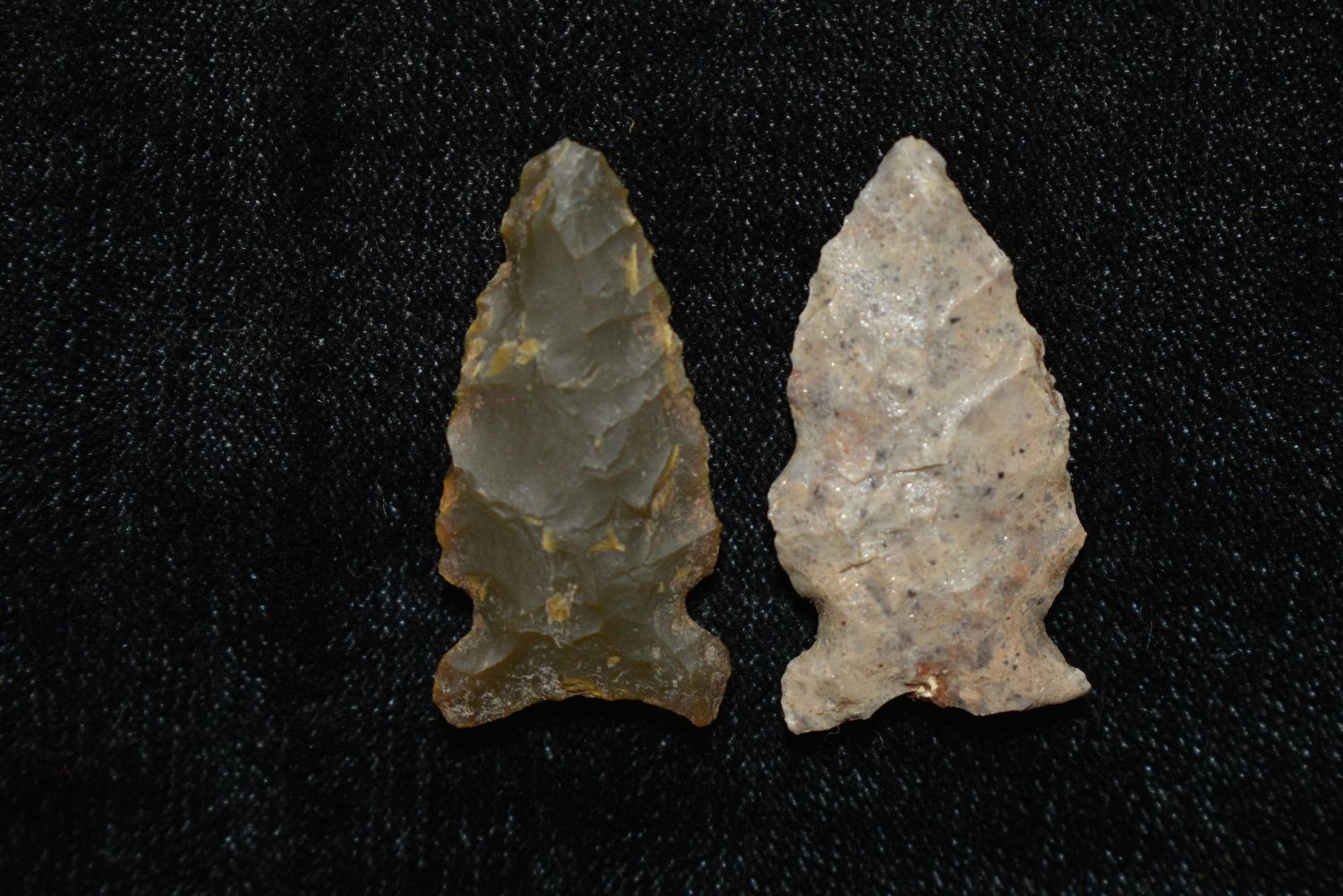 Lot of 2 Birdpoints, Musselshell, Montana where he found his first arrowhead at a very early age. This led Creel on a lifetime search for Montana’s prehistoric past. Creel owned a ranch in Musselshell and collected from sites and in and around the Musselshell River and tributaries. Every piece in Creel’s collection is personally found. He did not purchase pieces, nor did he accept pieces as gifts. He took pride in the fact he found every piece. He also made the cedar frames from cedar trees that were cut on his ranch. Many of the pieces were collected from the buffalo jumps which were plentiful nearby