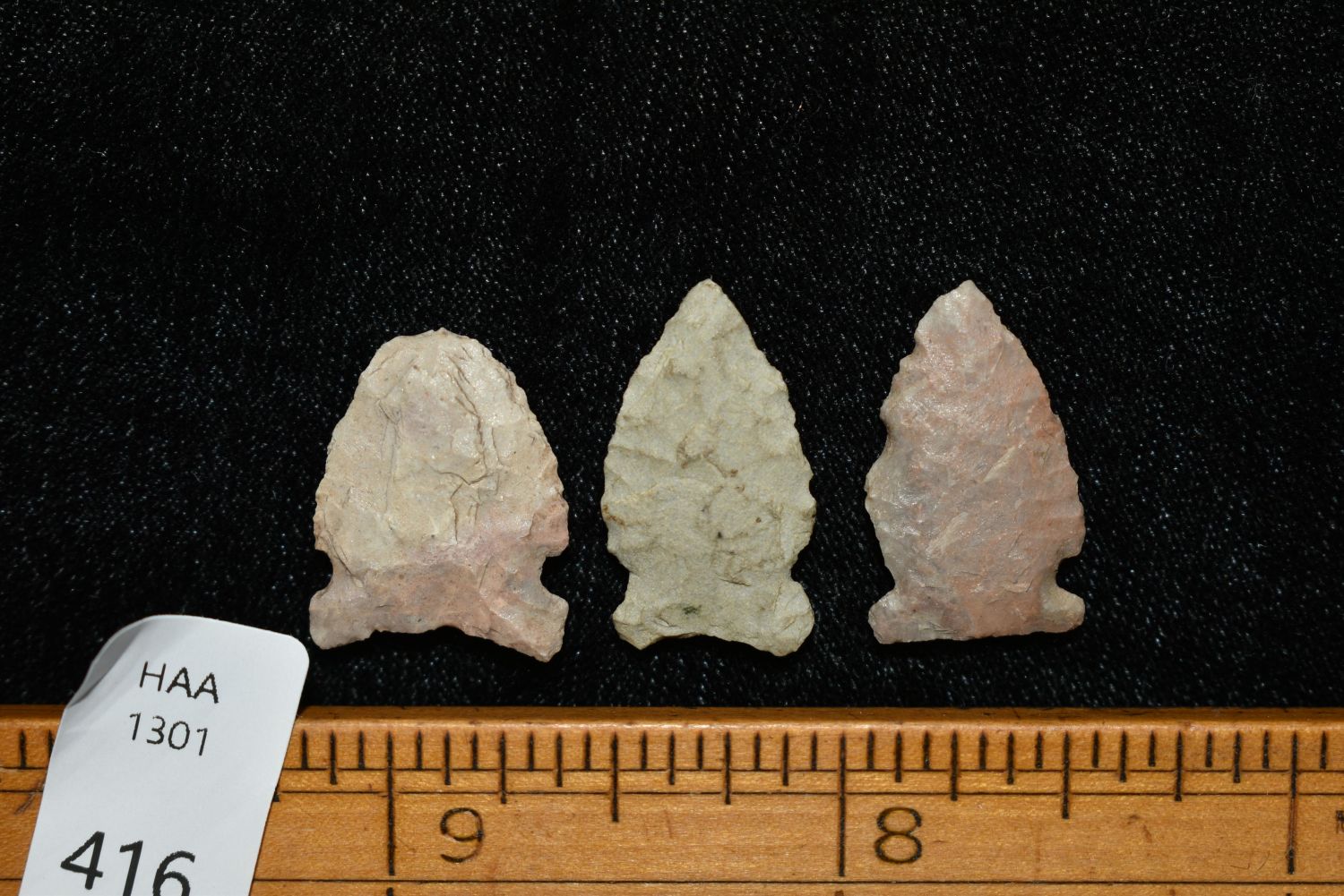 Lot of 3 Birdpoints, Musselshell, Montana where he found his first arrowhead at a very early age. This led Creel on a lifetime search for Montana’s prehistoric past. Creel owned a ranch in Musselshell and collected from sites and in and around the Musselshell River and tributaries. Every piece in Creel’s collection is personally found. He did not purchase pieces, nor did he accept pieces as gifts. He took pride in the fact he found every piece. He also made the cedar frames from cedar trees that were cut on his ranch. Many of the pieces were collected from the buffalo jumps which were plentiful nearby