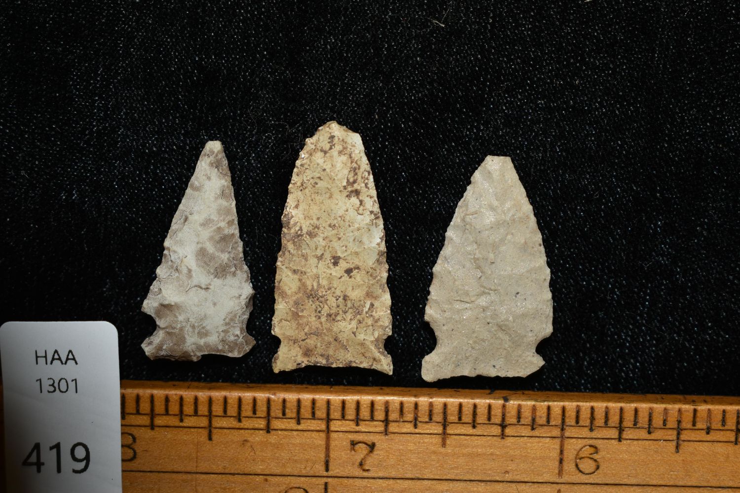 Lot of 3 Birdpoints, Musselshell, Montana where he found his first arrowhead at a very early age. This led Creel on a lifetime search for Montana’s prehistoric past. Creel owned a ranch in Musselshell and collected from sites and in and around the Musselshell River and tributaries. Every piece in Creel’s collection is personally found. He did not purchase pieces, nor did he accept pieces as gifts. He took pride in the fact he found every piece. He also made the cedar frames from cedar trees that were cut on his ranch. Many of the pieces were collected from the buffalo jumps which were plentiful nearby
