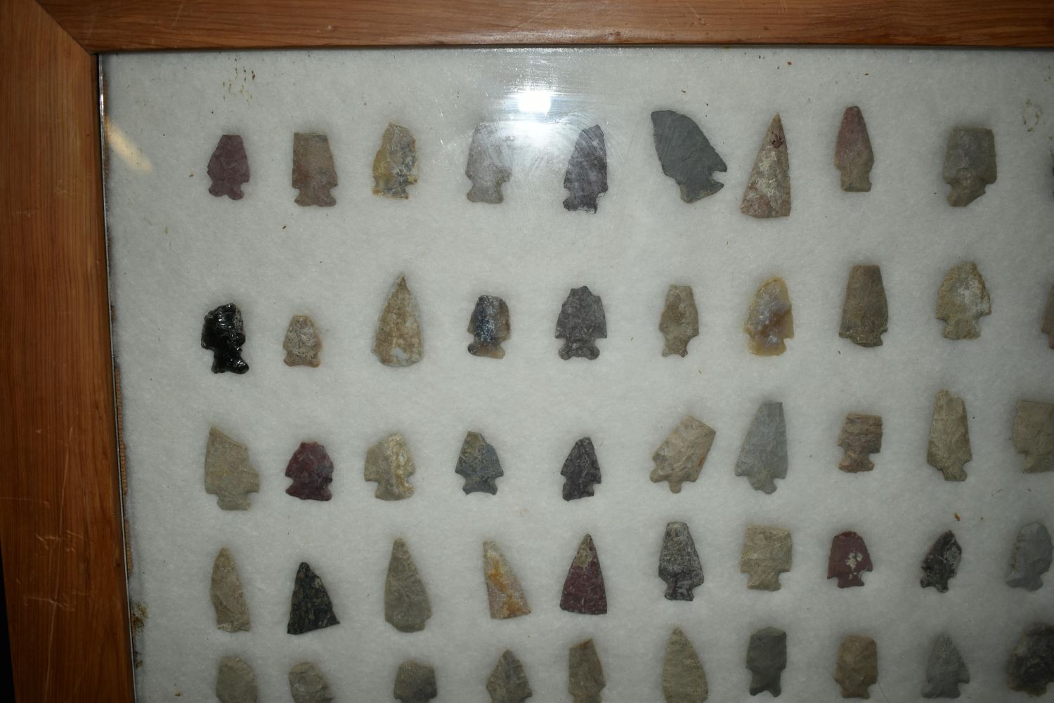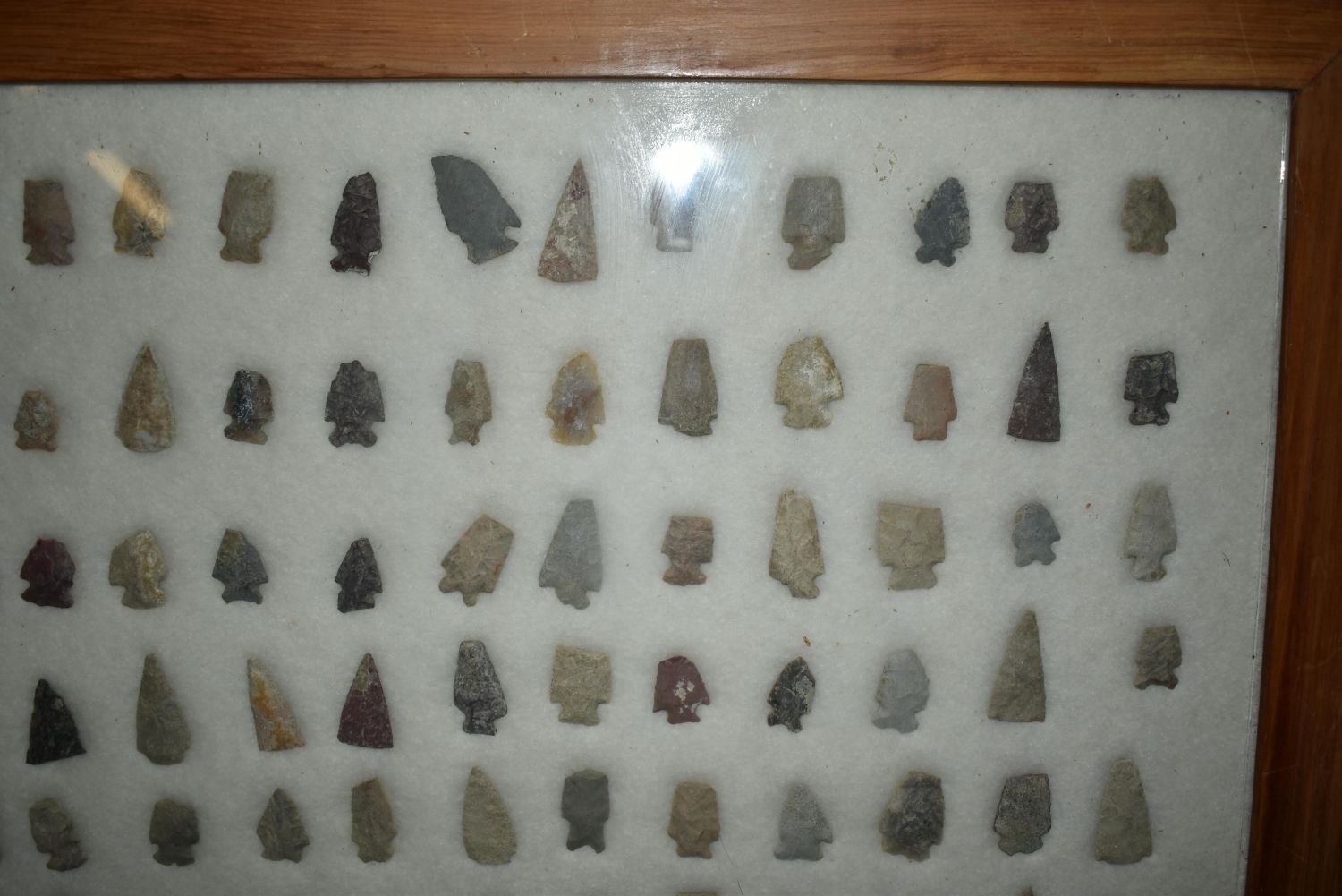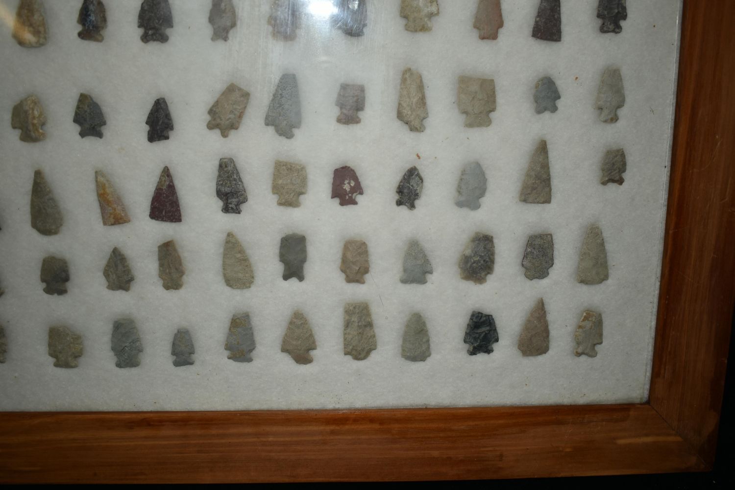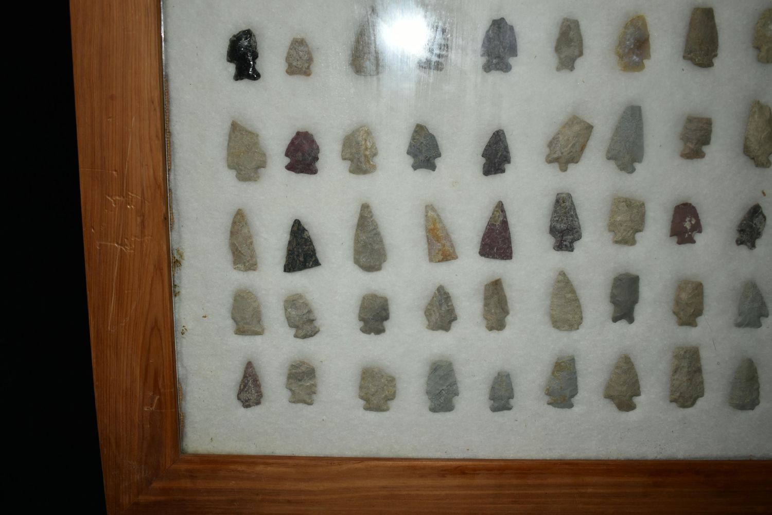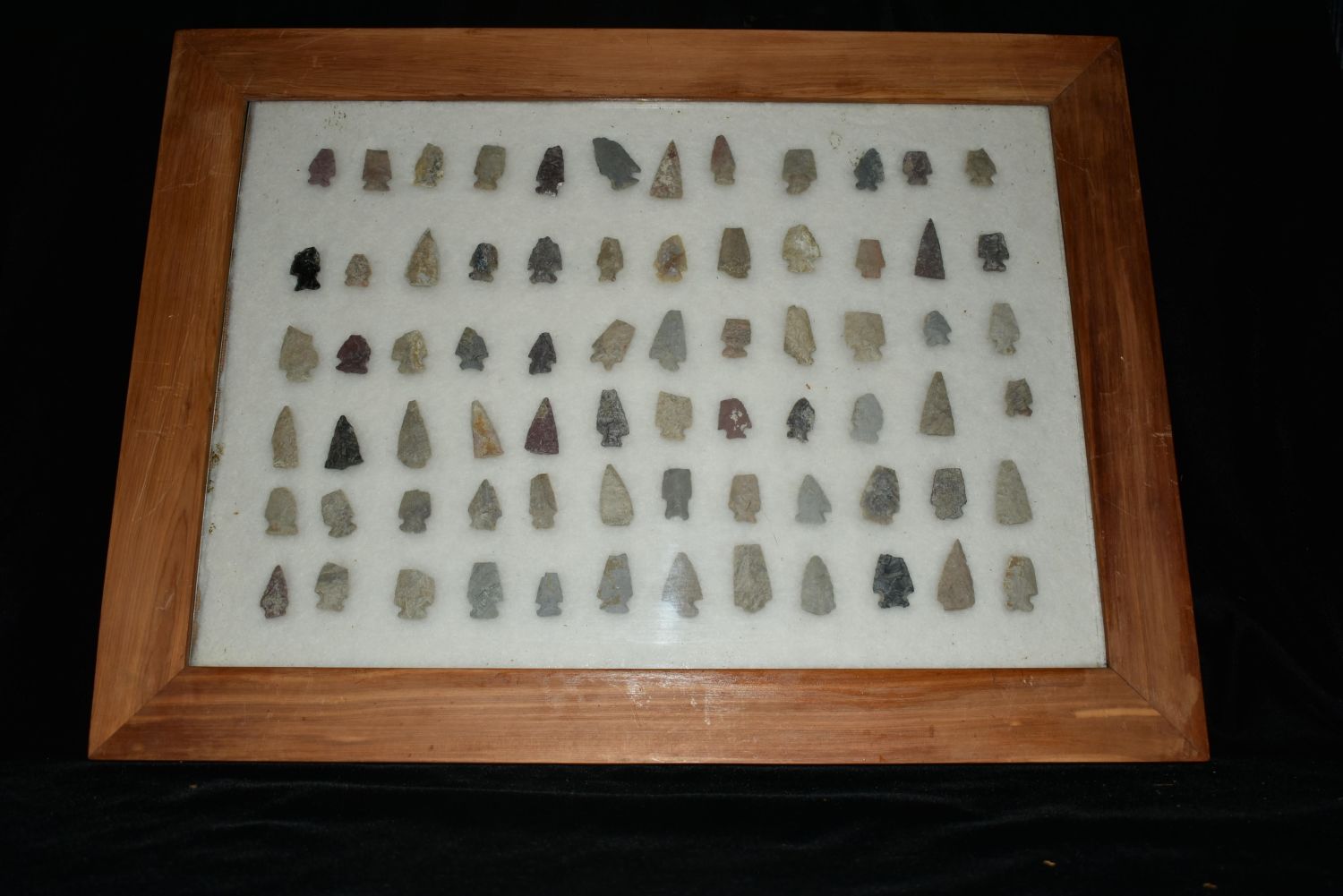 24 1/4" x 18 1/8" Cedar Frame contains Approx. 73 Arrowheads, Musselshell, Montana where he found his first arrowhead at a very early age. This led Creel on a lifetime search for Montana’s prehistoric past. Creel owned a ranch in Musselshell and collected from sites and in and around the Musselshell River and tributaries. Every piece in Creel’s collection is personally found. He did not purchase pieces, nor did he accept pieces as gifts. He took pride in the fact he found every piece. He also made the cedar frames from cedar trees that were cut on his ranch. Many of the pieces were collected from the buffalo jumps which were plentiful nearby