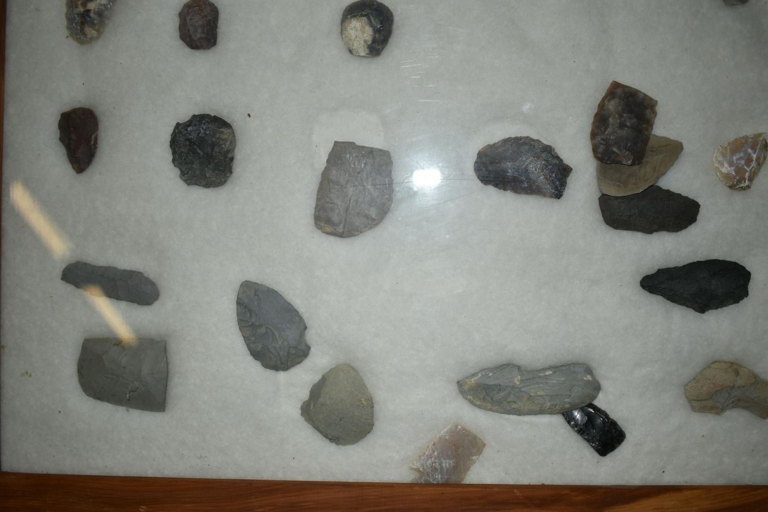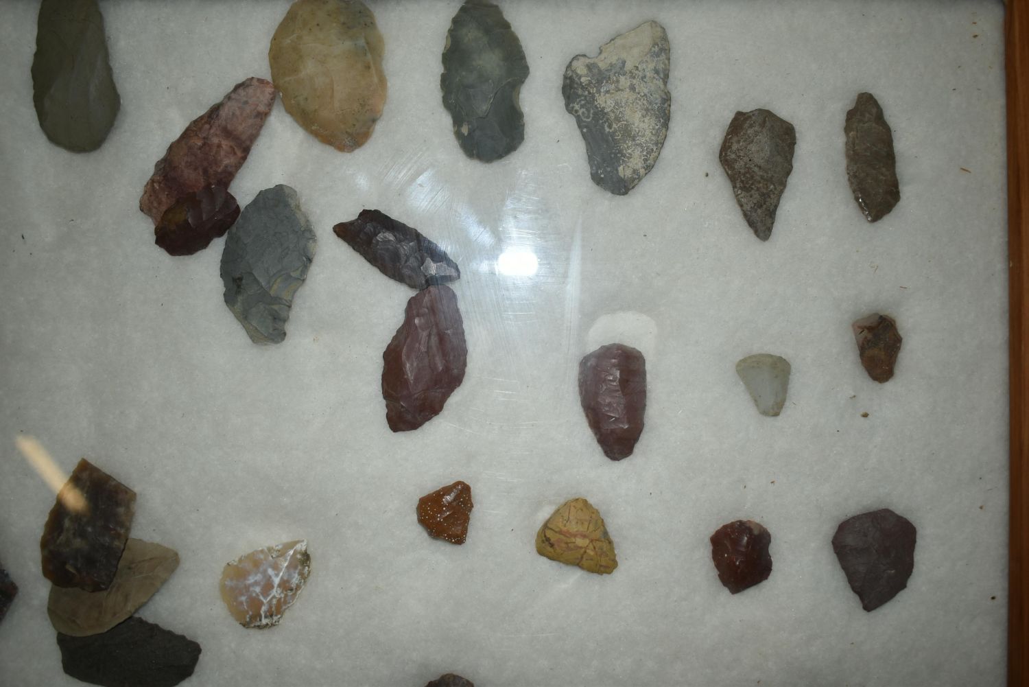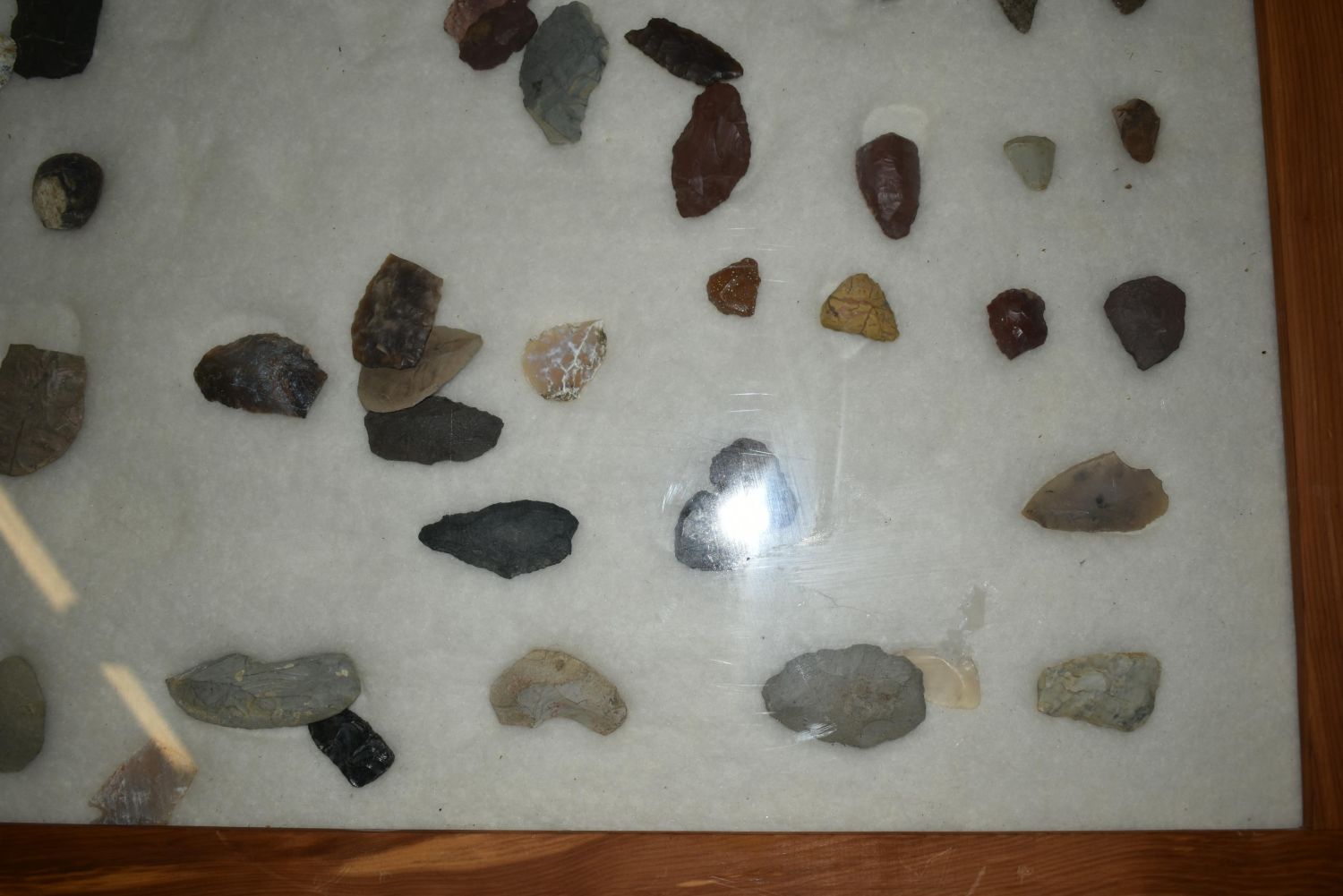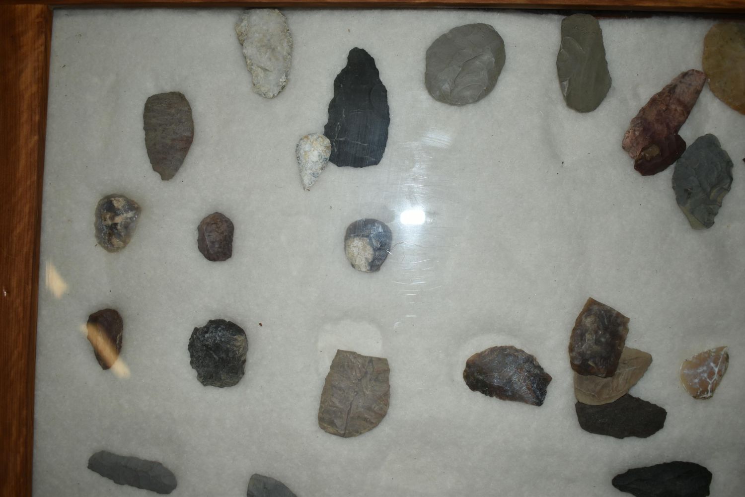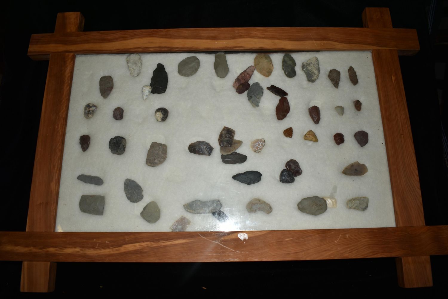32" x 22" Frame, Contains Approx. 51 Scrapers/Blades, Musselshell, Montana where he found his first arrowhead at a very early age. This led Creel on a lifetime search for Montana’s prehistoric past. Creel owned a ranch in Musselshell and collected from sites and in and around the Musselshell River and tributaries. Every piece in Creel’s collection is personally found. He did not purchase pieces, nor did he accept pieces as gifts. He took pride in the fact he found every piece. He also made the cedar frames from cedar trees that were cut on his ranch. Many of the pieces were collected from the buffalo jumps which were plentiful nearby