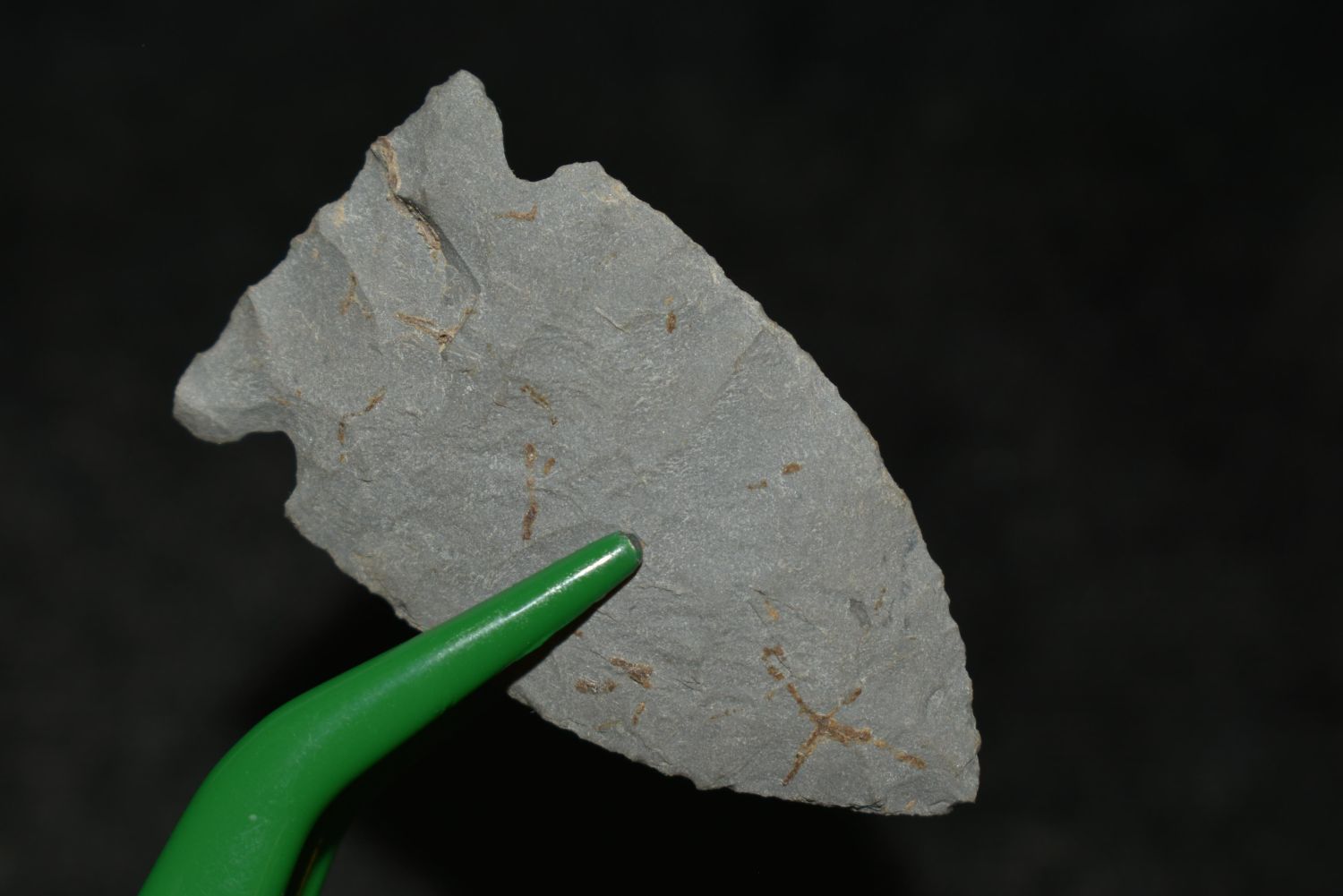 1 1/2" Samantha Dart, Musselshell, MT, Creel Poore was born and raised in Musselshell, Montana where he found his first arrowhead at a very early age. This led Creel on a lifetime search for Montana’s prehistoric past. Creel owned a ranch in Musselshell and collected from sites and in and around the Musselshell River and tributaries. Every piece in Creel’s collection is personally found. He did not purchase pieces, nor did he accept pieces as gifts. He took pride in the fact he found every piece. He also made the cedar frames from cedar trees that were cut on his ranch. Many of the pieces were collected from the buffalo jumps which were plentiful nearby