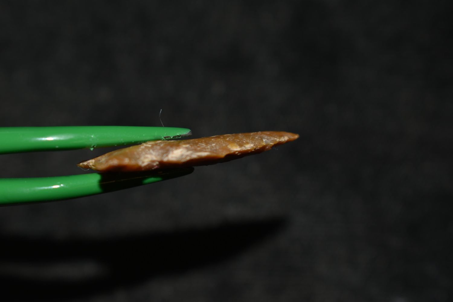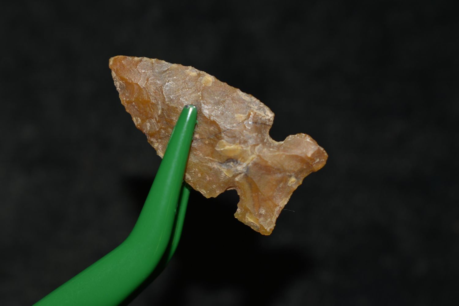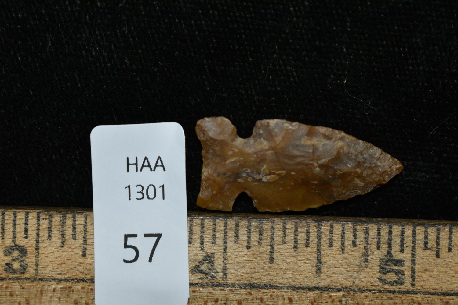 1 1/8" Cut Bank Jaw Notched, Musselshell, MT, Creel Poore was born and raised in Musselshell, Montana where he found his first arrowhead at a very early age. This led Creel on a lifetime search for Montana’s prehistoric past. Creel owned a ranch in Musselshell and collected from sites and in and around the Musselshell River and tributaries. Every piece in Creel’s collection is personally found. He did not purchase pieces, nor did he accept pieces as gifts. He took pride in the fact he found every piece. He also made the cedar frames from cedar trees that were cut on his ranch. Many of the pieces were collected from the buffalo jumps which were plentiful nearby