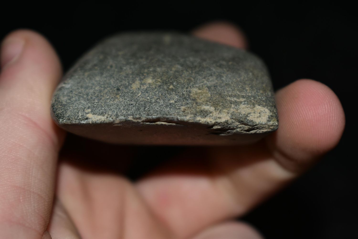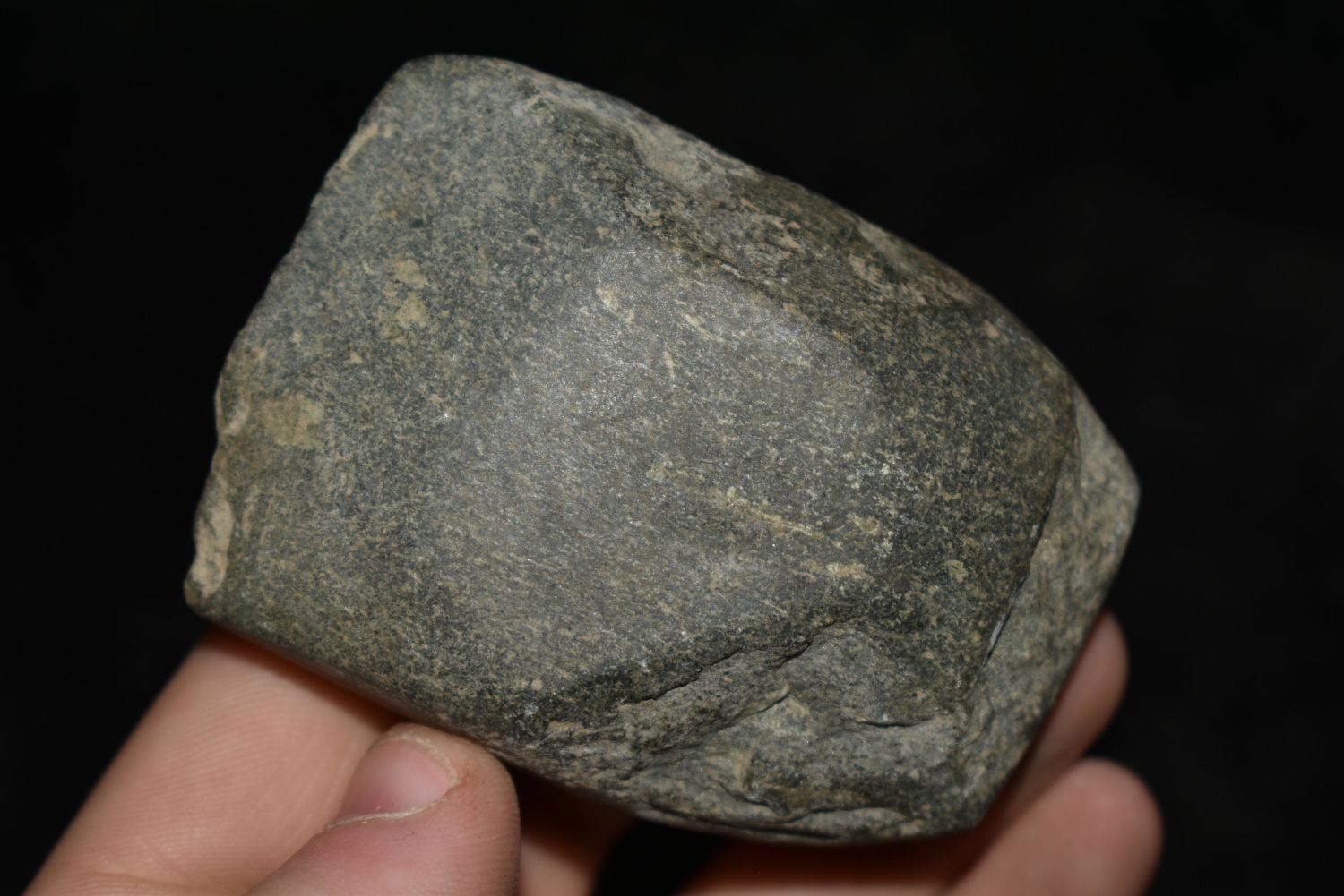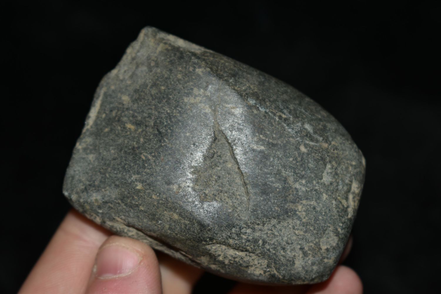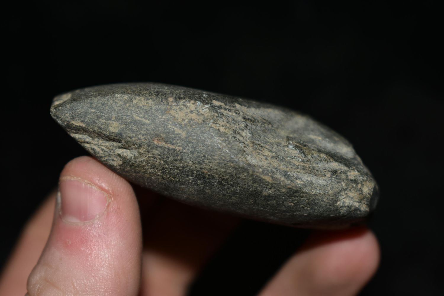 2 3/4" Celt, Musselshell, MT, Creel Poore was born and raised in Musselshell, Montana where he found his first arrowhead at a very early age. This led Creel on a lifetime search for Montana’s prehistoric past. Creel owned a ranch in Musselshell and collected from sites and in and around the Musselshell River and tributaries. Every piece in Creel’s collection is personally found. He did not purchase pieces, nor did he accept pieces as gifts. He took pride in the fact he found every piece. He also made the cedar frames from cedar trees that were cut on his ranch. Many of the pieces were collected from the buffalo jumps which were plentiful nearby