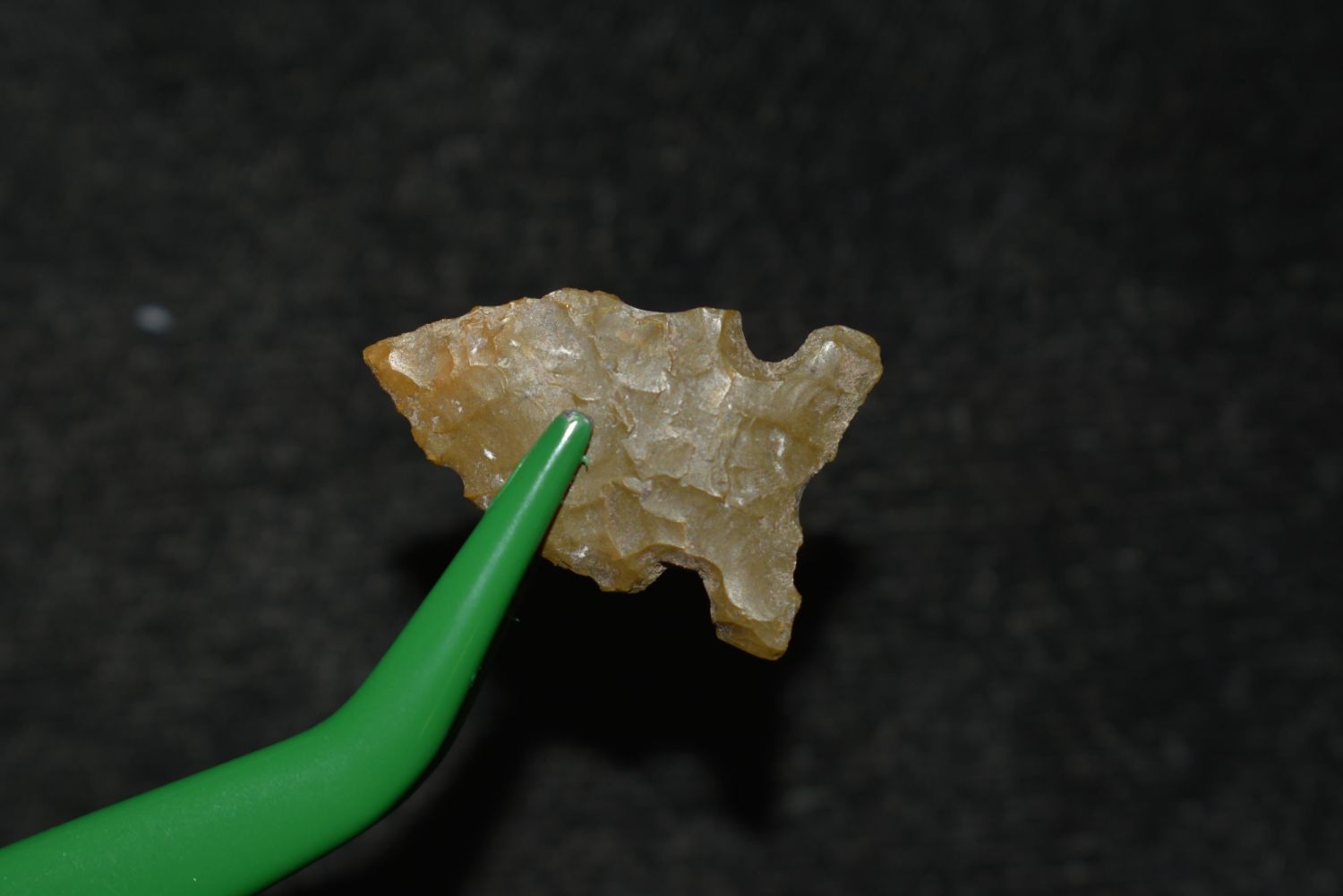7/8" Avonlea, Musselshell, MT, Creel Poore was born and raised in Musselshell, Montana where he found his first arrowhead at a very early age. This led Creel on a lifetime search for Montana’s prehistoric past. Creel owned a ranch in Musselshell and collected from sites and in and around the Musselshell River and tributaries. Every piece in Creel’s collection is personally found. He did not purchase pieces, nor did he accept pieces as gifts. He took pride in the fact he found every piece. He also made the cedar frames from cedar trees that were cut on his ranch. Many of the pieces were collected from the buffalo jumps which were plentiful nearby