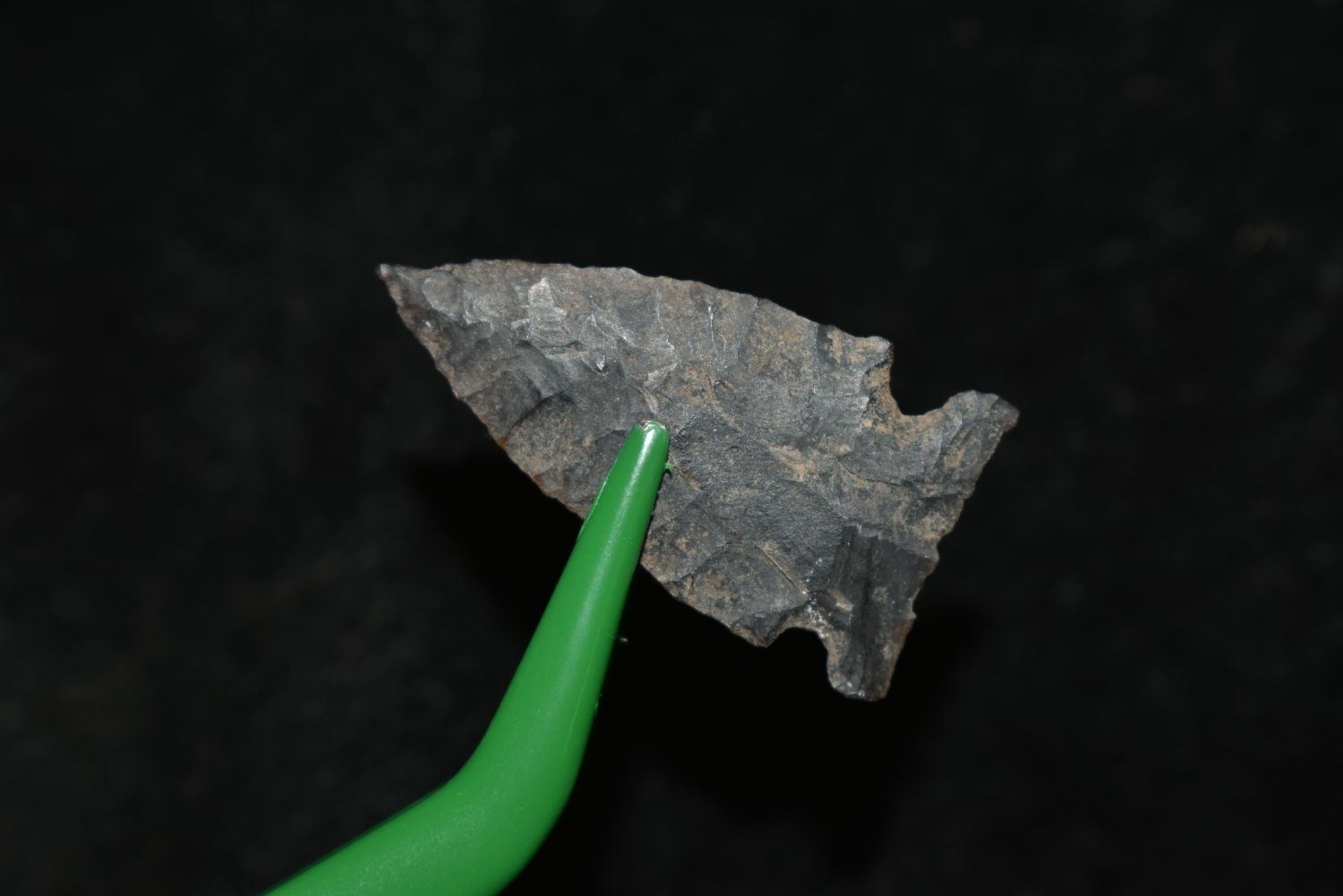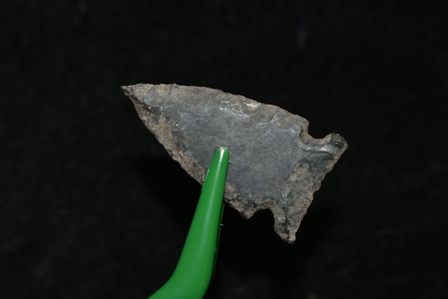 1 1/8" Avonlea, Musselshell, MT, Creel Poore was born and raised in Musselshell, Montana where he found his first arrowhead at a very early age. This led Creel on a lifetime search for Montana’s prehistoric past. Creel owned a ranch in Musselshell and collected from sites and in and around the Musselshell River and tributaries. Every piece in Creel’s collection is personally found. He did not purchase pieces, nor did he accept pieces as gifts. He took pride in the fact he found every piece. He also made the cedar frames from cedar trees that were cut on his ranch. Many of the pieces were collected from the buffalo jumps which were plentiful nearby