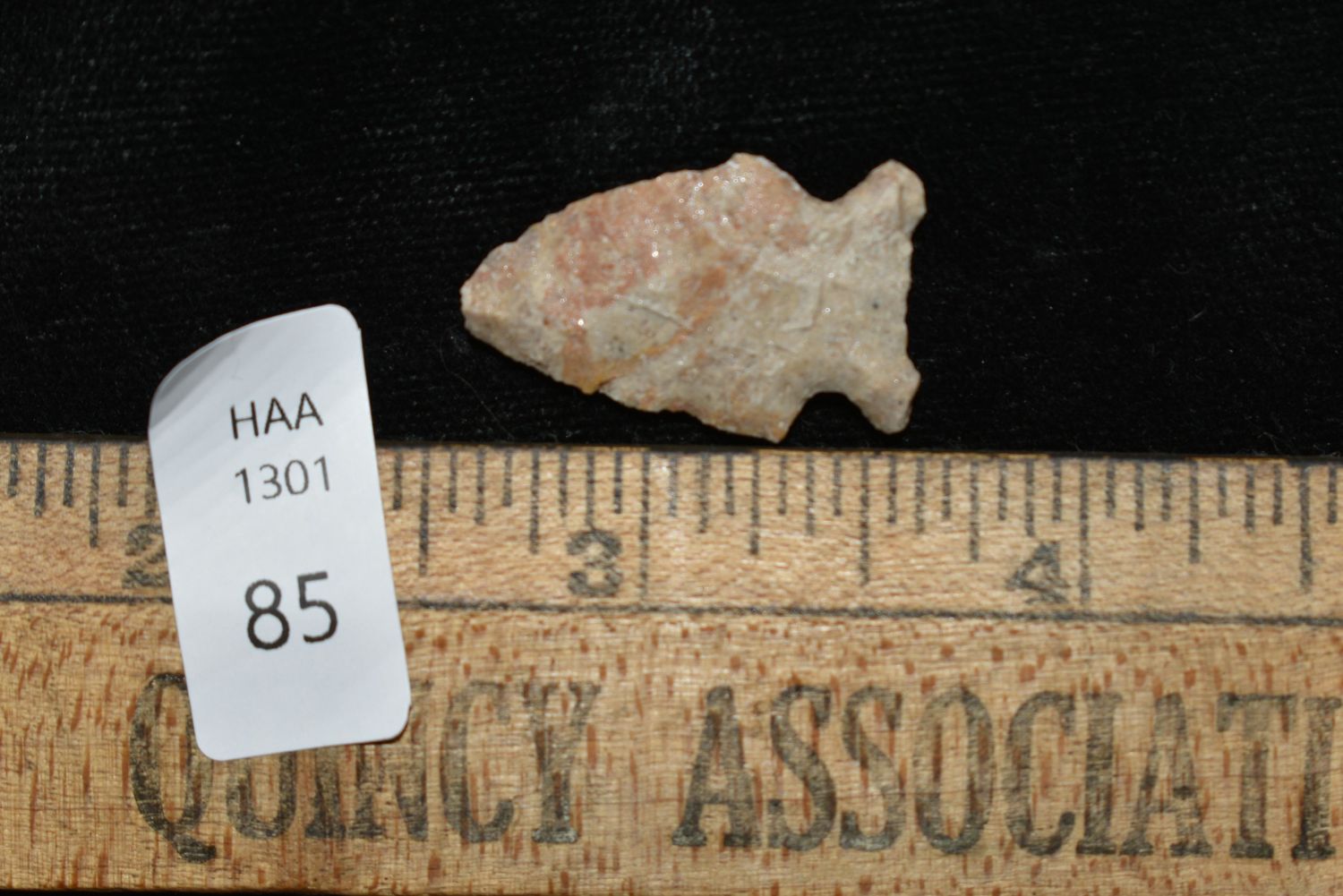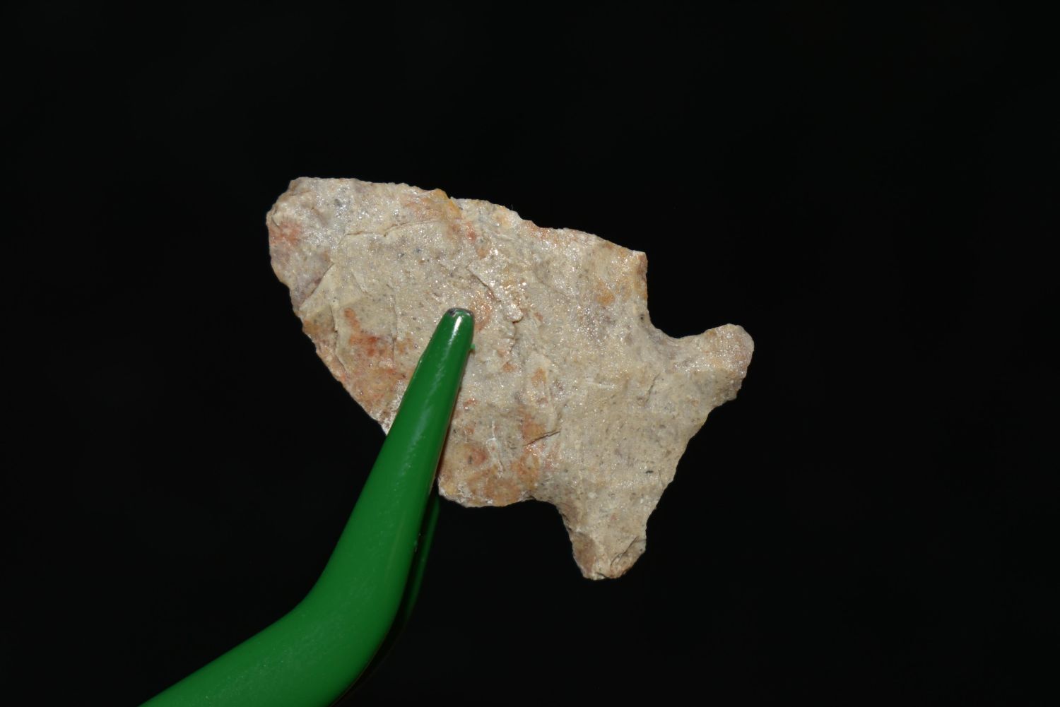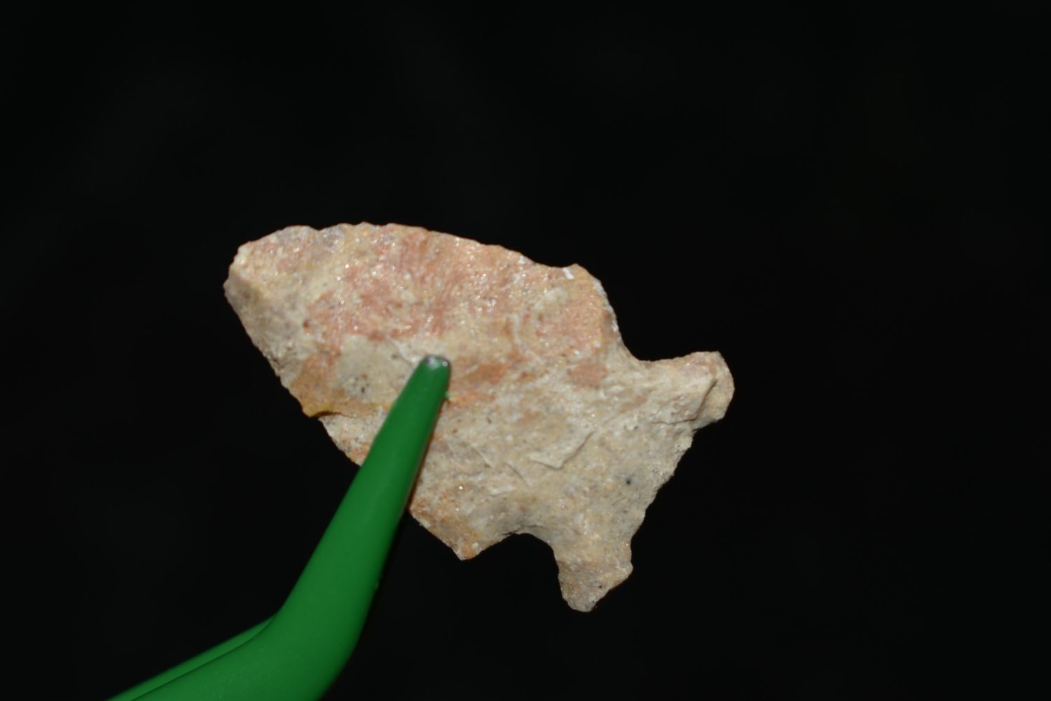 1 1/16" Irvine, Musselshell, MT, Creel Poore was born and raised in Musselshell, Montana where he found his first arrowhead at a very early age. This led Creel on a lifetime search for Montana’s prehistoric past. Creel owned a ranch in Musselshell and collected from sites and in and around the Musselshell River and tributaries. Every piece in Creel’s collection is personally found. He did not purchase pieces, nor did he accept pieces as gifts. He took pride in the fact he found every piece. He also made the cedar frames from cedar trees that were cut on his ranch. Many of the pieces were collected from the buffalo jumps which were plentiful nearby