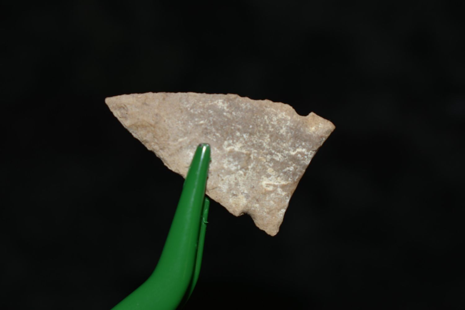 1 1/16" Avonlea, Musselshell, MT, Creel Poore was born and raised in Musselshell, Montana where he found his first arrowhead at a very early age. This led Creel on a lifetime search for Montana’s prehistoric past. Creel owned a ranch in Musselshell and collected from sites and in and around the Musselshell River and tributaries. Every piece in Creel’s collection is personally found. He did not purchase pieces, nor did he accept pieces as gifts. He took pride in the fact he found every piece. He also made the cedar frames from cedar trees that were cut on his ranch. Many of the pieces were collected from the buffalo jumps which were plentiful nearby