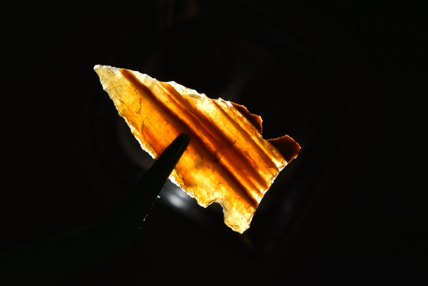 1 1/8" Highly Translucent, Avonlea, Petrified Wood, Musselshell, MT, Creel Poore was born and raised in Musselshell, Montana where he found his first arrowhead at a very early age. This led Creel on a lifetime search for Montana’s prehistoric past. Creel owned a ranch in Musselshell and collected from sites and in and around the Musselshell River and tributaries. Every piece in Creel’s collection is personally found. He did not purchase pieces, nor did he accept pieces as gifts. He took pride in the fact he found every piece. He also made the cedar frames from cedar trees that were cut on his ranch. Many of the pieces were collected from the buffalo jumps which were plentiful nearby