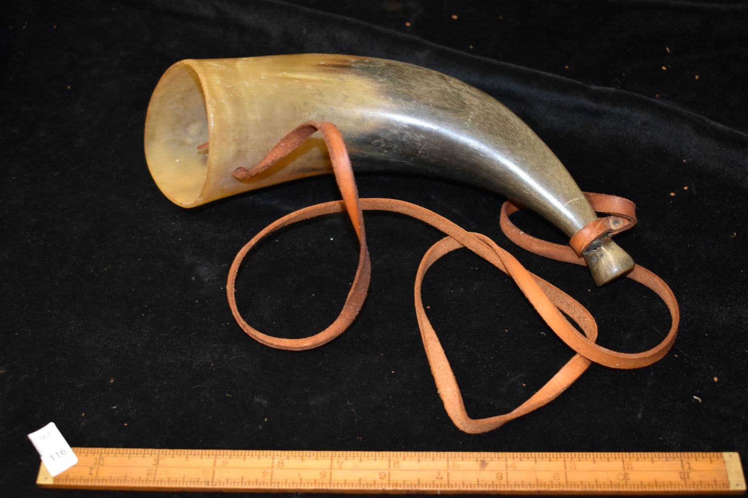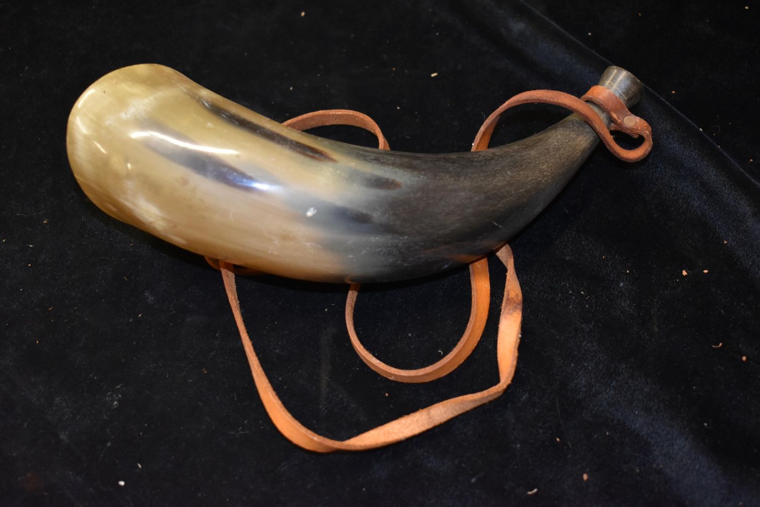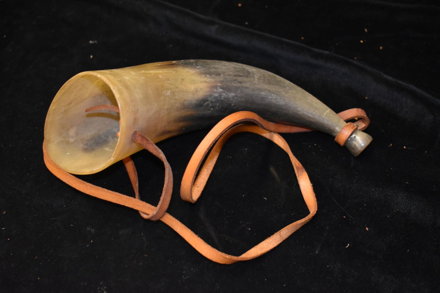 9" Powderhorn With Strap/ Good Condition, Vintage/Antiques
