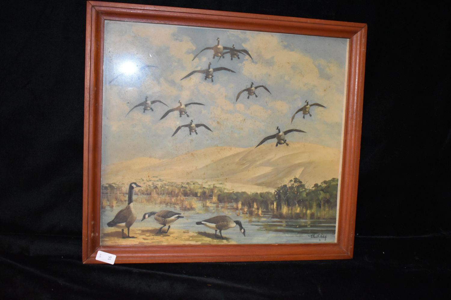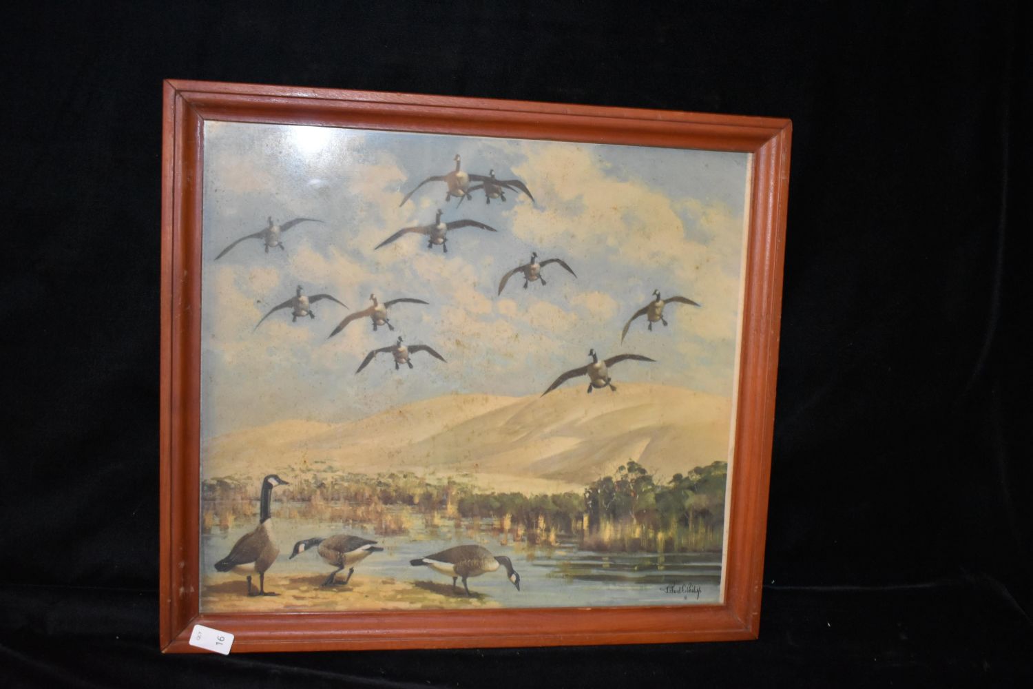 14x 15 1/2" Framed Vintage Print of Geese by Richard E. Bishop, Antiques
