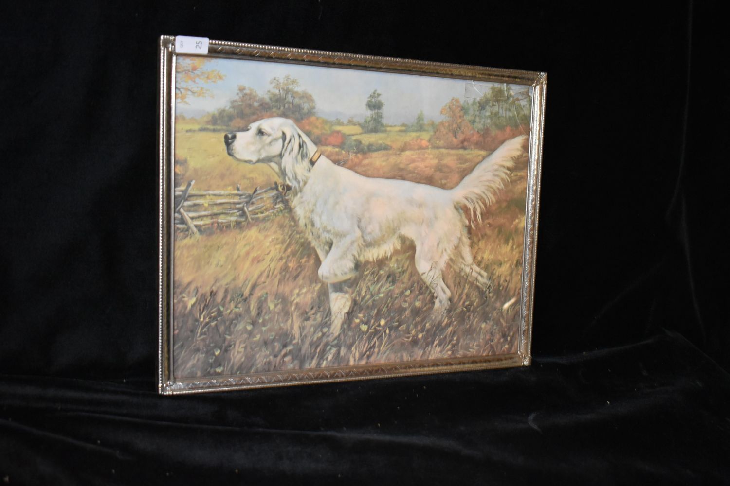 11×14" Vintage Framed Print of White Irish Setter by Count Gladstone IV, Antiques