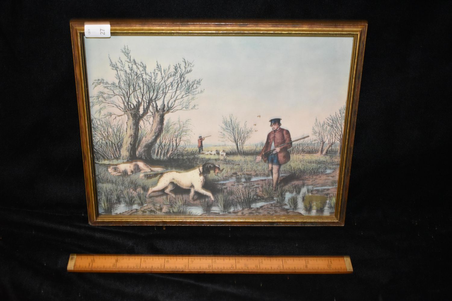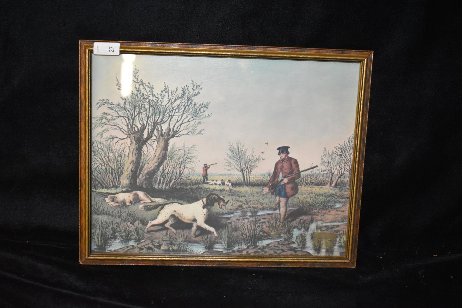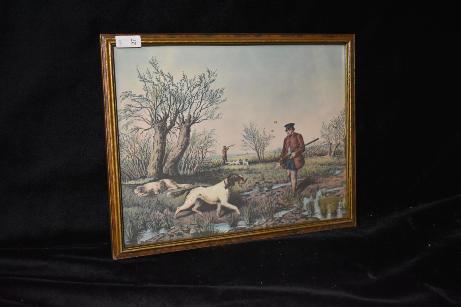 9×11" Framed Vintage Print of Hunting Irish Setters, Antiques