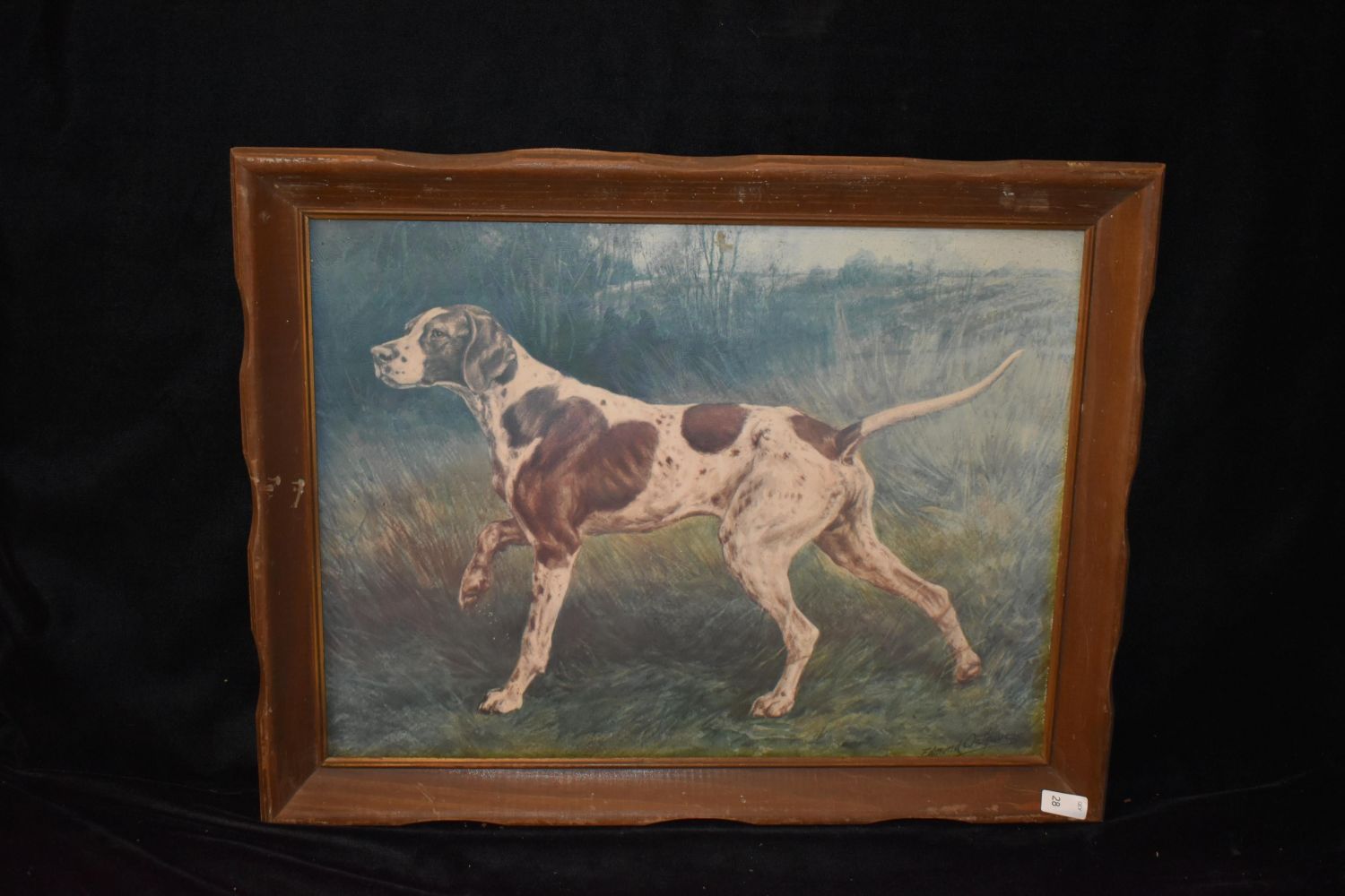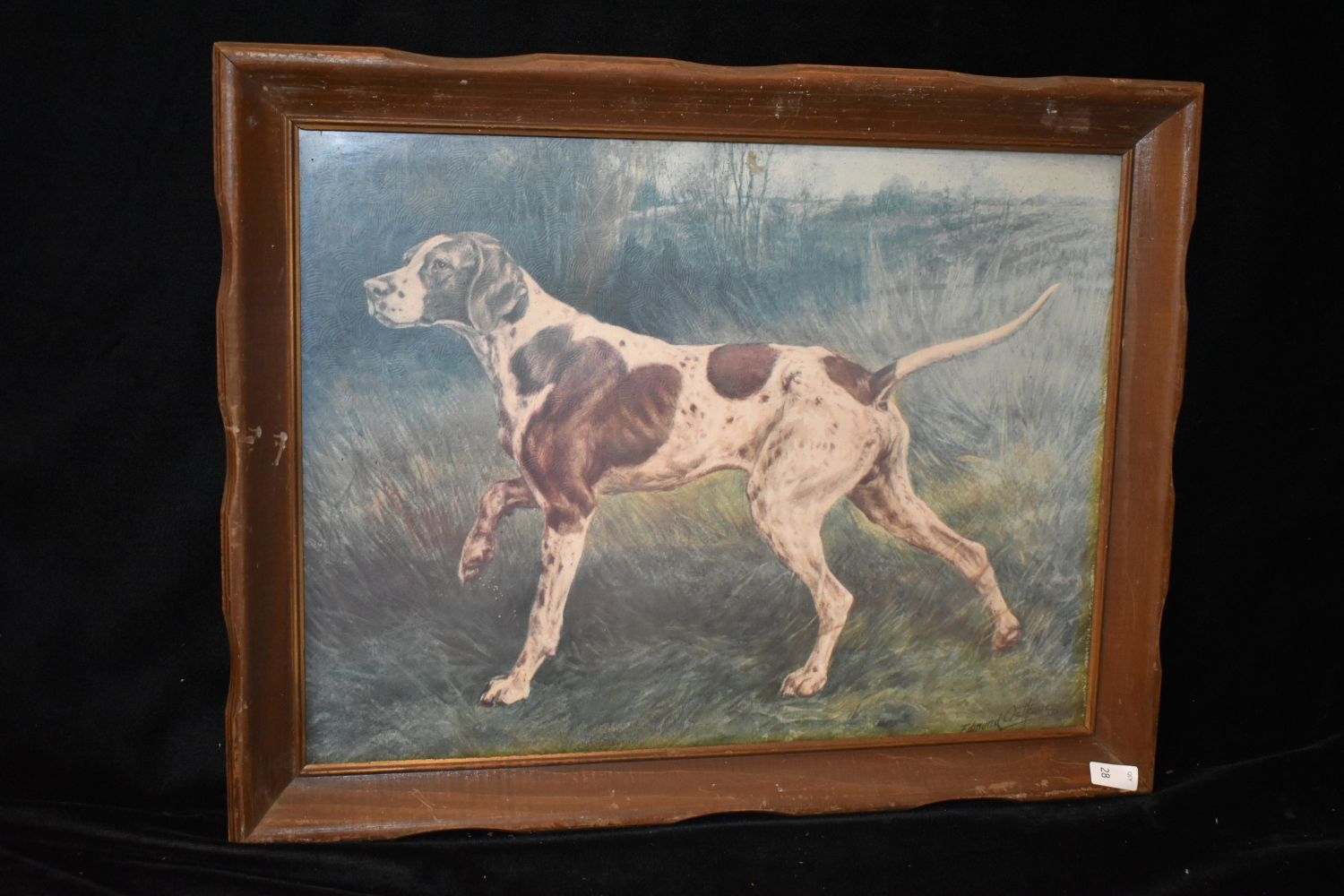 14×18" Vintage Framed Print of English Pointer by Edmund Osttaus, Antiques