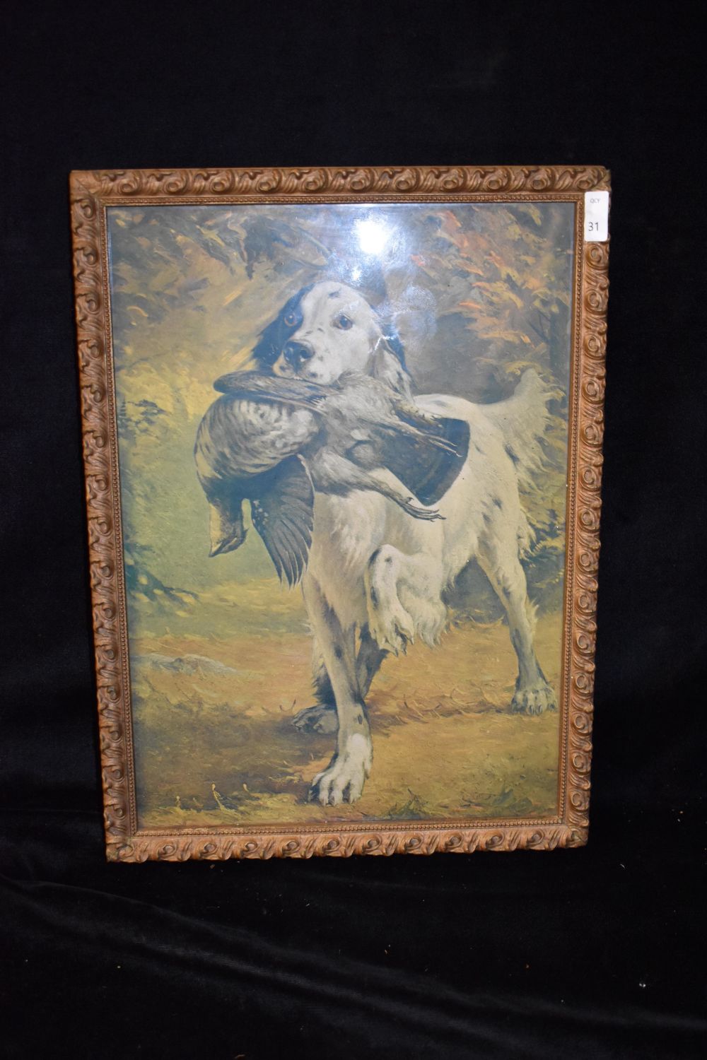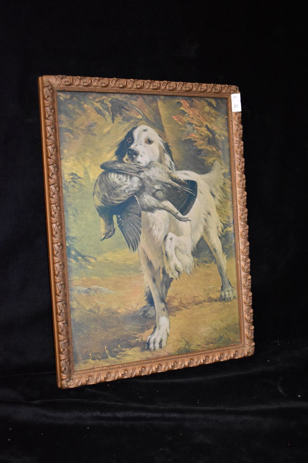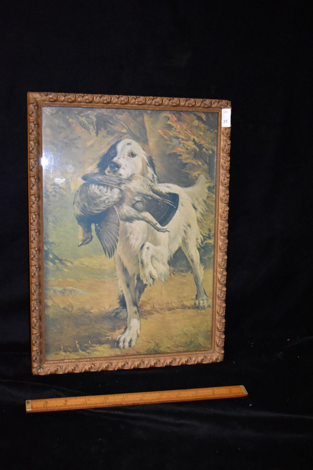 11×15" Framed Vintage Print of English Setter with Bird, Antiques