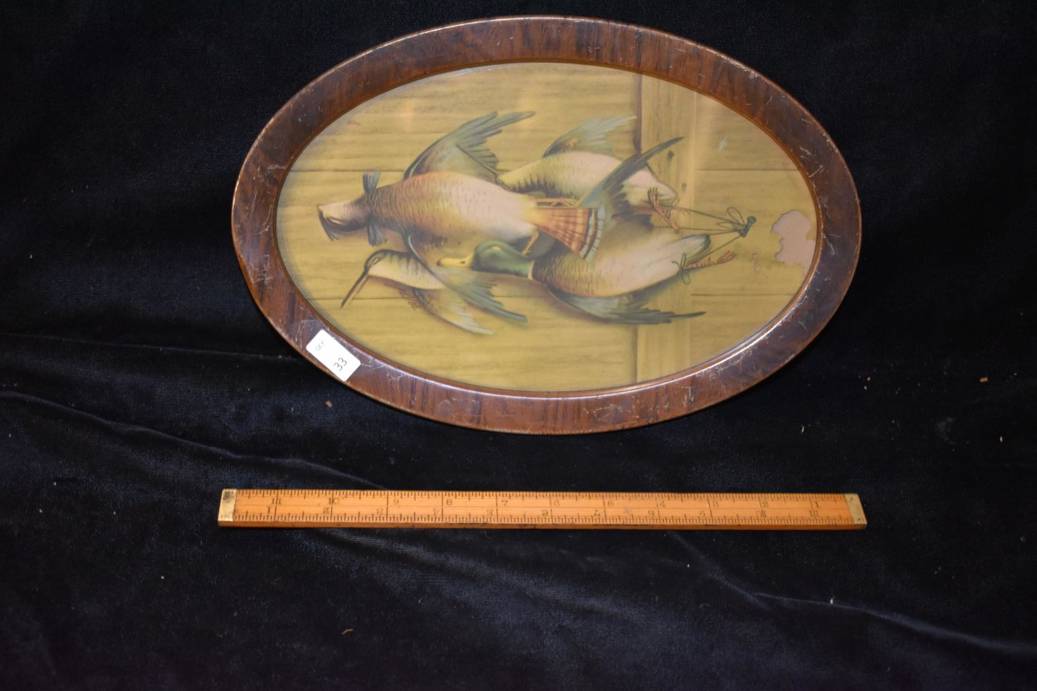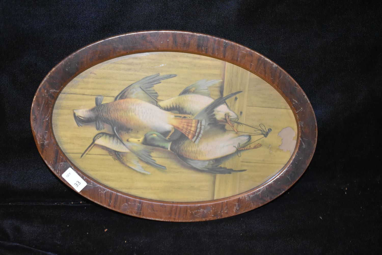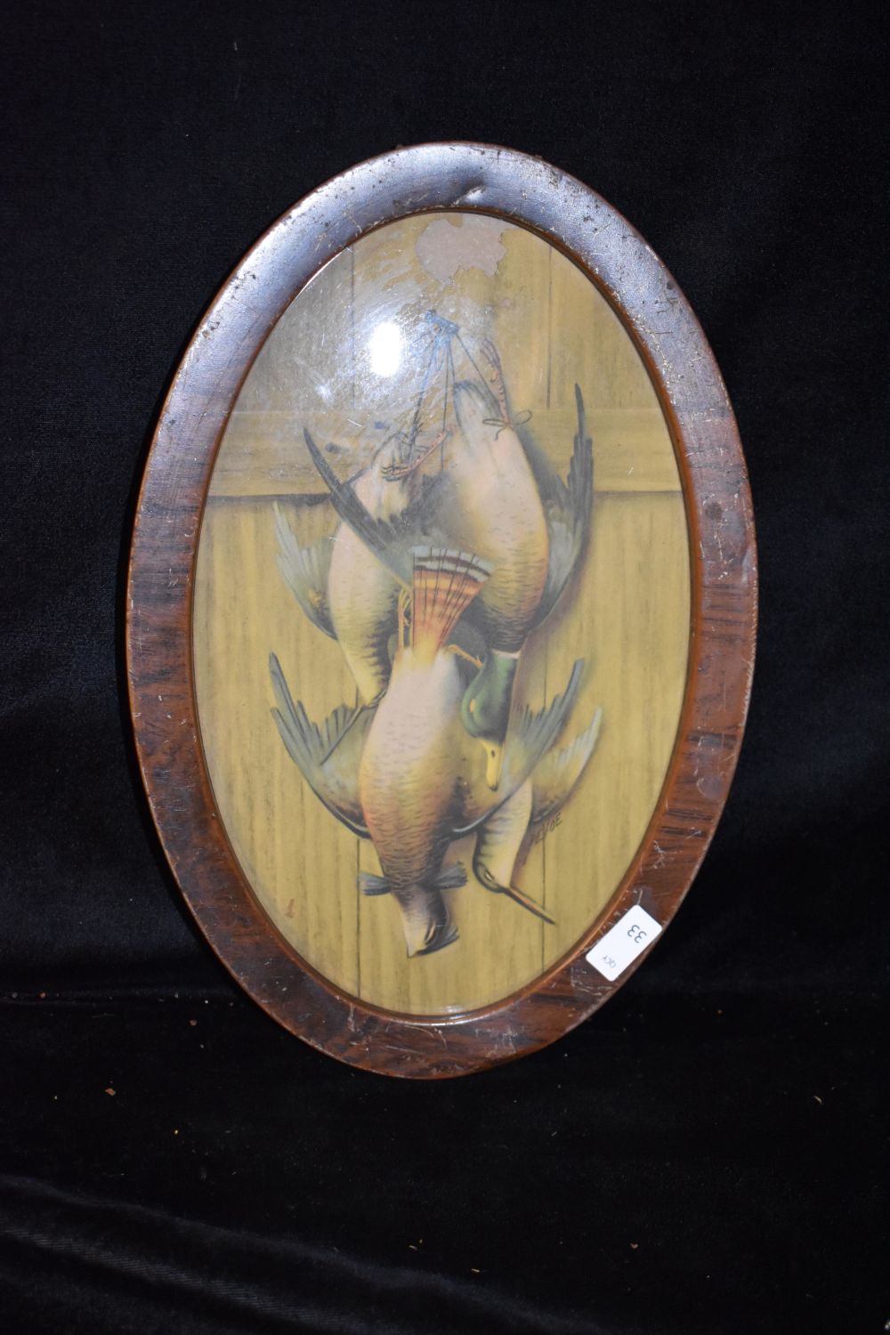8×12" Oval Framed Vintage Print of Hanging Fowl by Pevoe, Antiques