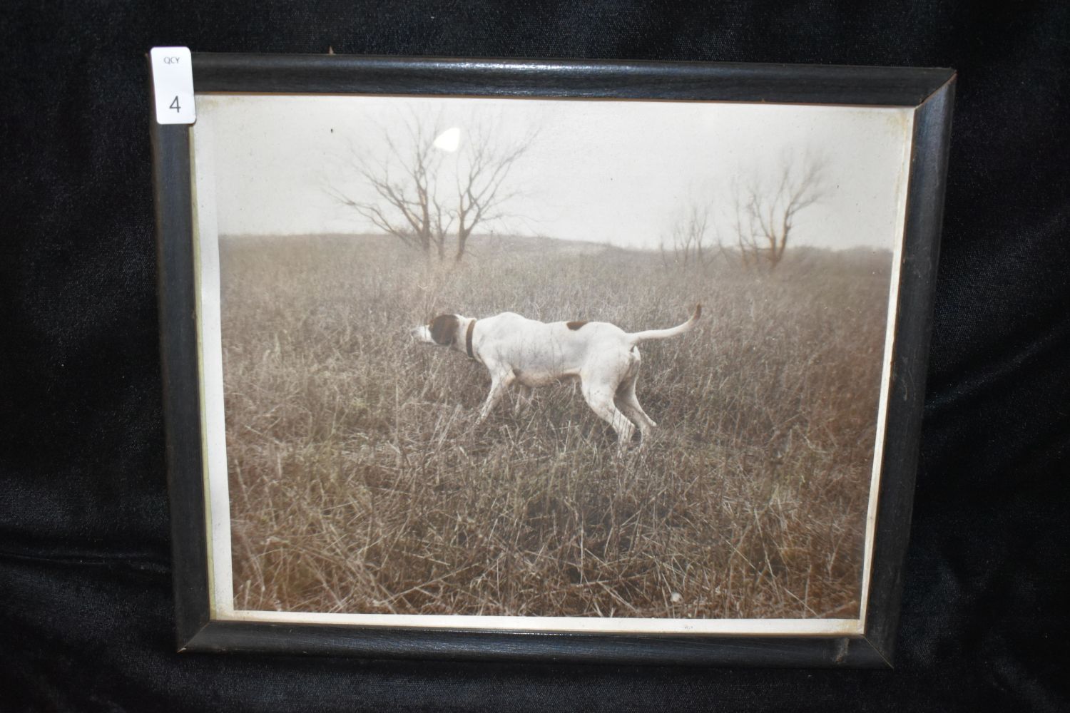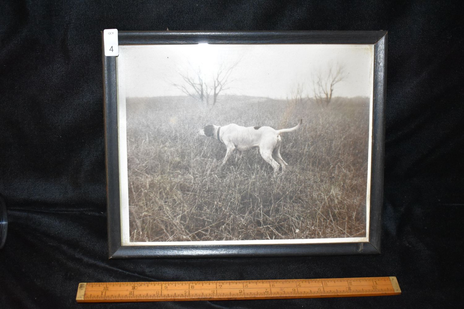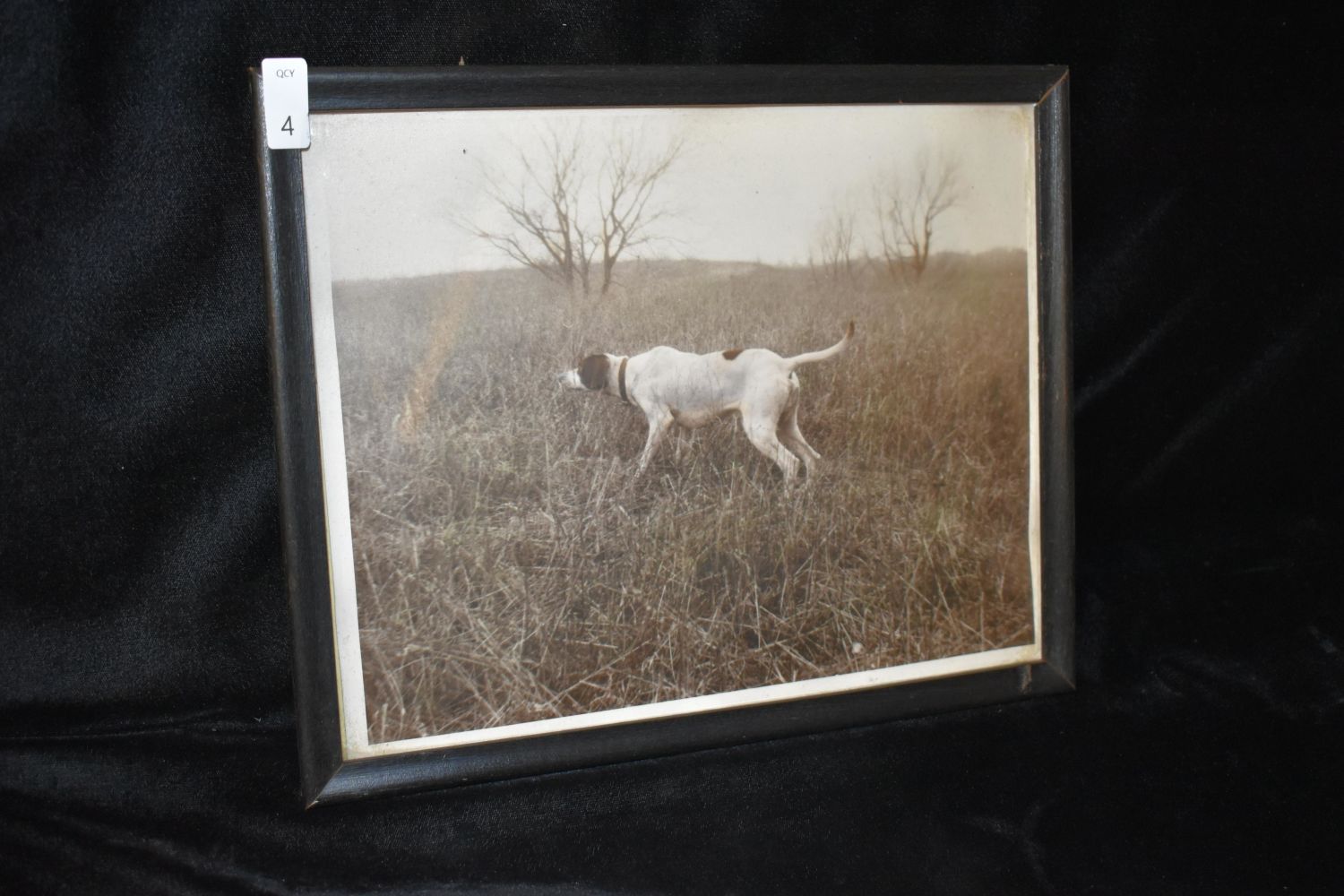 9×11" Framed Vintage Black and White Photo of English Pointer Dog, Antiques