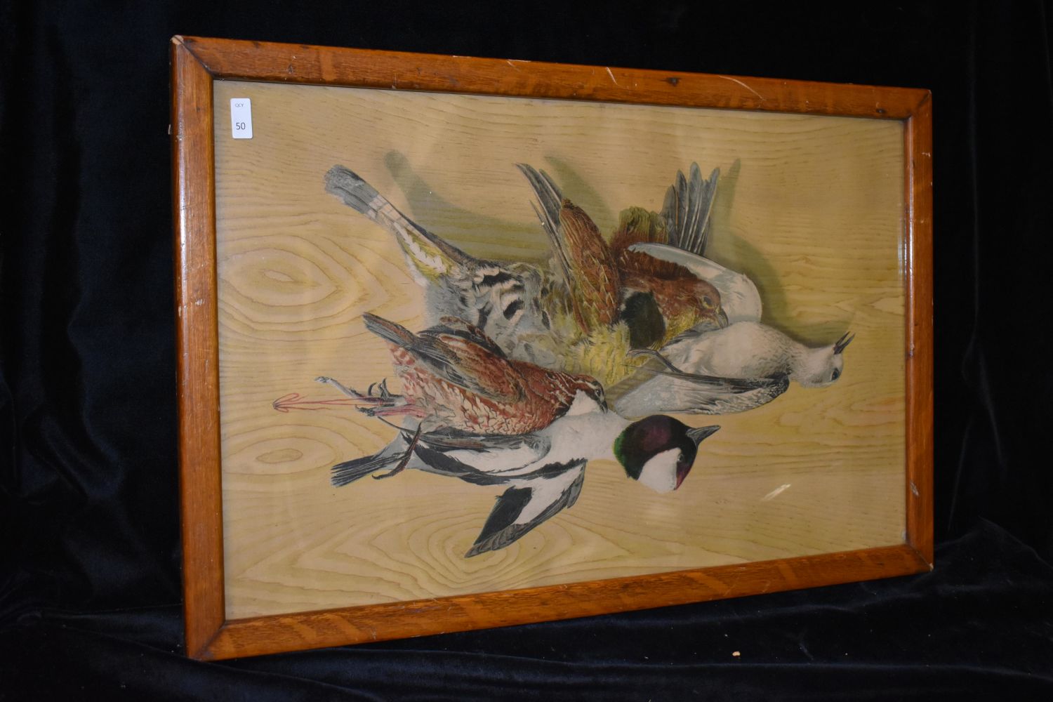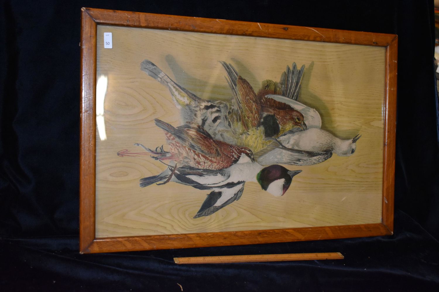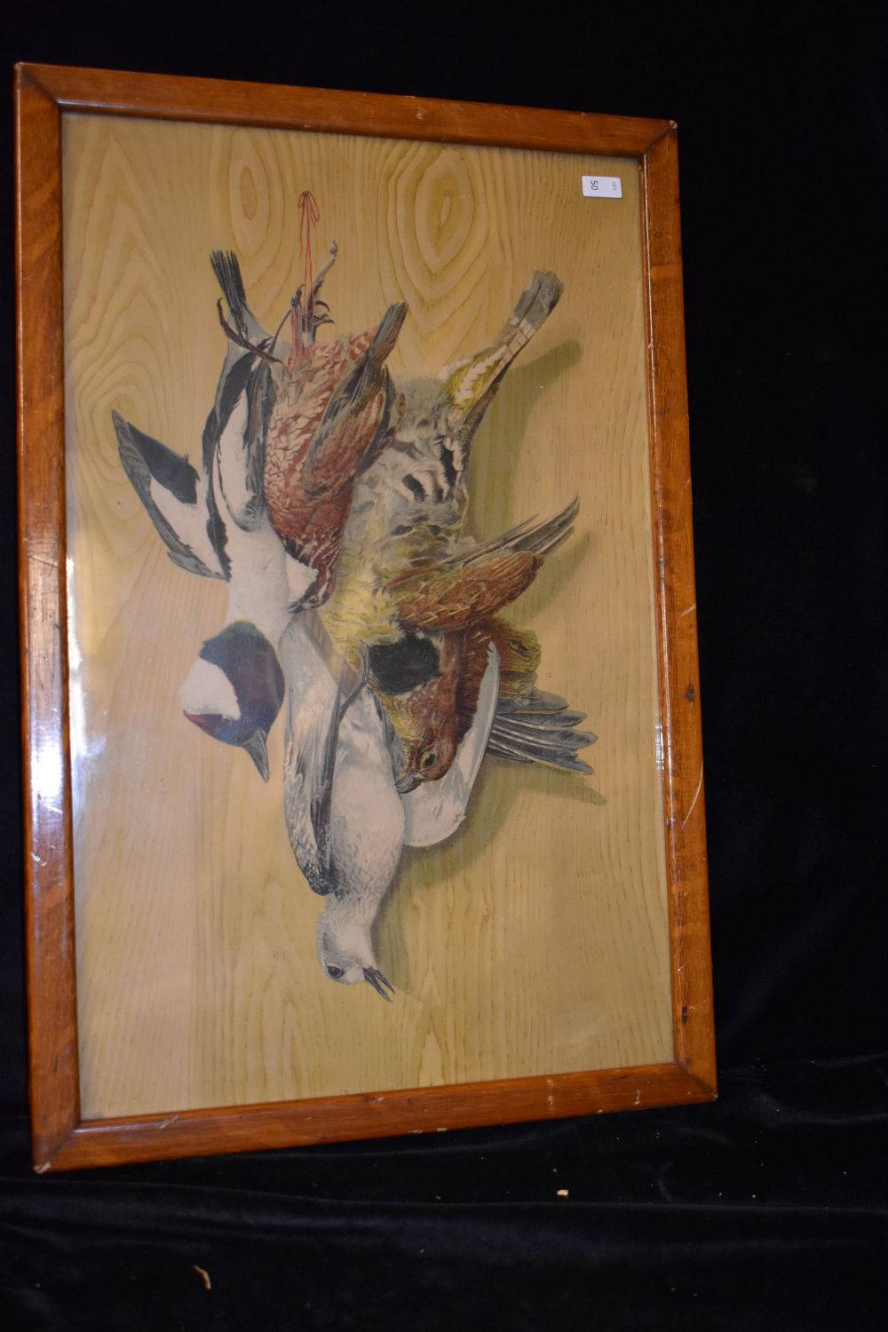 15 1/2×23 1/2" Vintage Framed Print of Hanging Fowl, Antiques
