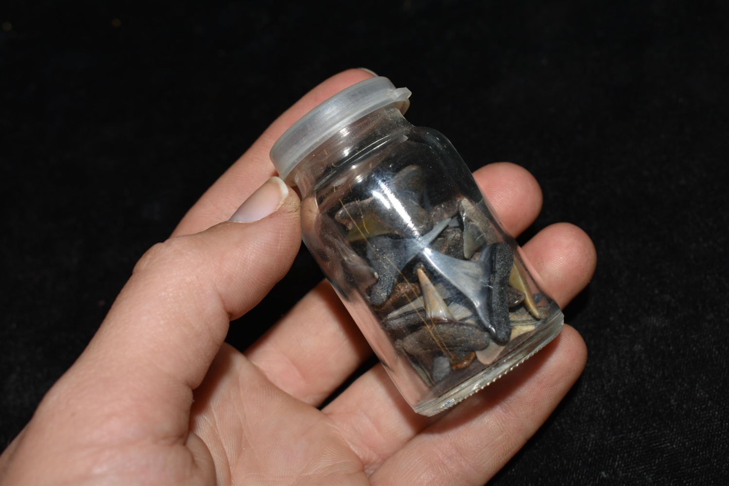 2 1/2" Jar of Fossilized Shark Teeth