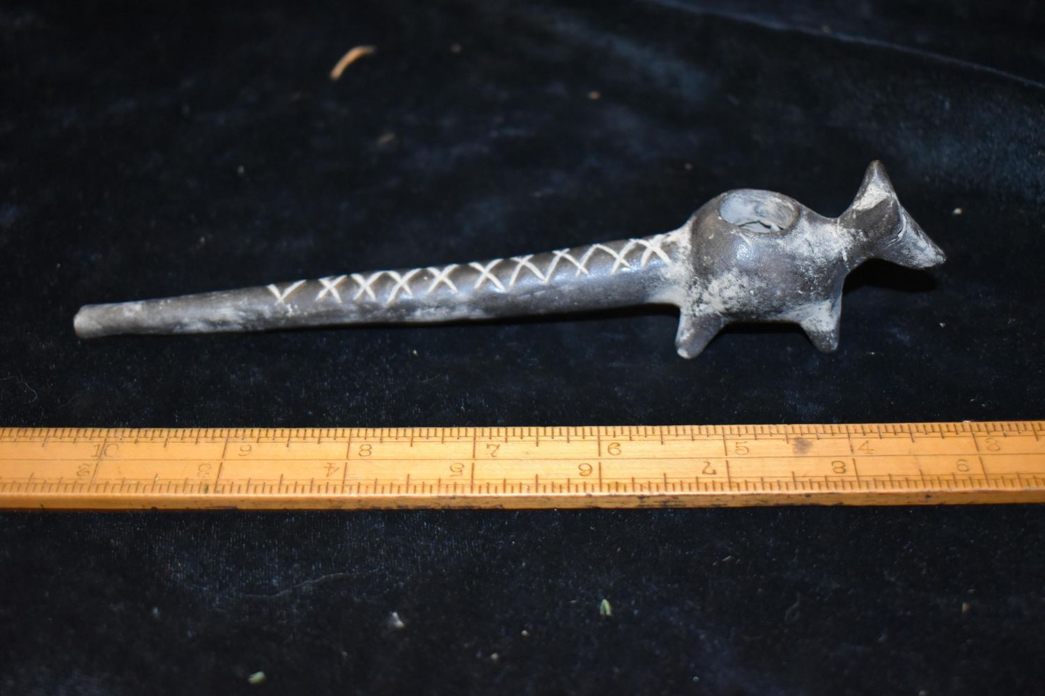 8" Historic Trade Pipe, Circa 1930s, with Armadillo Depiction, Native American Artifact