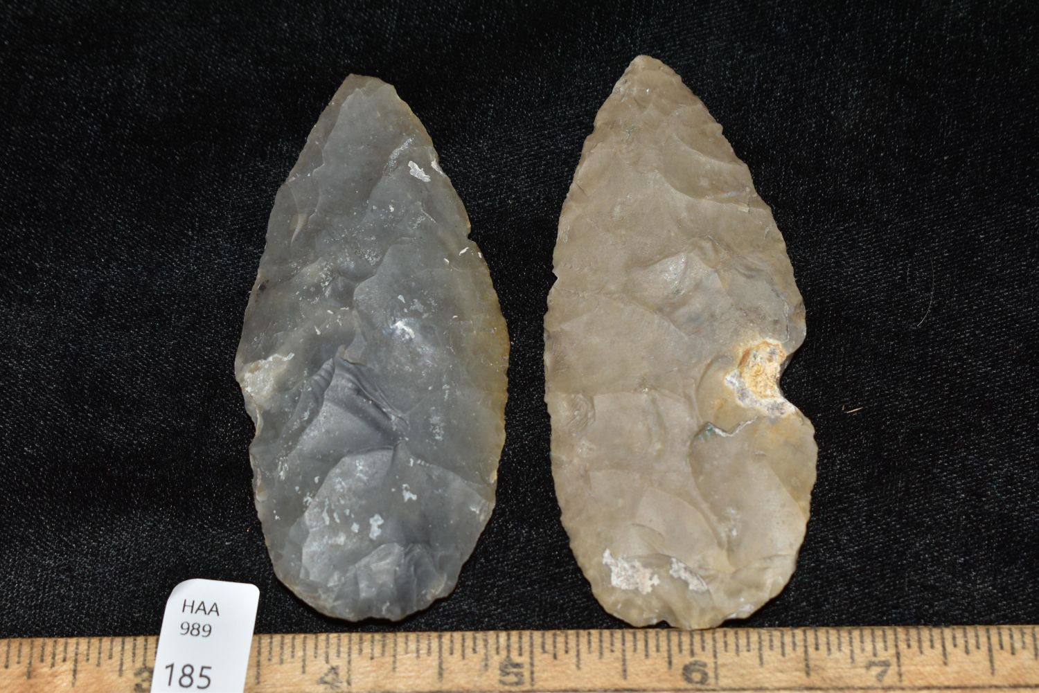 Lot of 2 blades found in Texas, largest measures 3 1/2", authentic Native American artifacts