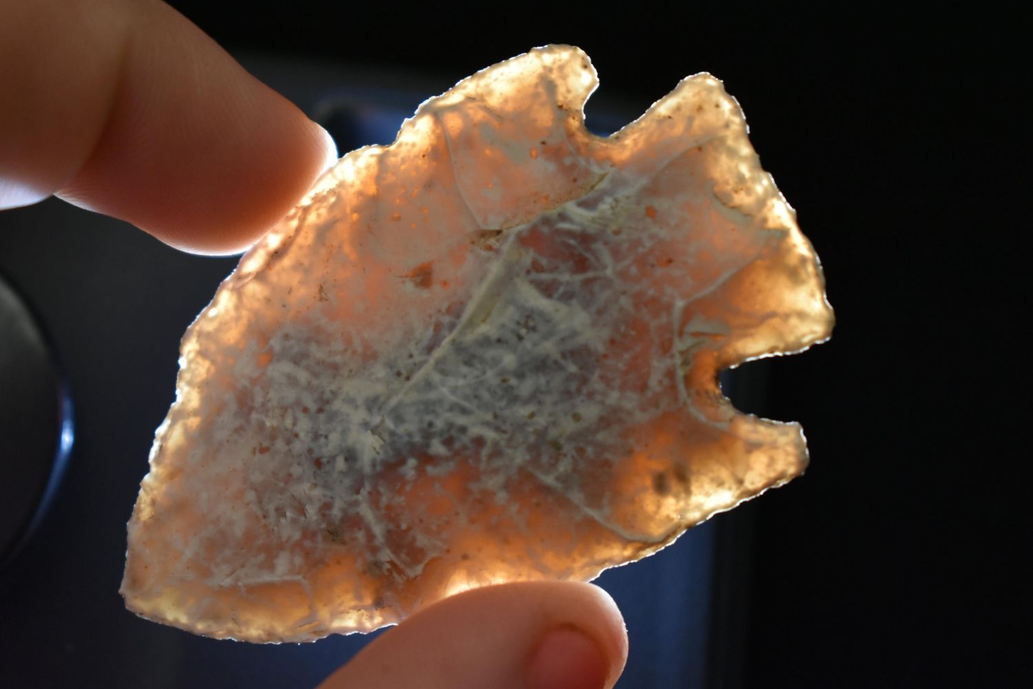 2 3/8" Castroville found in Texas, semi translucent, authentic Native American artifacts
