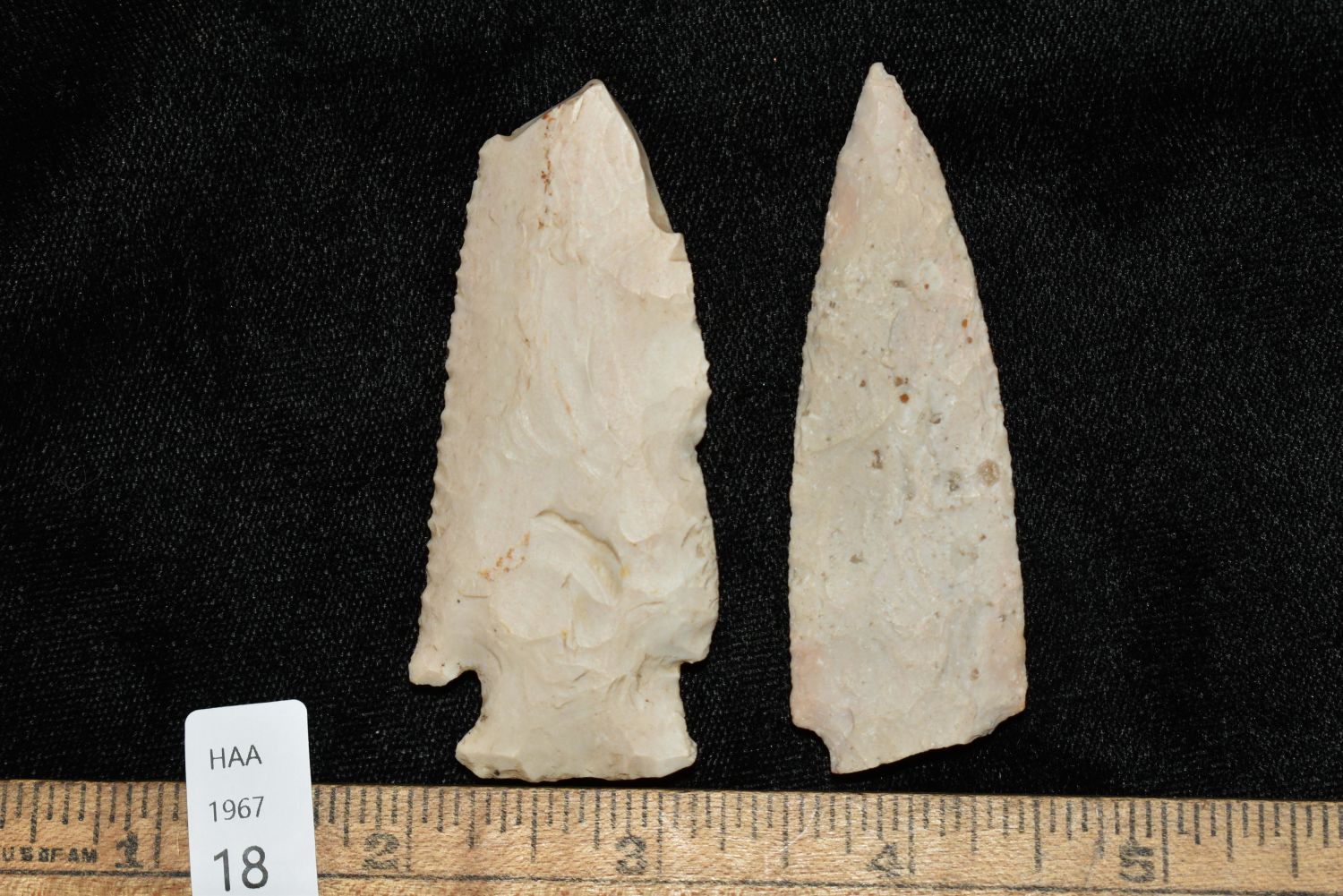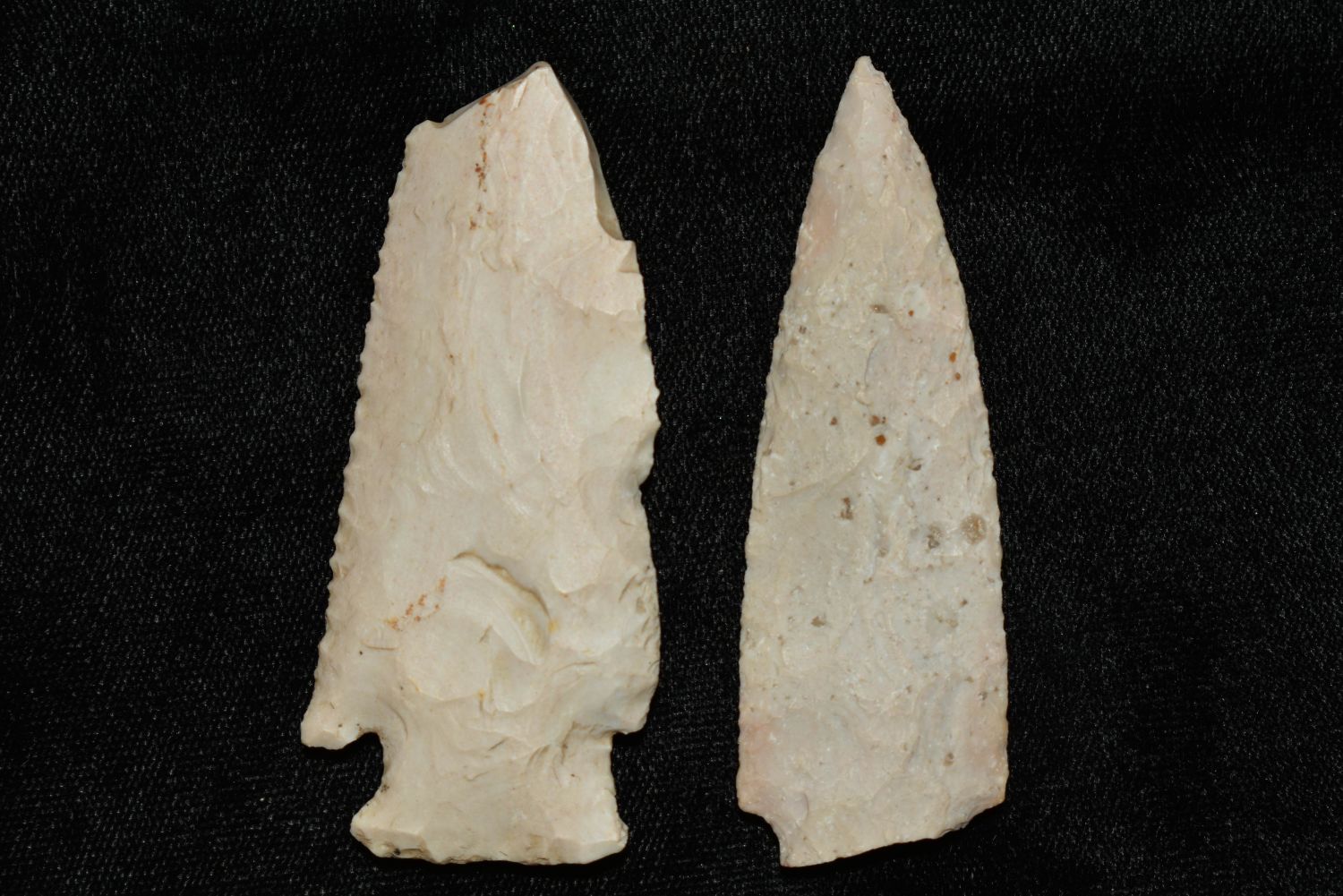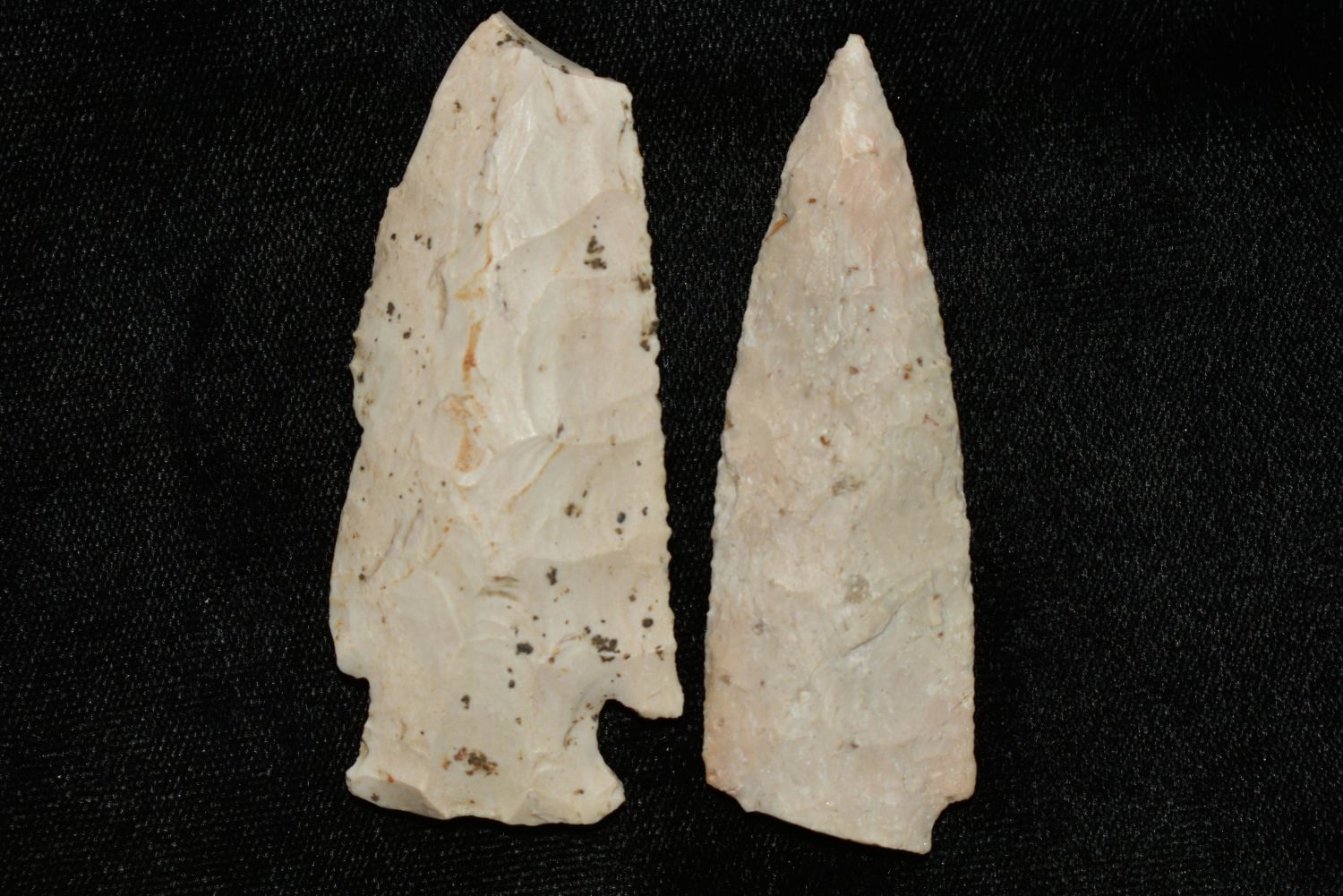 Lot of 2 Arrowheads found in Adams/Brown County Illinois, largest measures 2 7/8", authentic Native American artifacts