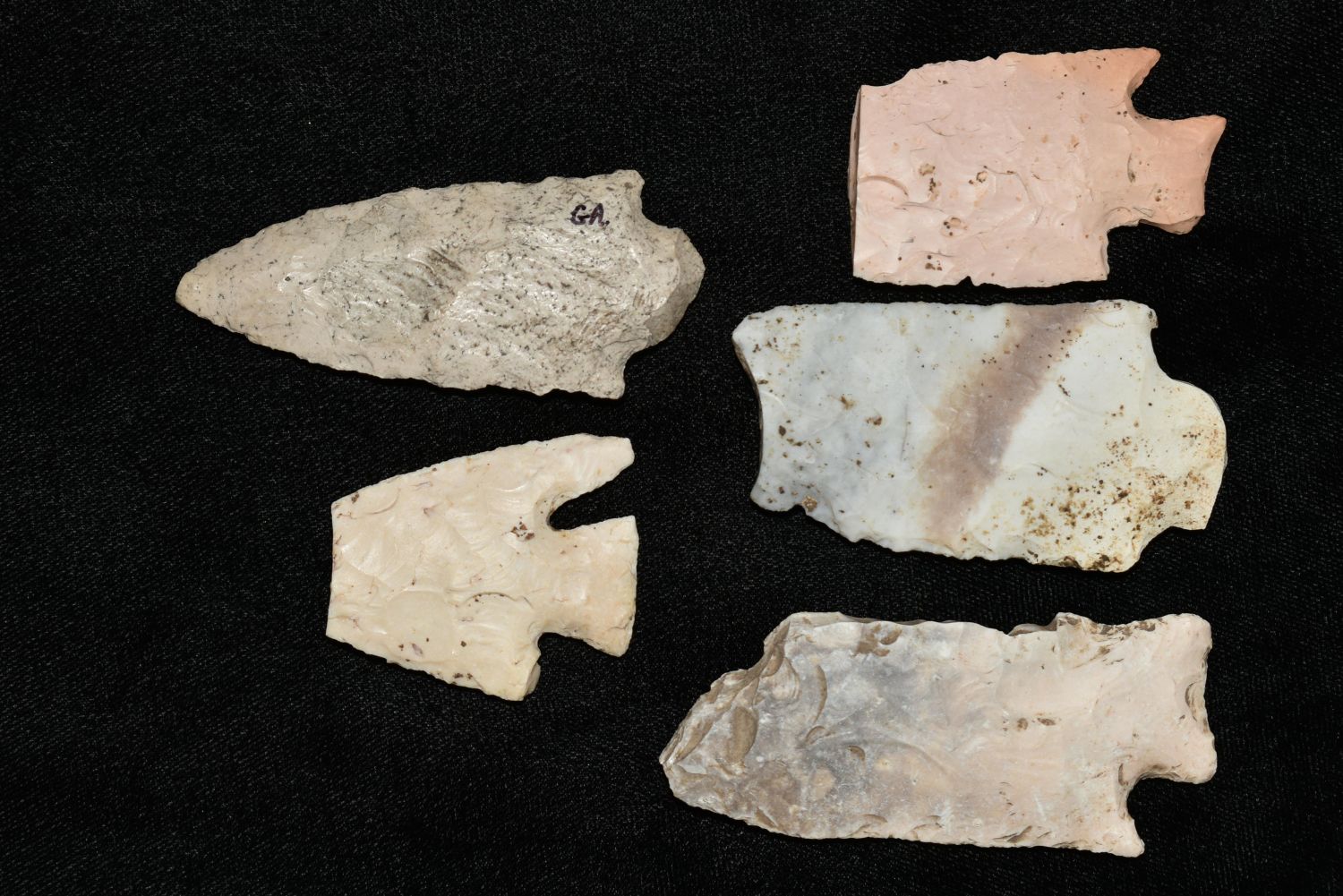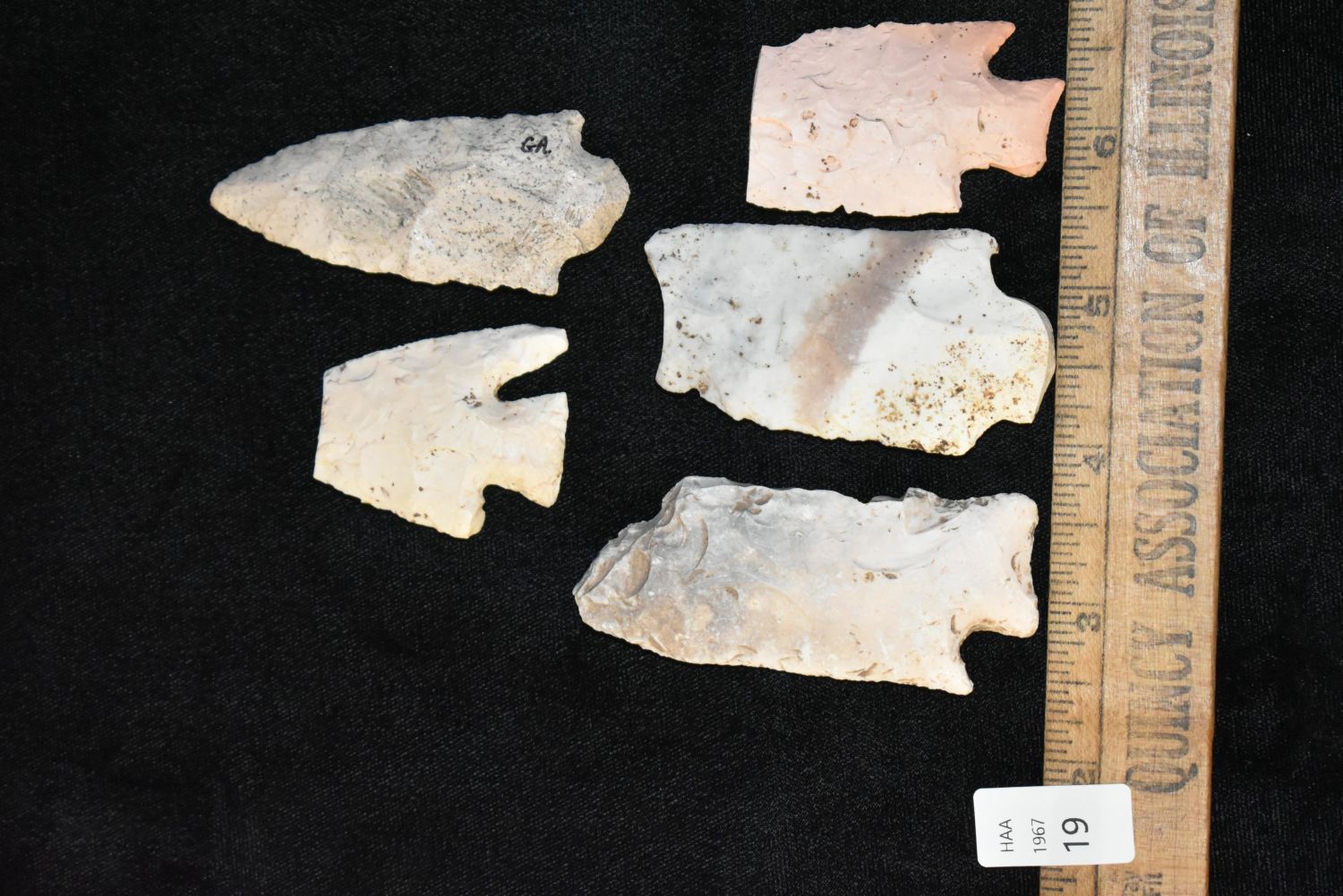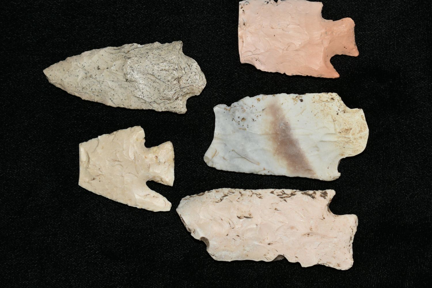 Lot of 5 Arrowheads found in Adams/Brown County Illinois, authentic Native American artifacts