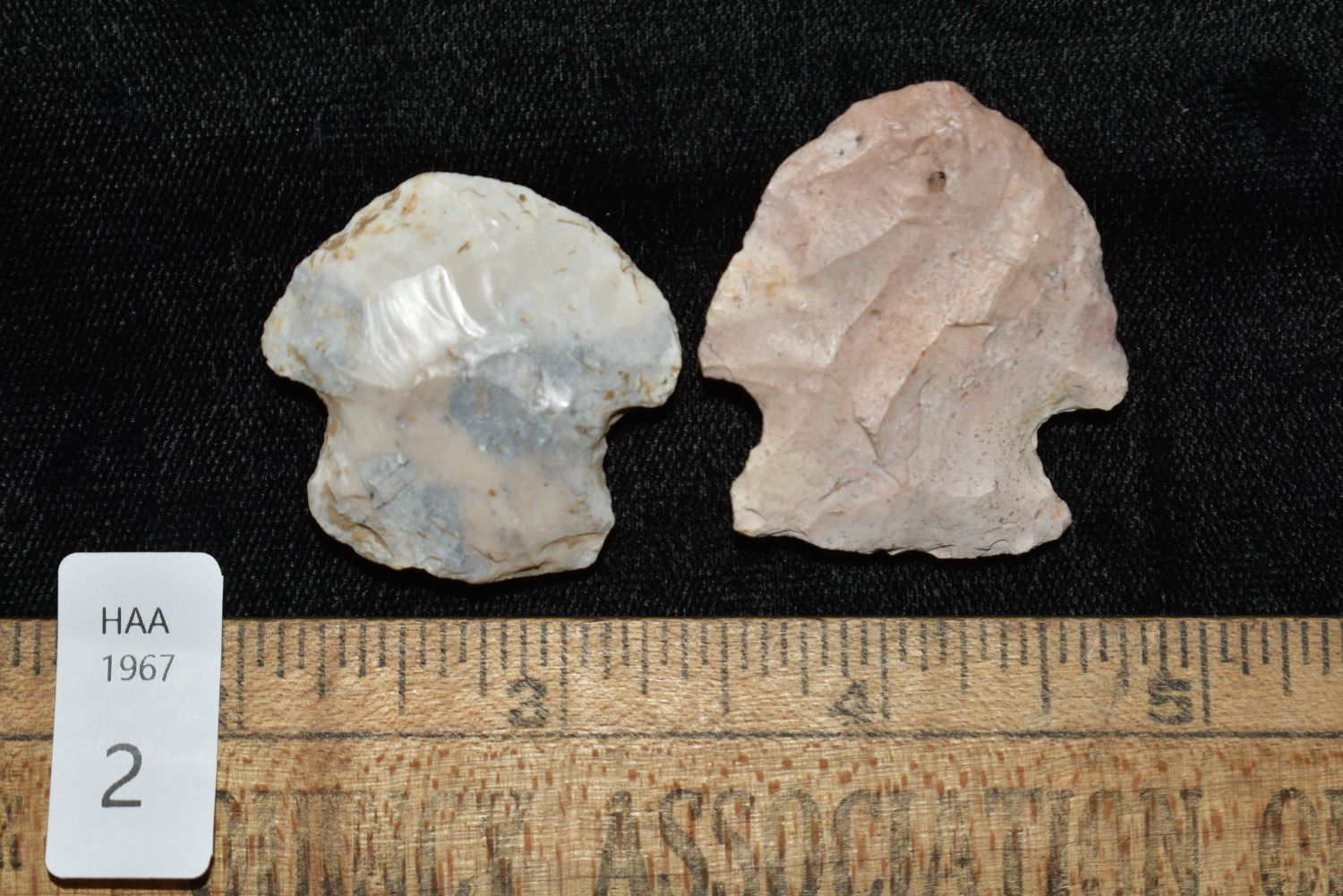 Lot of 2 Hafted Scrapers/Blunts found in Adams/Brown County Illinois, authentic Native American artifacts