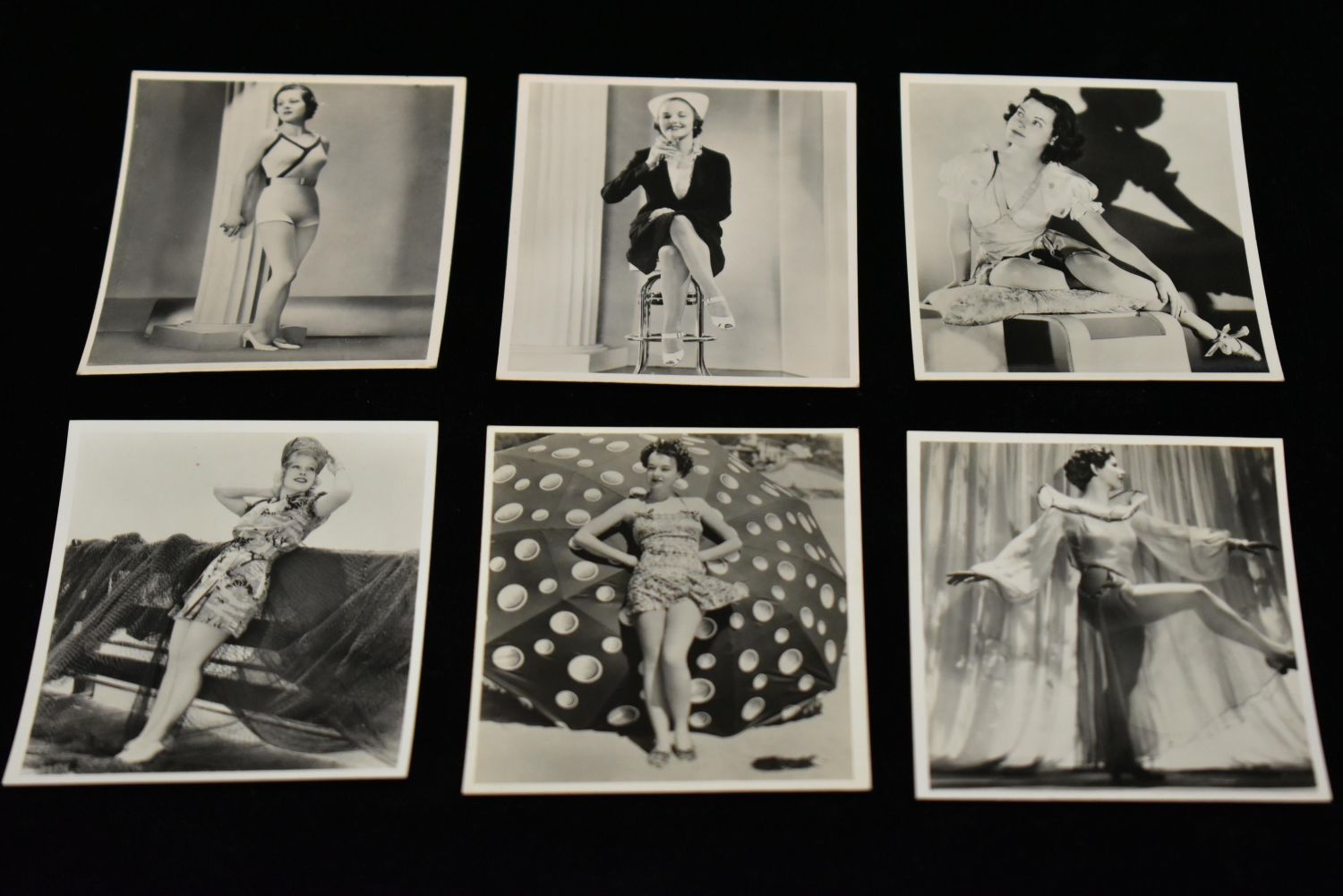 ORIGINAL 1930’S SET OF 6 SEMI-NUDE PINUP GIRL CIGARETTE CARDS, EACH CARD IS 2 1/2" X 3"