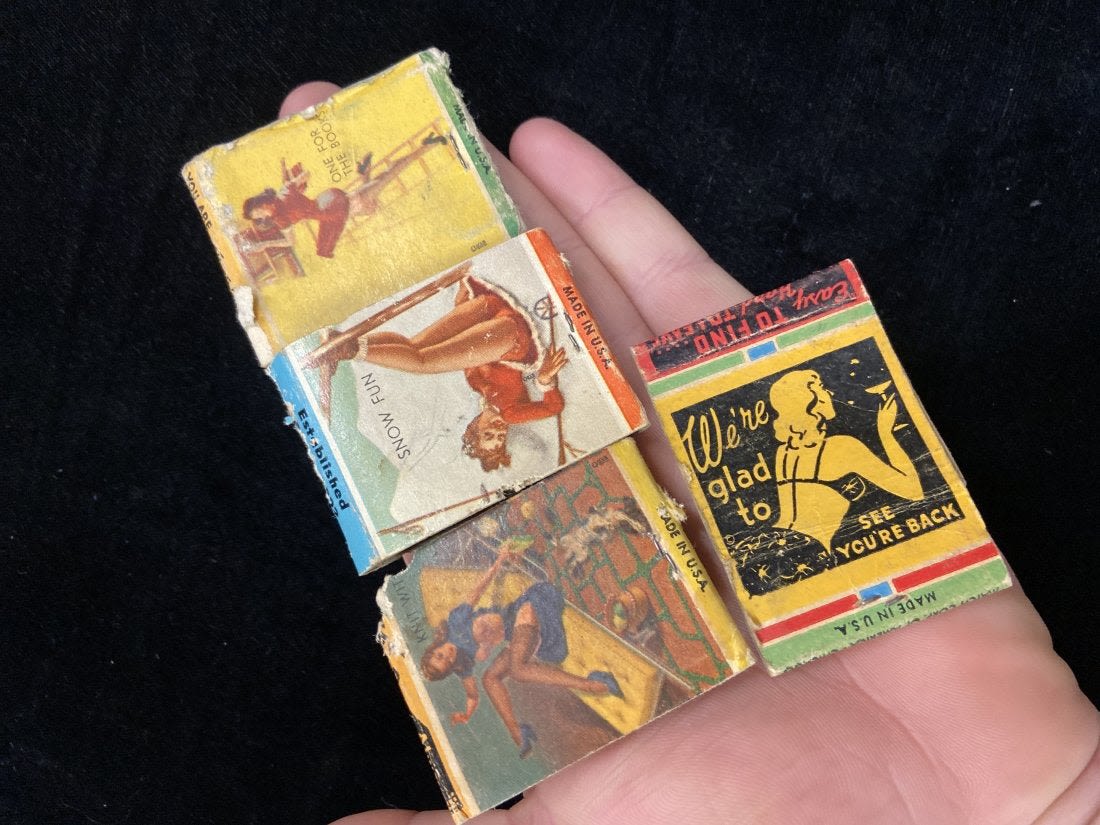 LOT OF 4 EARLY 1950’S PIN UP GIRLS MATCHBOOK COVERS SEMI NUDE PINUPS